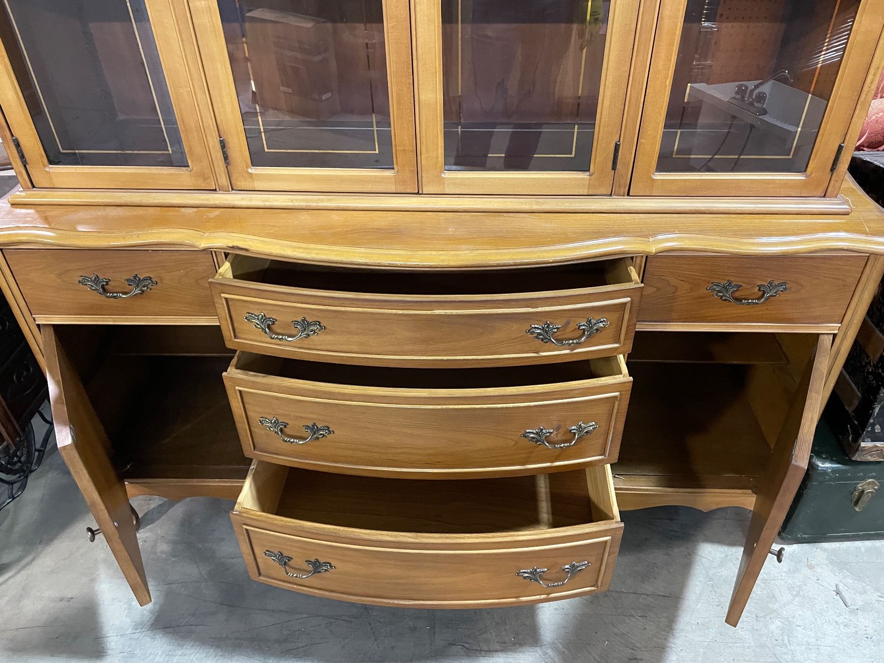 Vancouver - Vintage French Provincial Style Glass Panels Cabinet, approx. 60" x 18" x 80"