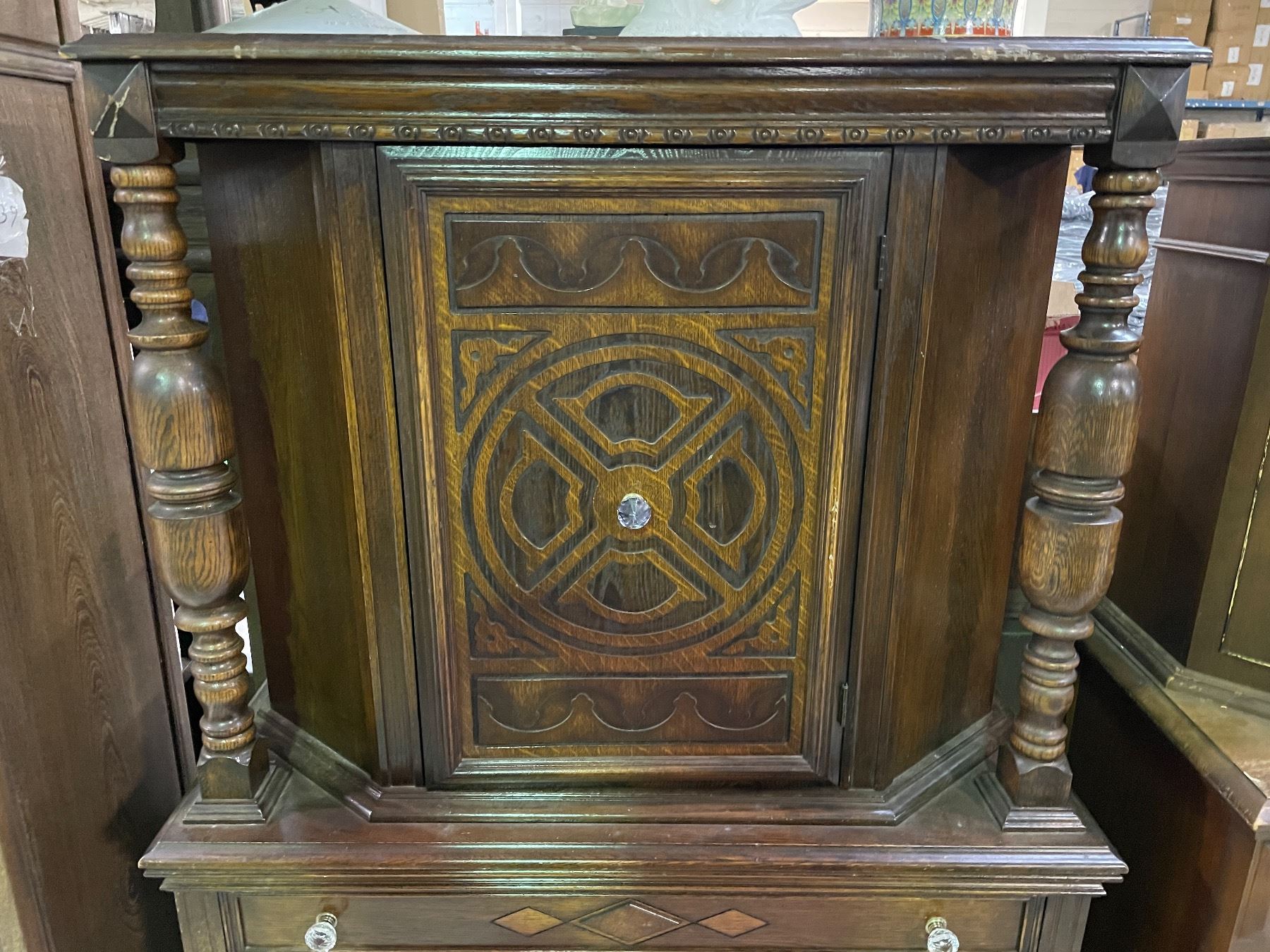 Vancouver - Vintage Jacobean Style Renaissance Revival Cabinet, approx. 38" x 16" x 63")