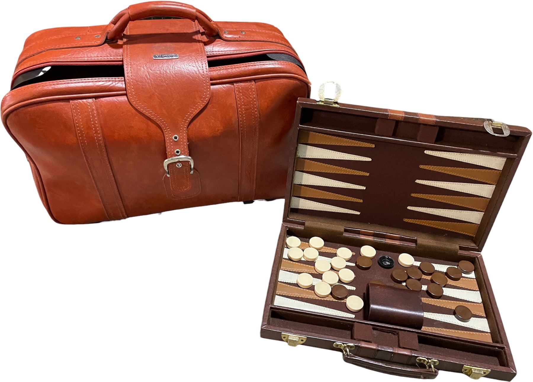 Vancouver - Vintage Leather Red Samsonite Suitcase & Leather Backgammon in Travel Case