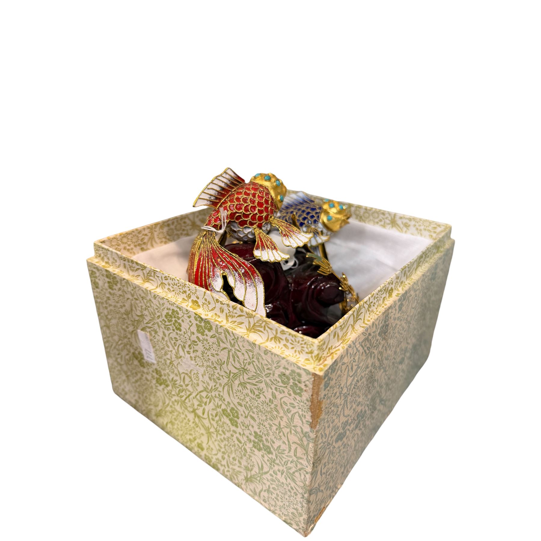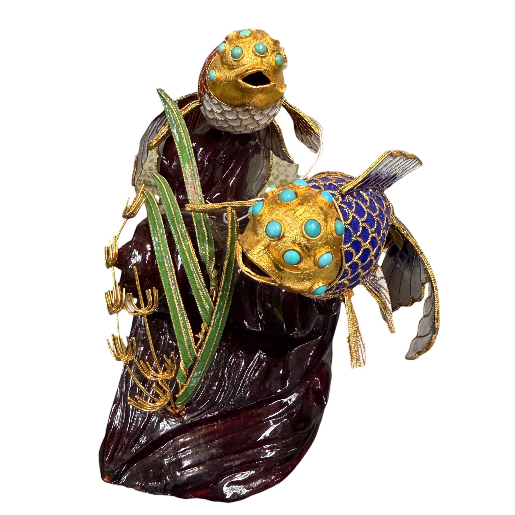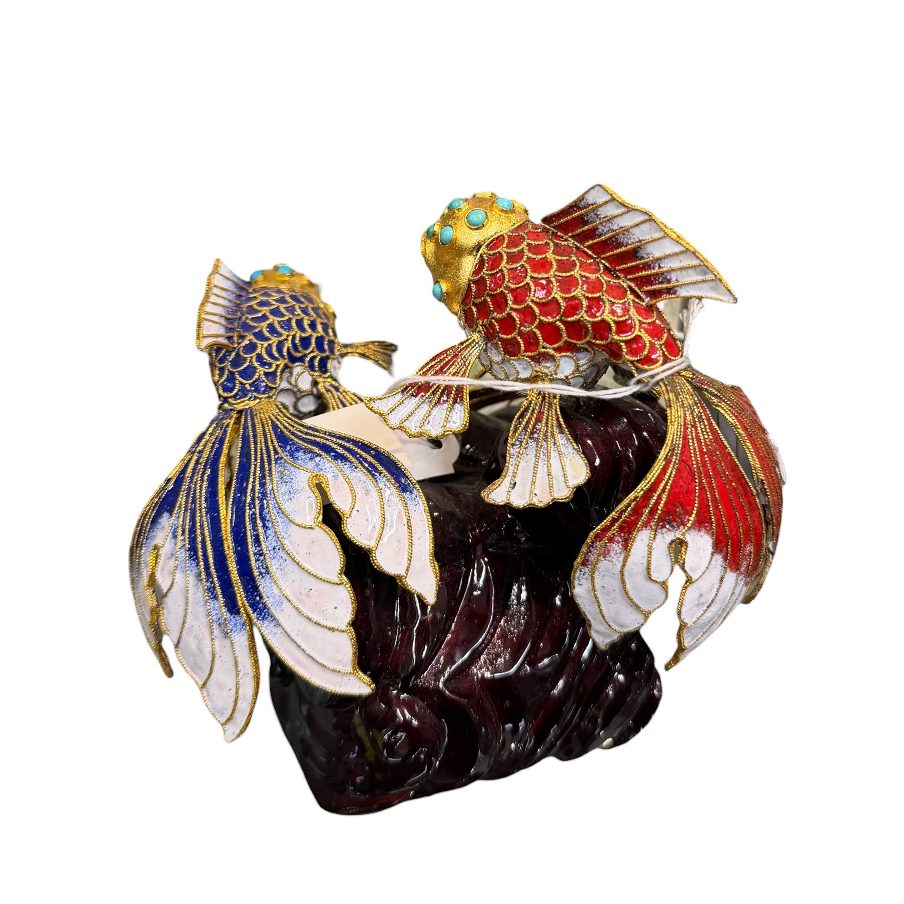 Vibrant Cloisonne Style Enameled Sculpture Featureing Two Koi Fish 5.5" Tall