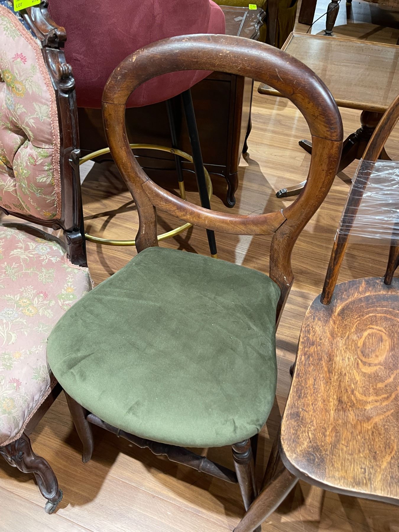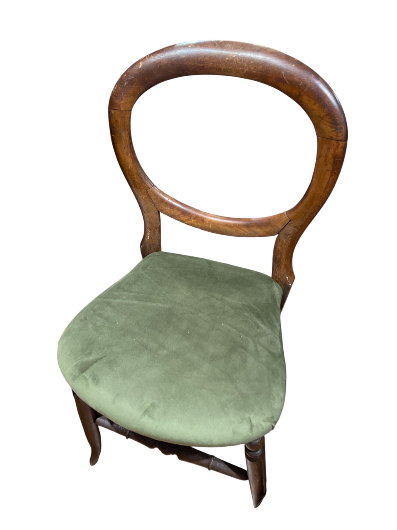 Victorian Mahogany Balloon Back Chair with Green Velvet Seat