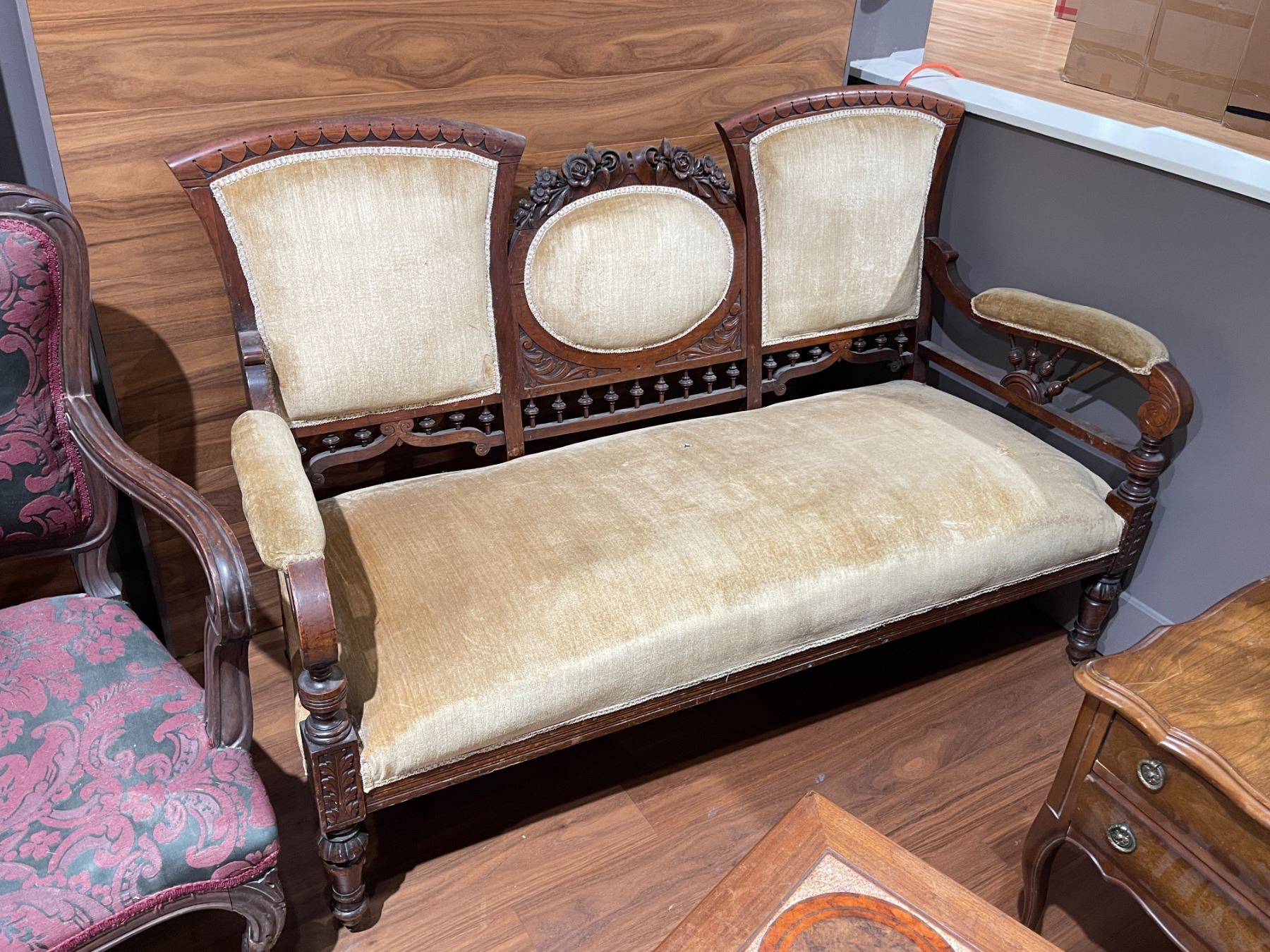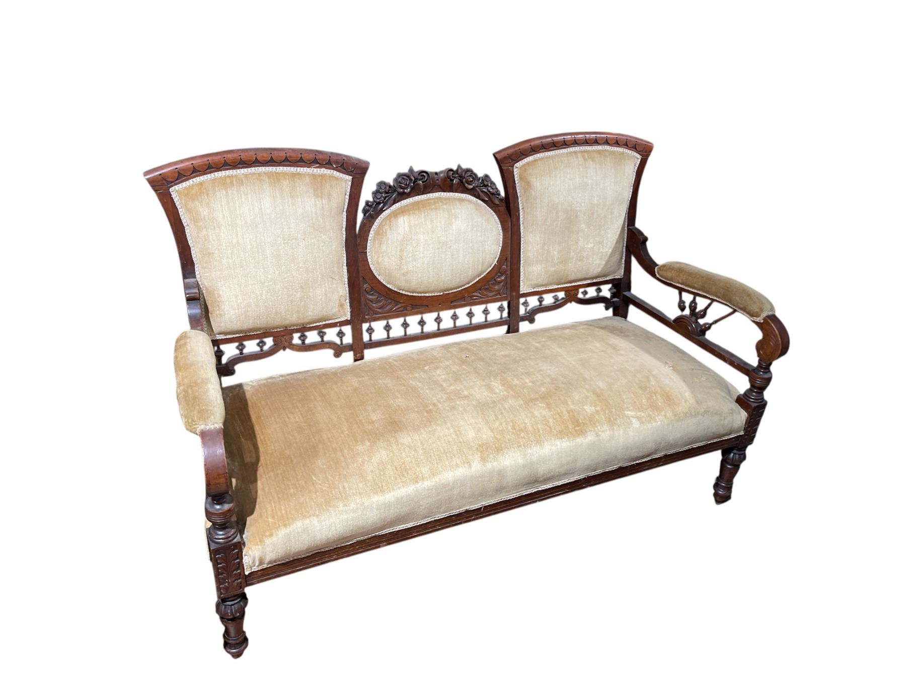 Victorian Settee with East Lake Components * Pale Gold Velvet Upholstery * 54" long