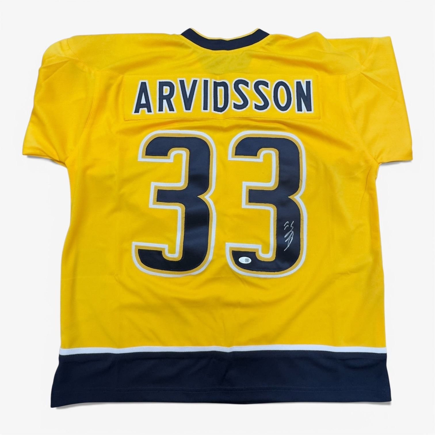 Nashville Predators jersey signed by Viktor Arvidsson. Authentic autograph includes Certificate of Authenticity (COA). Features team colors and logo. Item is as pictured.
