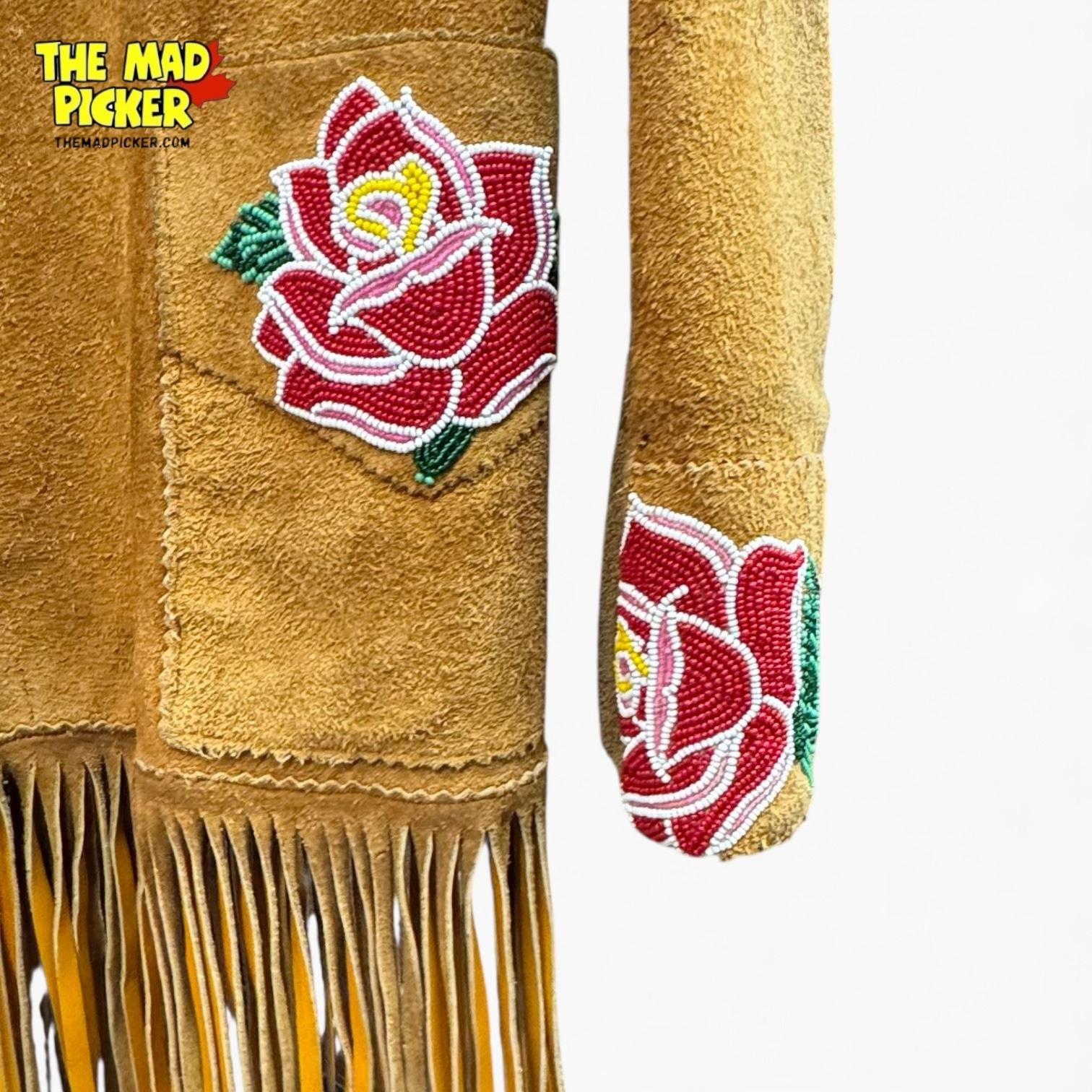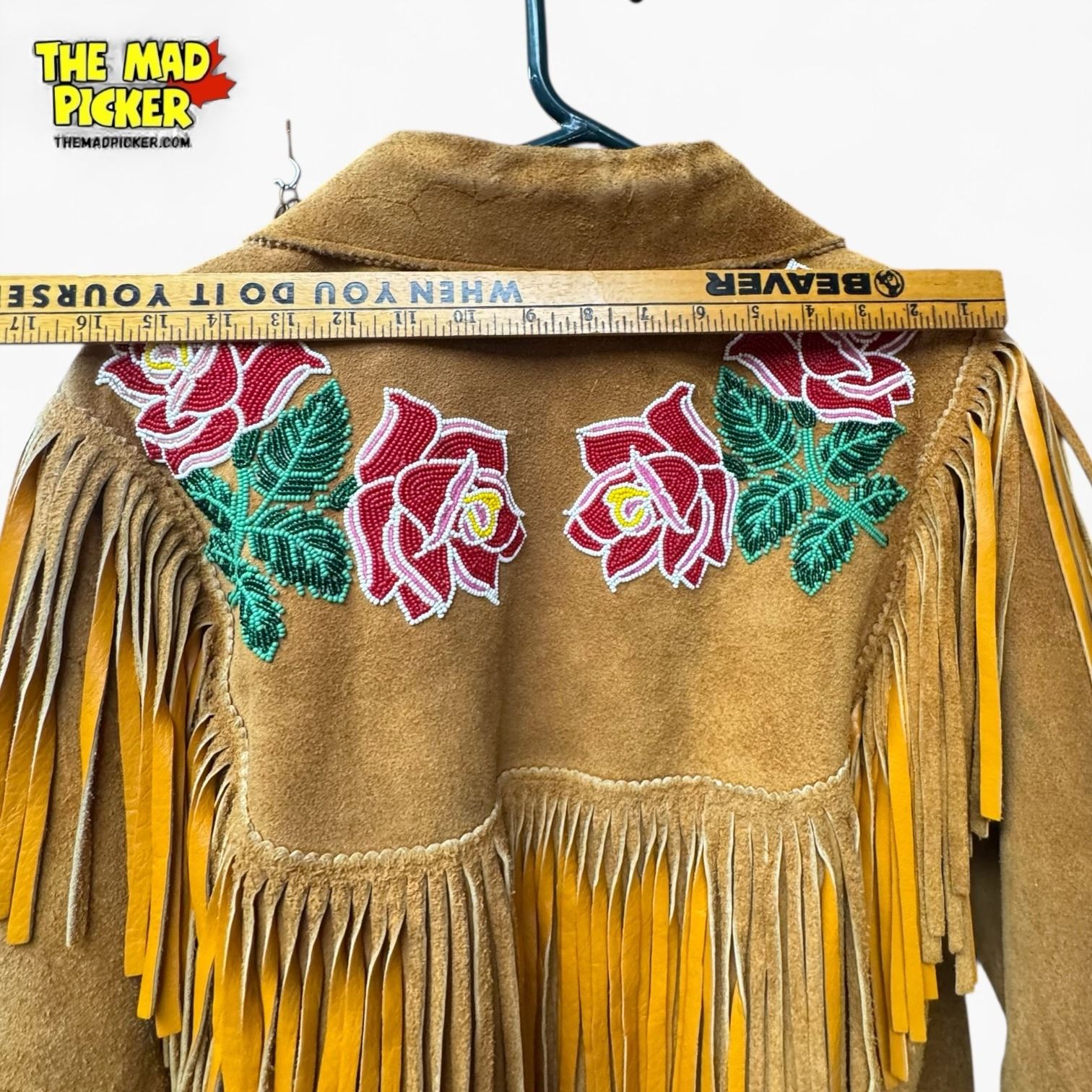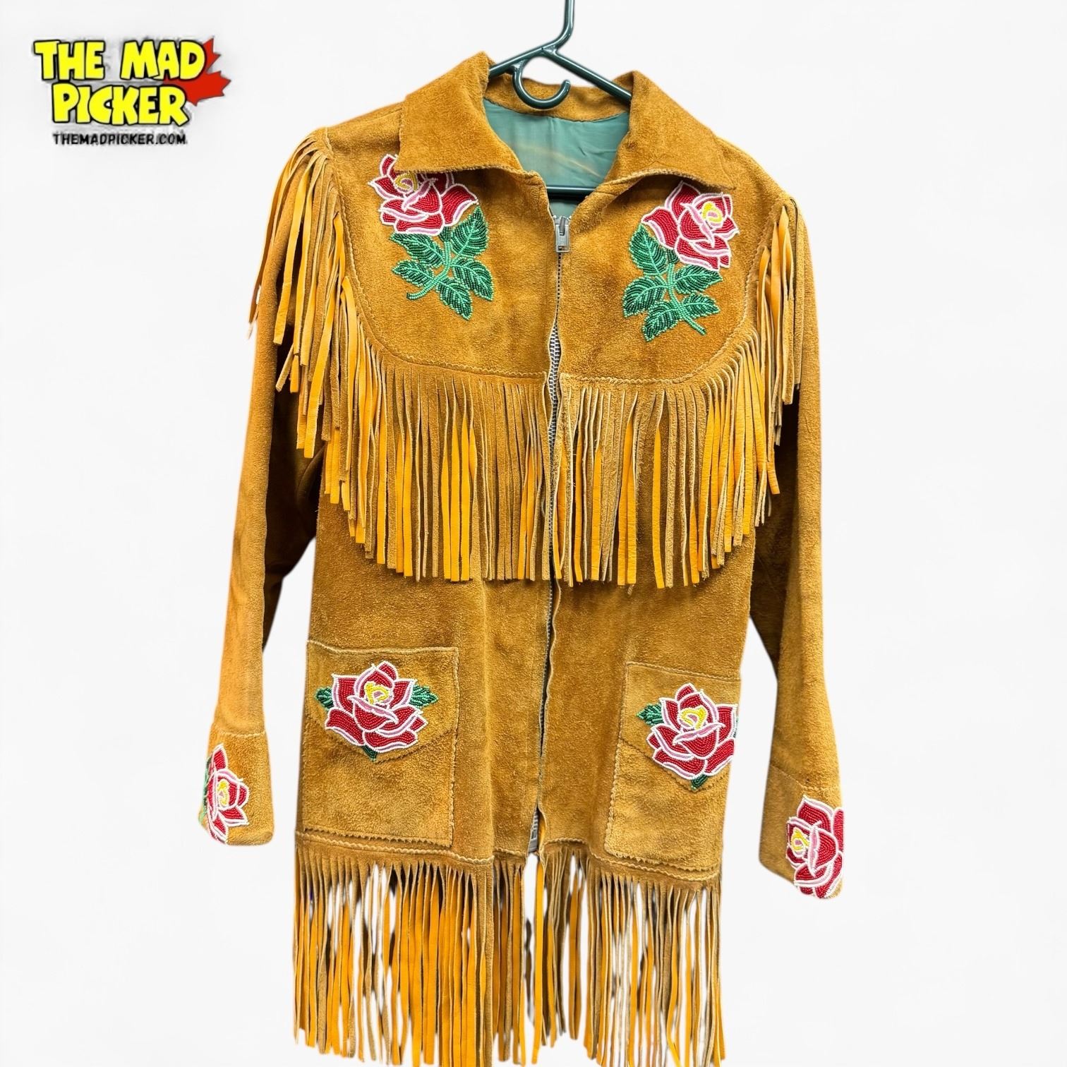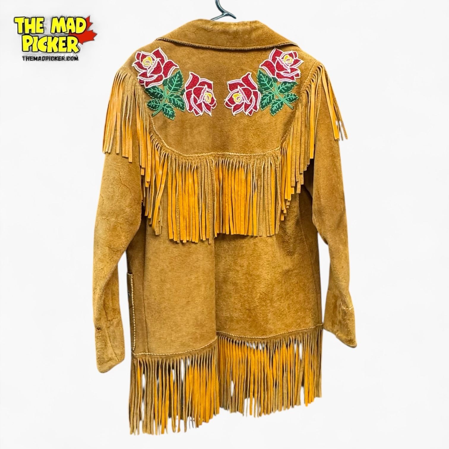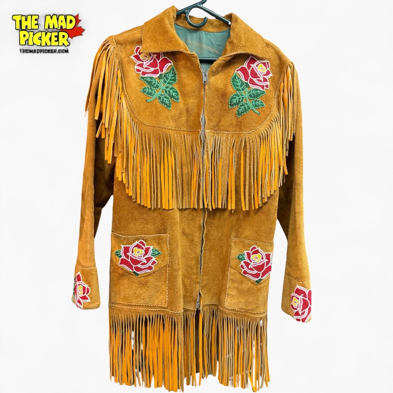 Vintage 1950s/60s Leather Fringe Jacket with Rose Bead Appliqu� - Zippered - 30" long x 17" wide at the shoulders