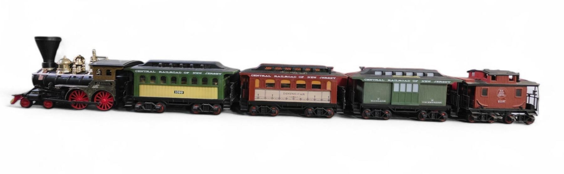 Vintage 1980s Jim Beam Kentucky Straight Bourbon Whiskey Railroad Decanter Set - 5 Pieces