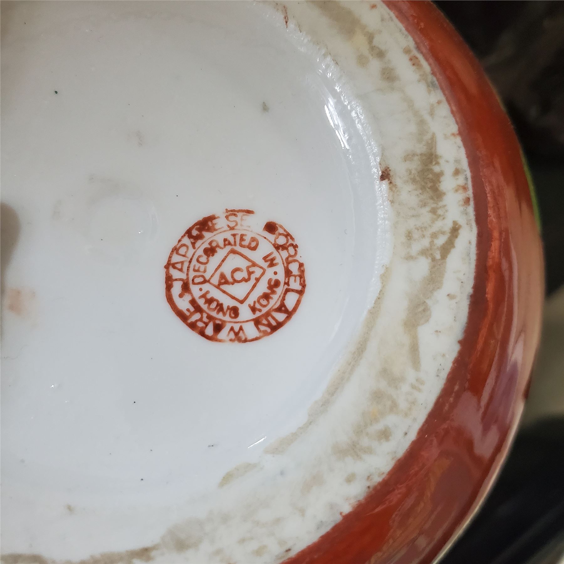 Vintage ACF Chinese Porcelain Bottle with Equestrian Motifs - Approx. 14.5" Tall - with Decorated in Hong Kong Mark