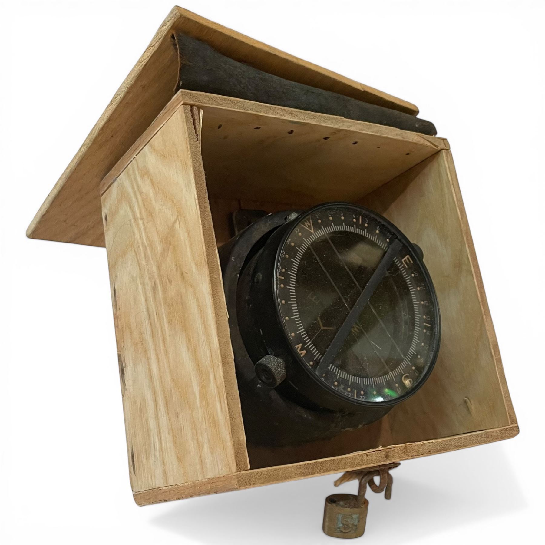 Vintage Aircraft or Naval Compass in a 6.5" x 6.5" Wood Box