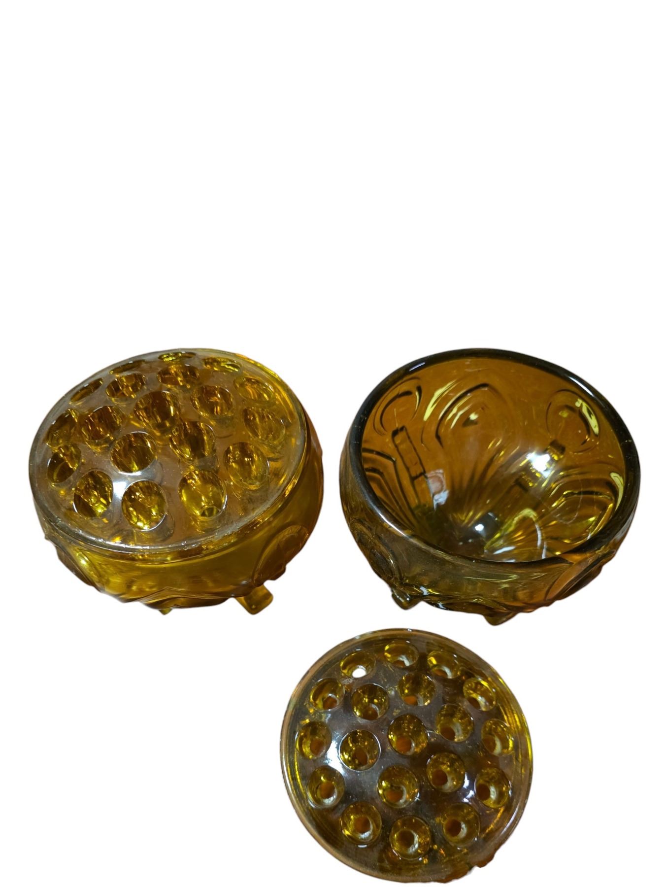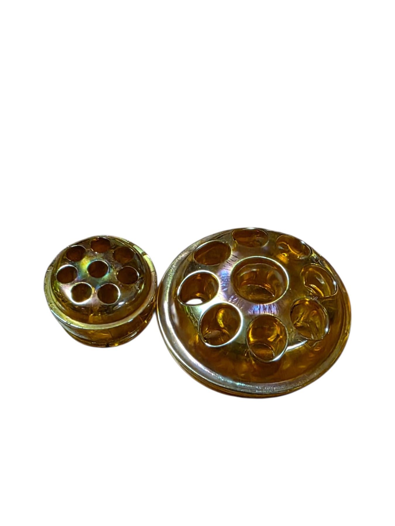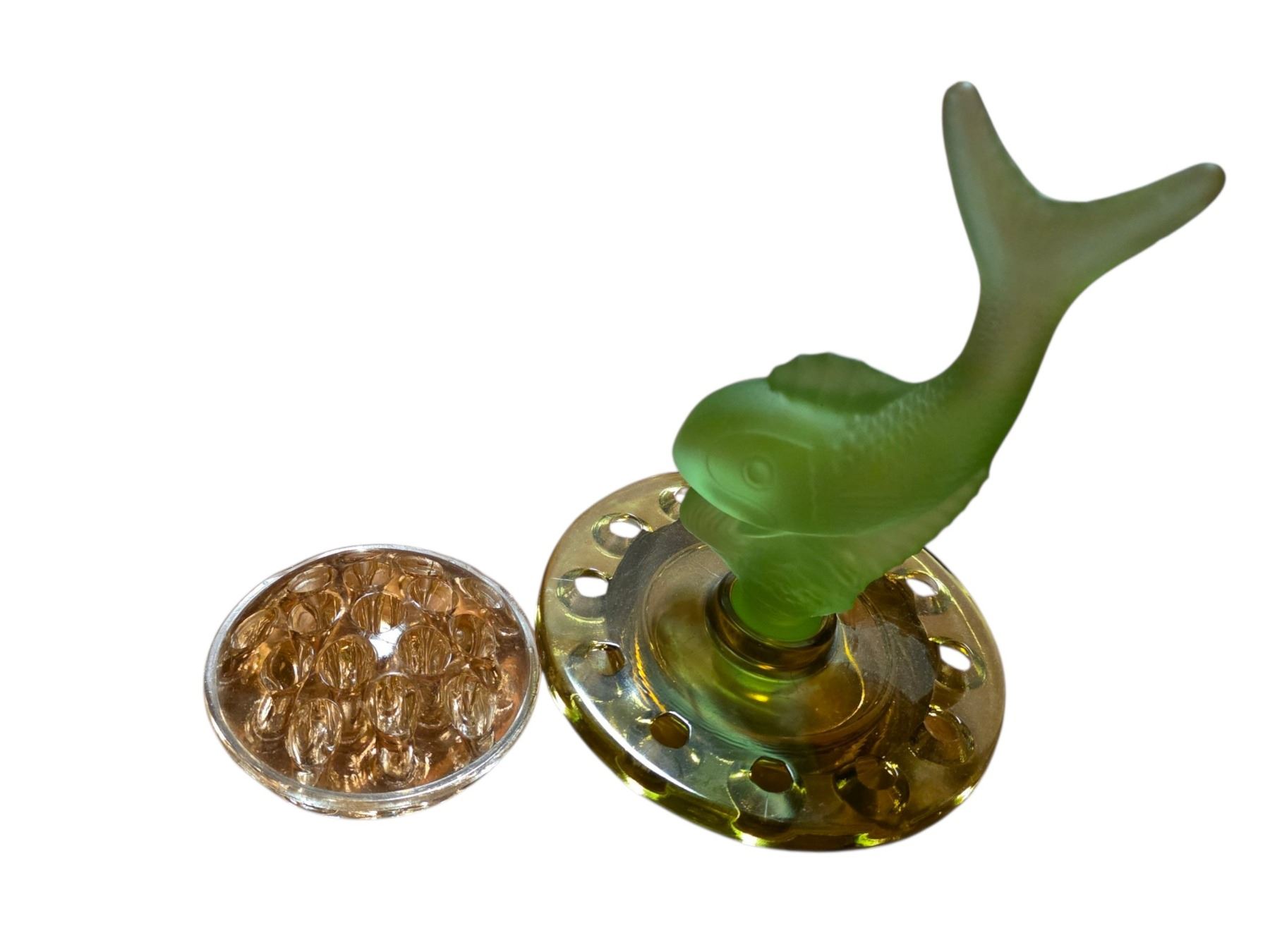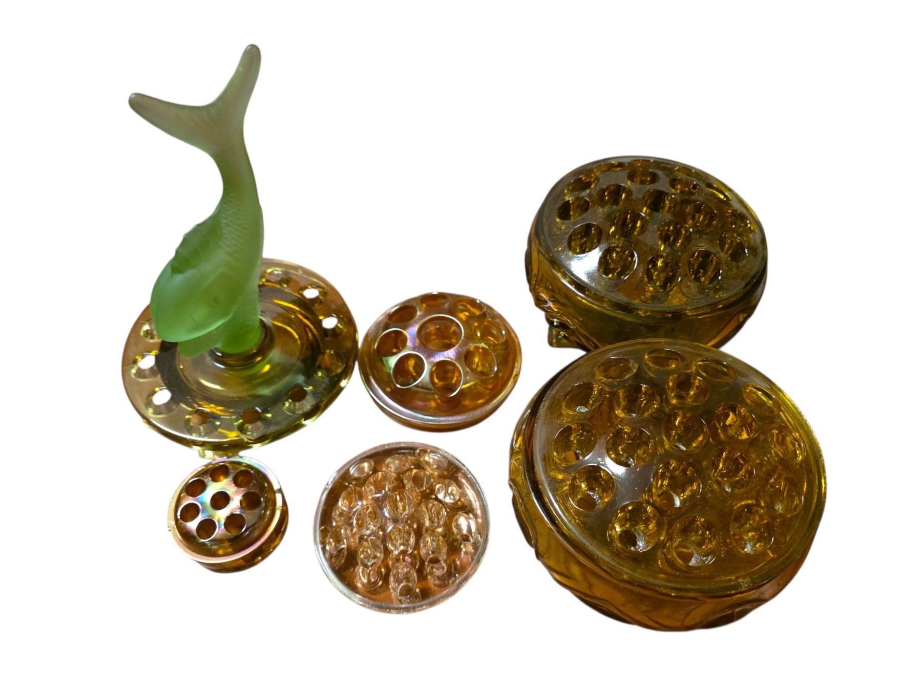 Vintage Amber Glass Flower Frog Collection w/ Vaseline Glass Fish Figurine