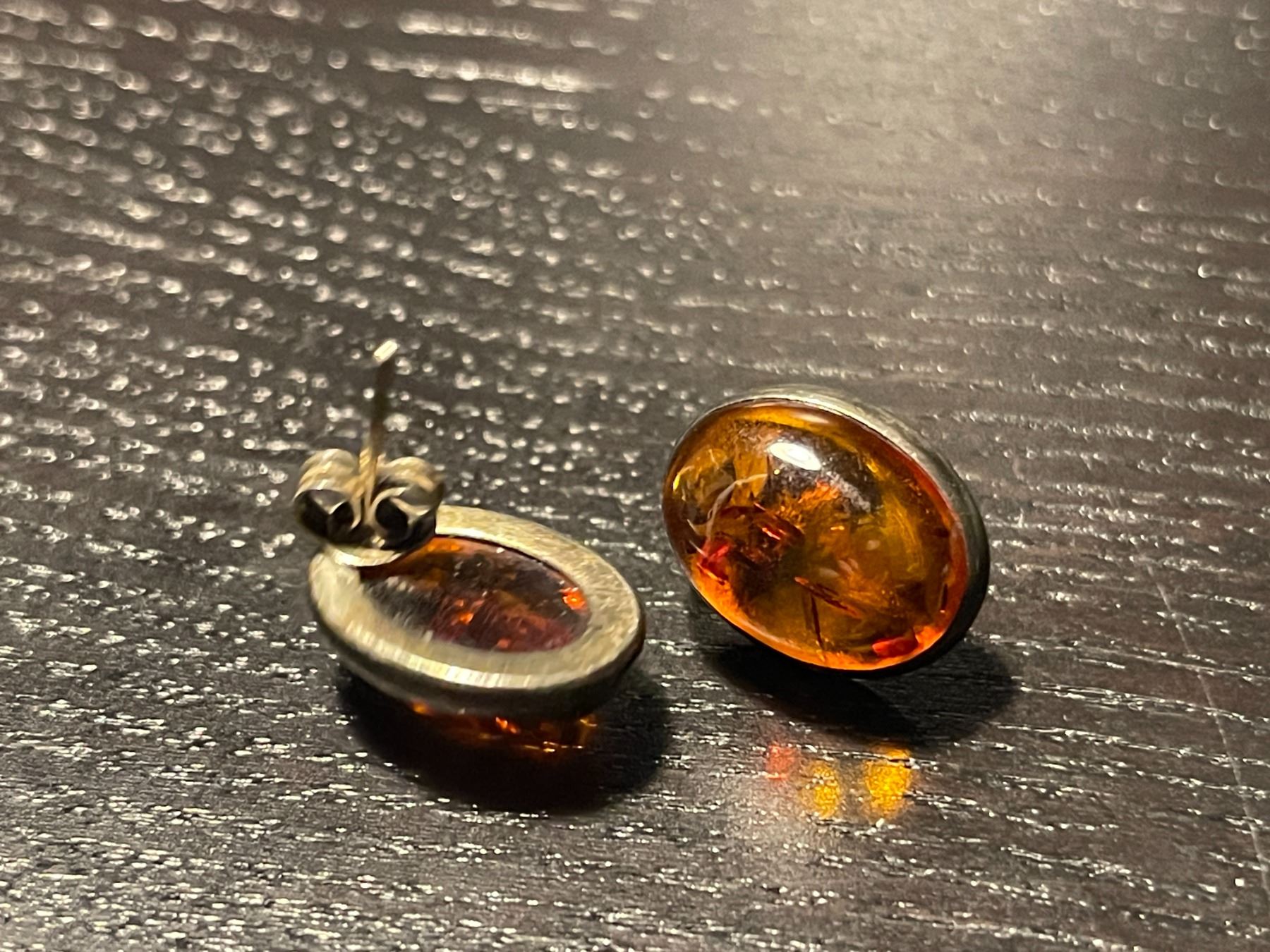 Vintage Amber Resin Earrings et in Sterling Silver - For Pierced Ears - Earrings are 6.5mm x 11.5mm x 17mm