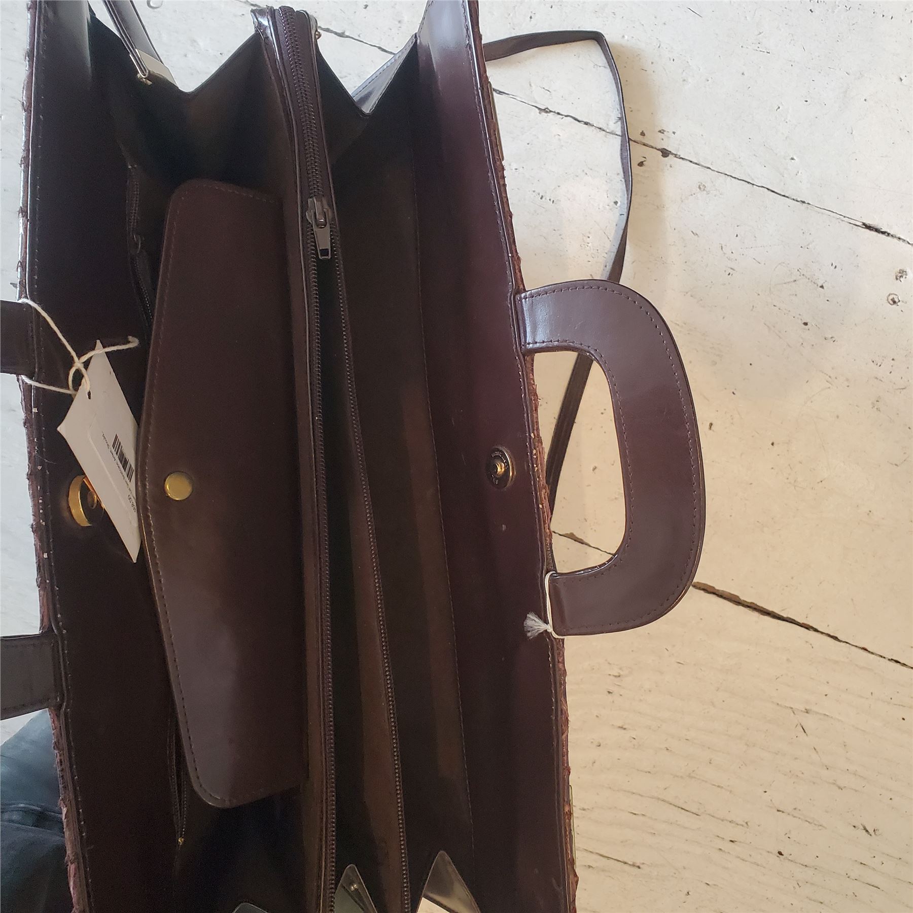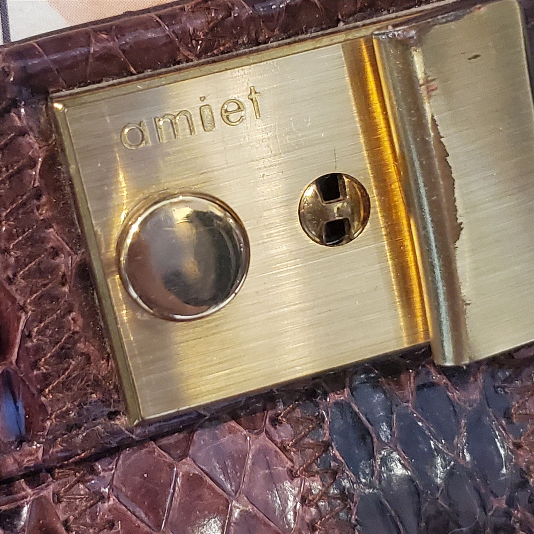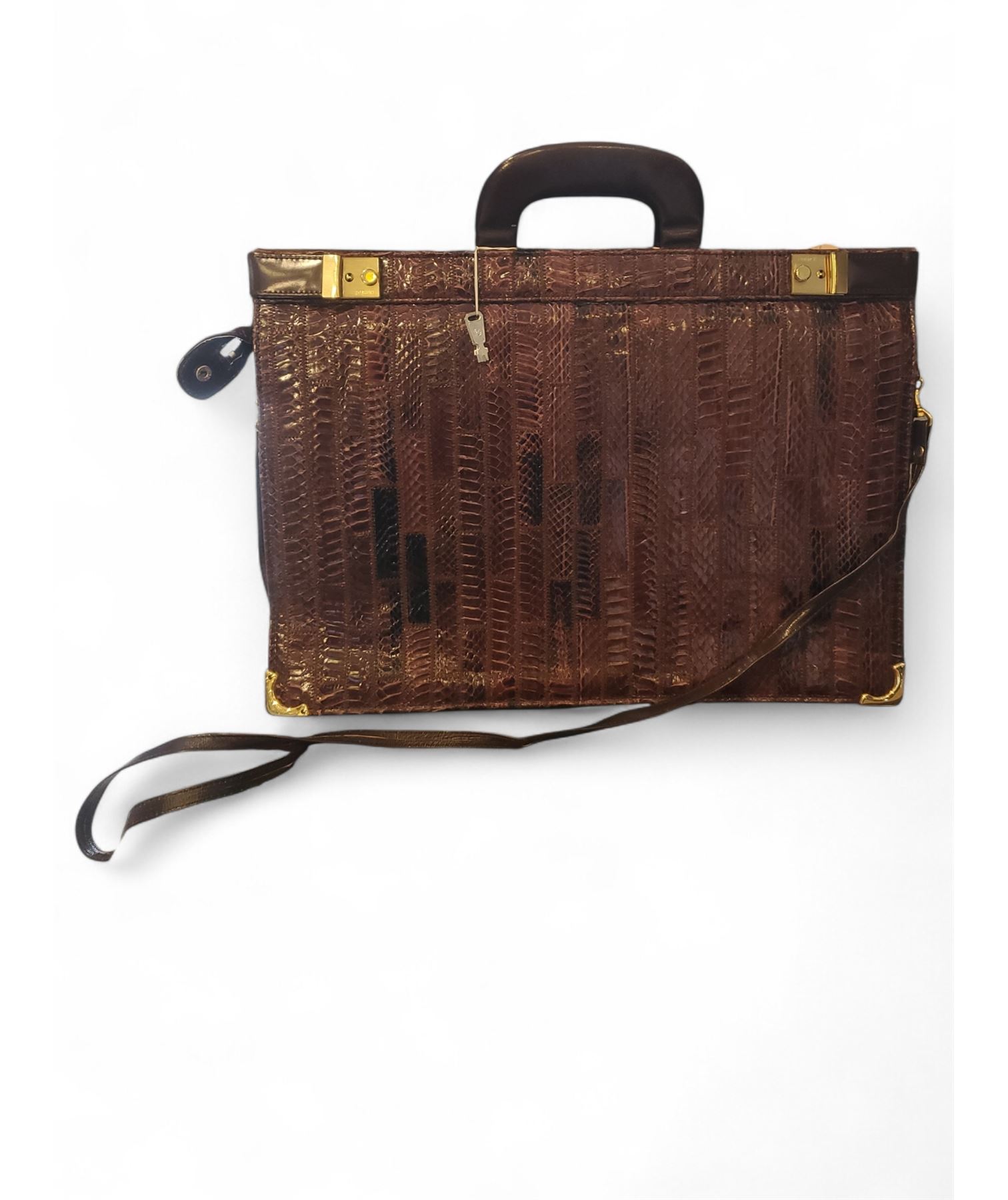 Vintage Amiet Dark Brown Crocodile Pattern Briefcase, Brass-tone Hardaware - 1970's Style