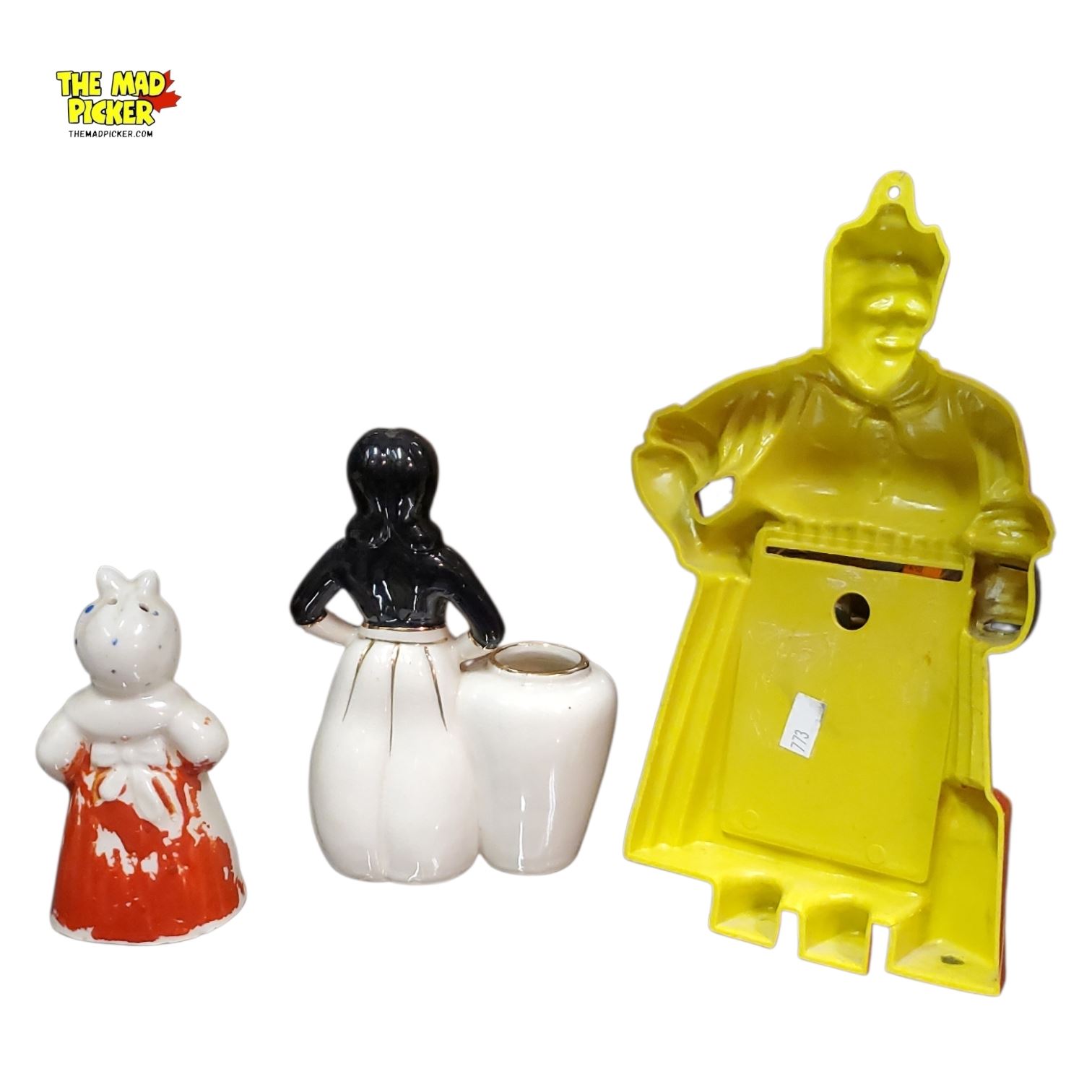 Vintage Black Americana Pieces - Porcelain Salt/Pepper Shaker, Mini Planter, Plastic Memo Holder