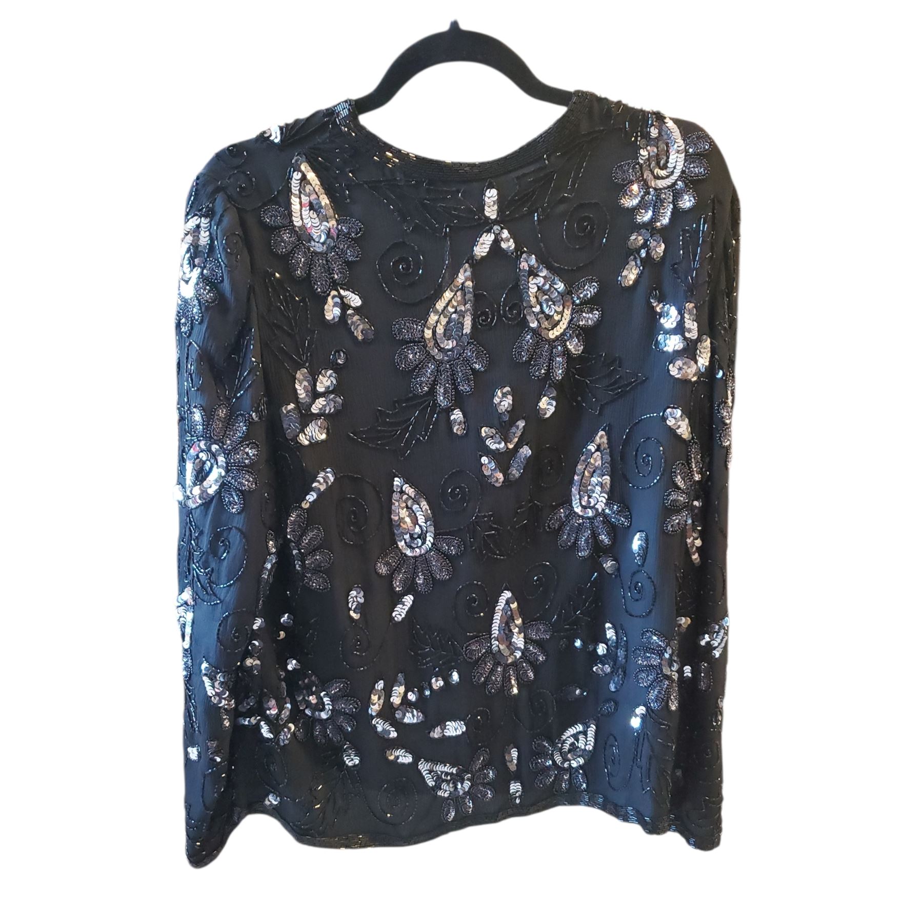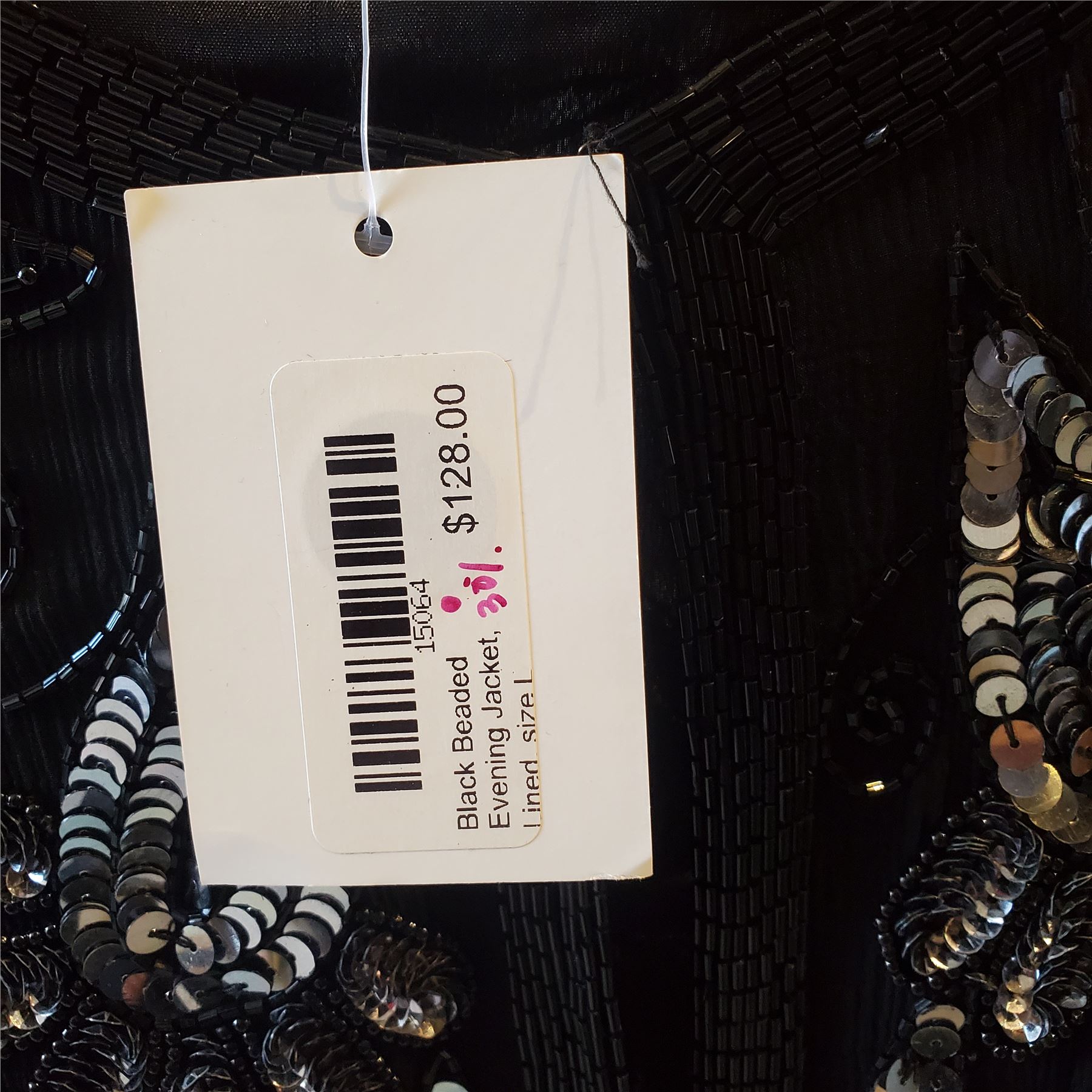 Vintage Black Beaded Evening Lined Jacket, Size L - R.V. $128