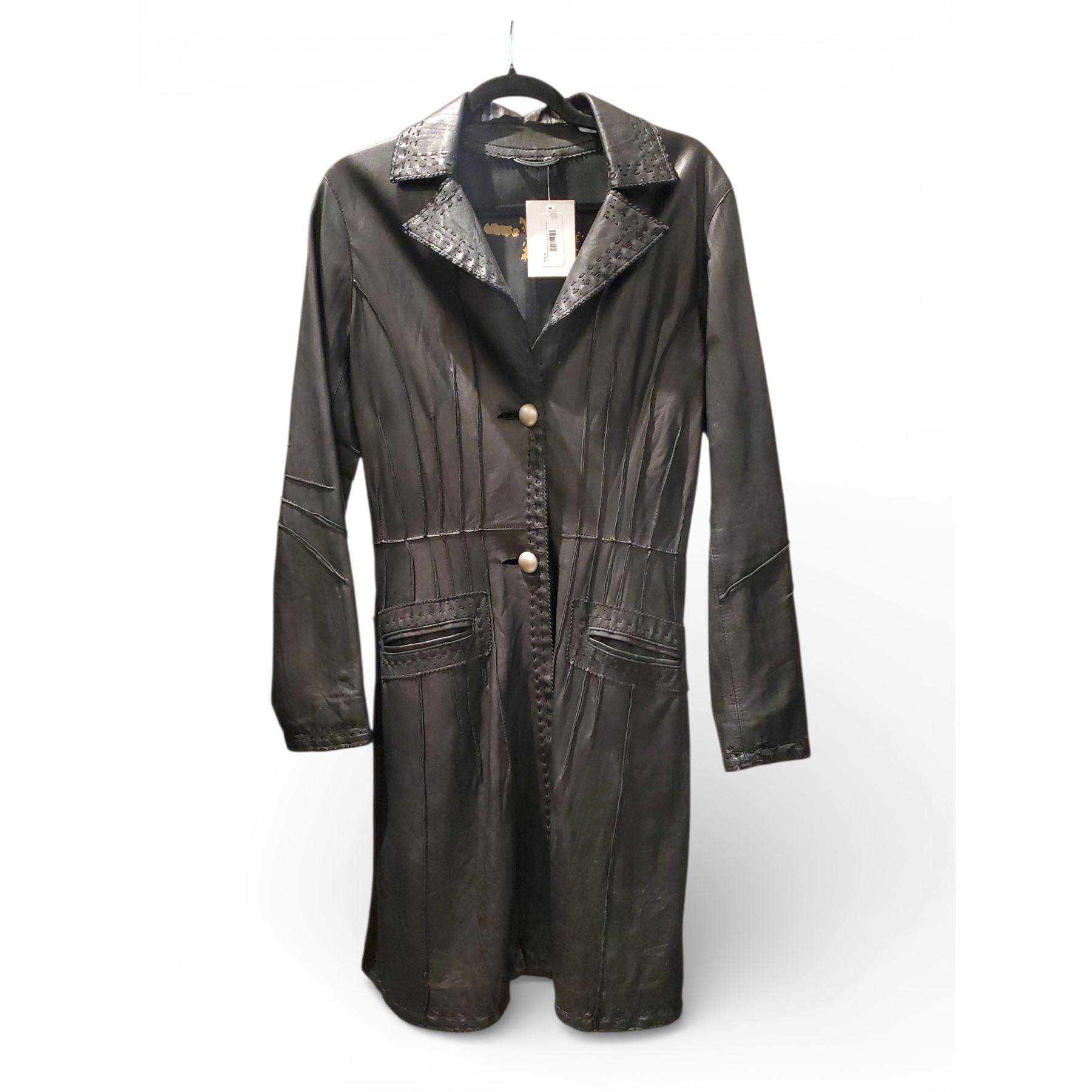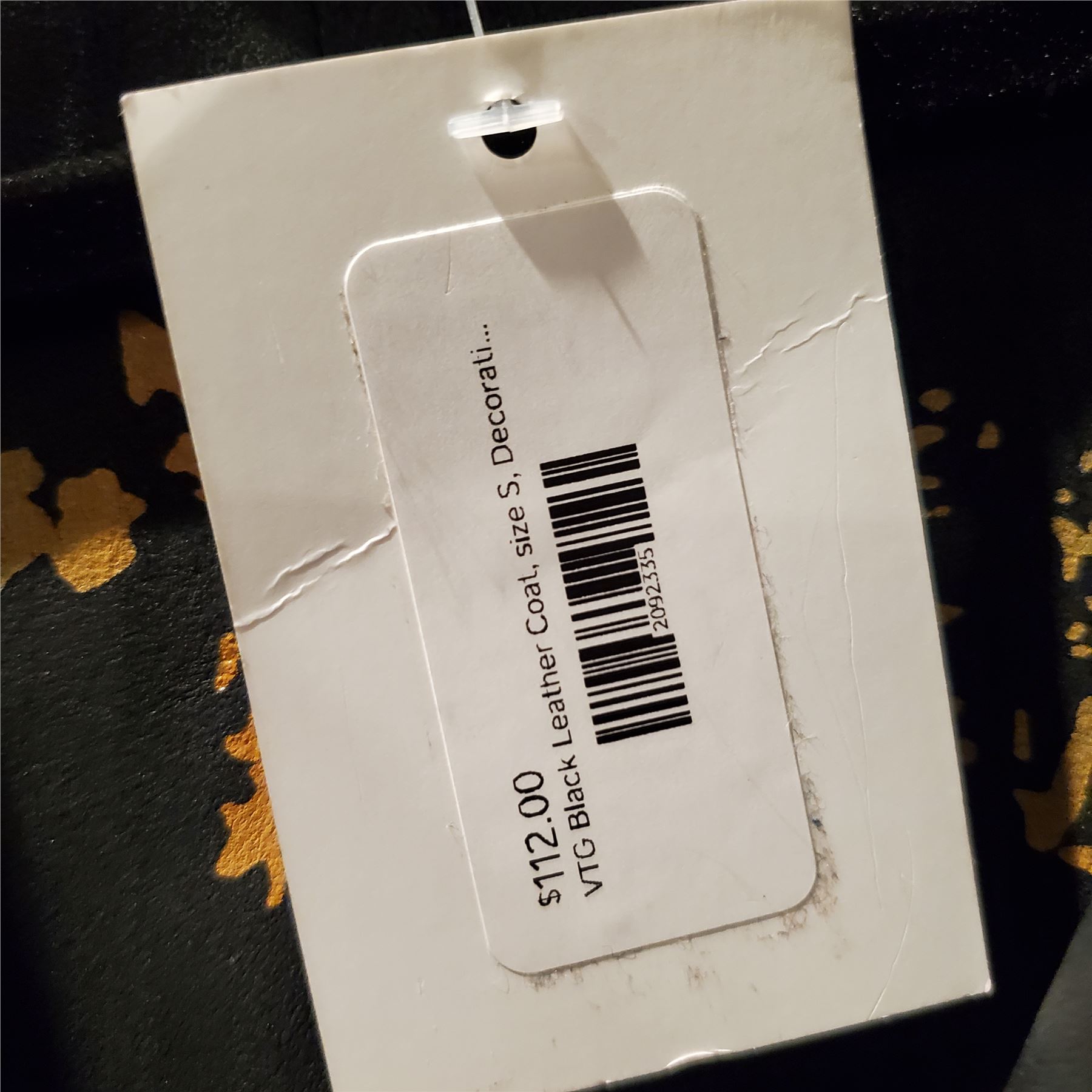 Vintage Black Decorative Patterned Leather Coat - Size S, R.V. $112.99
