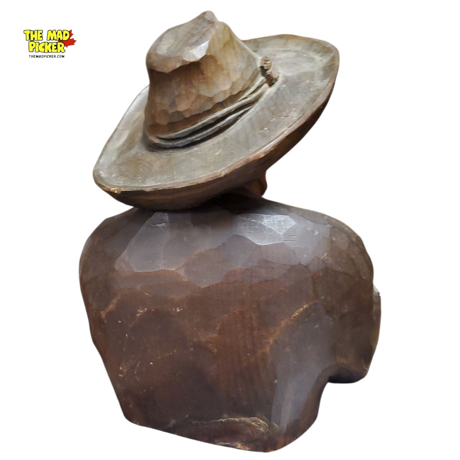 Vintage Black Forest Style Hand-Carved Wooden Bust Smoking Man Figurine - 7in Tall