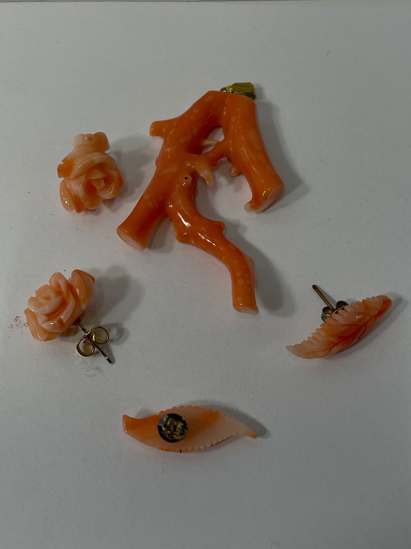 Vintage Branch Coral Pendant & 2 Pairs Of Earrings