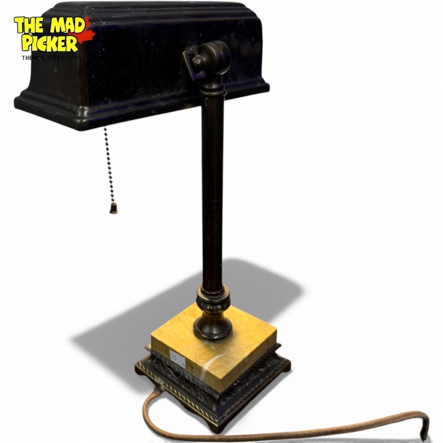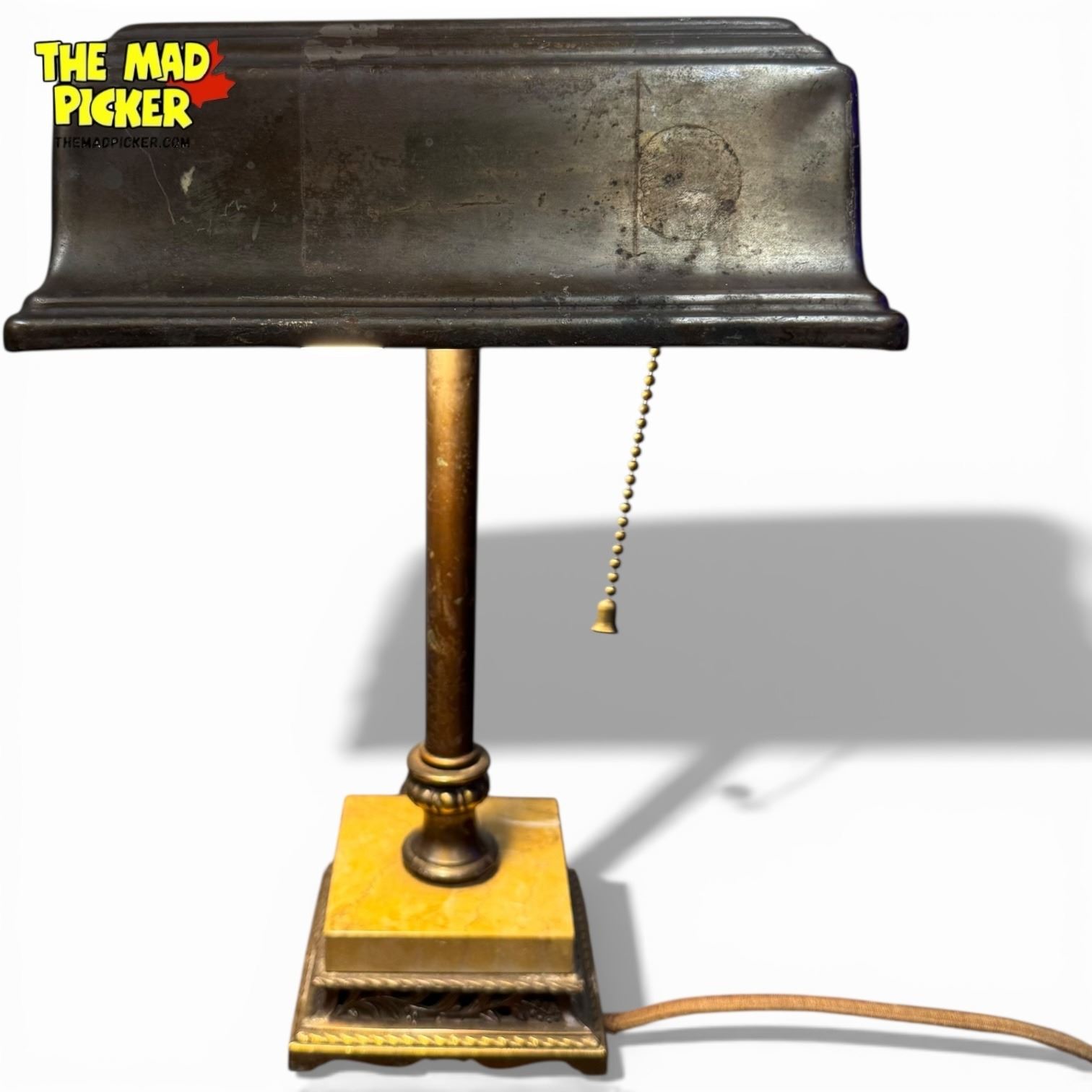 Vintage Brass & Marble Bankers Lamp - 14" tall