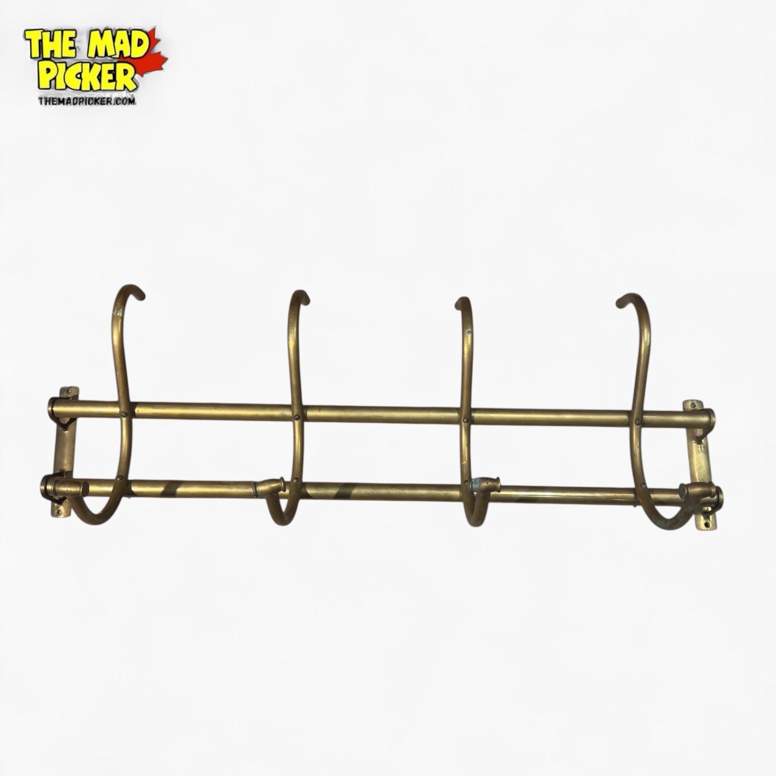 Vintage Brass Wall-Mount Coat Rack with Four Hooks.