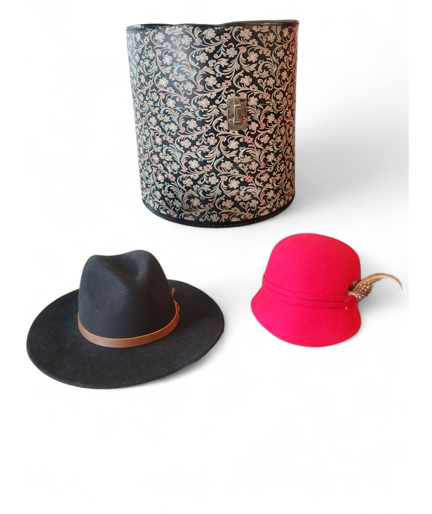 Vintage Brixton Hawkins Weather Guard Hat (Size L) & Red Felt Cloche 1930's Style Hat, with Decorative Storage Box