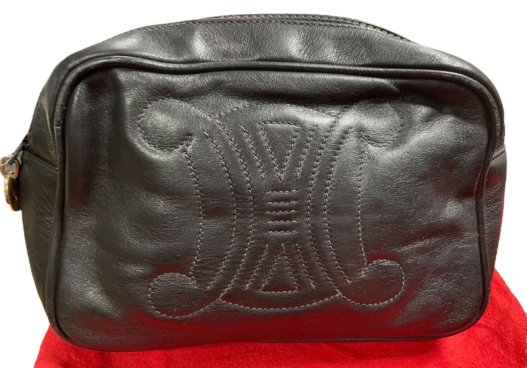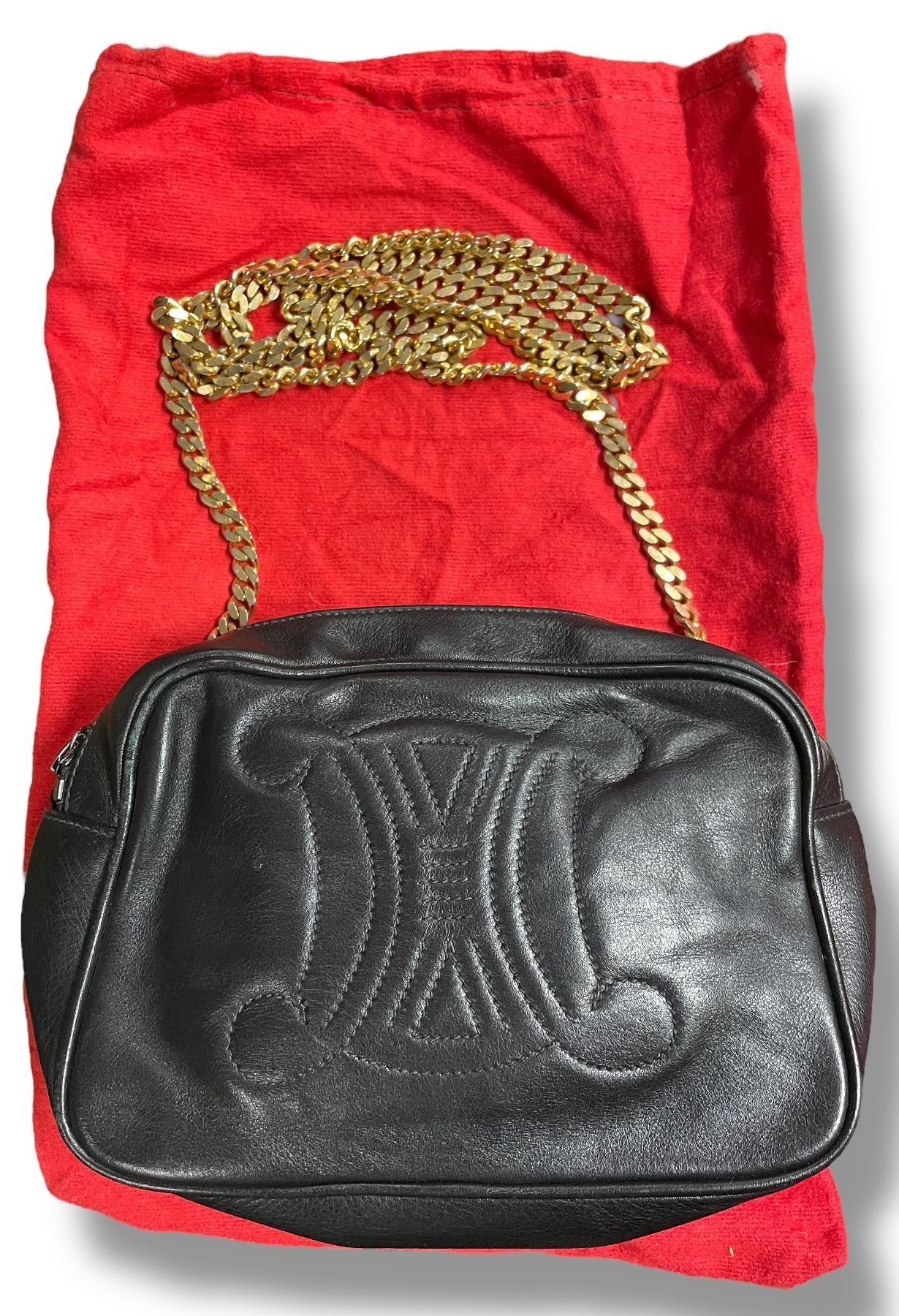 Vintage CELINE Triomphe Leather Chain Shoulder Bag. Condition: Minor scratches or wear on the surface. Sold as-is; Authenticity Not Verified