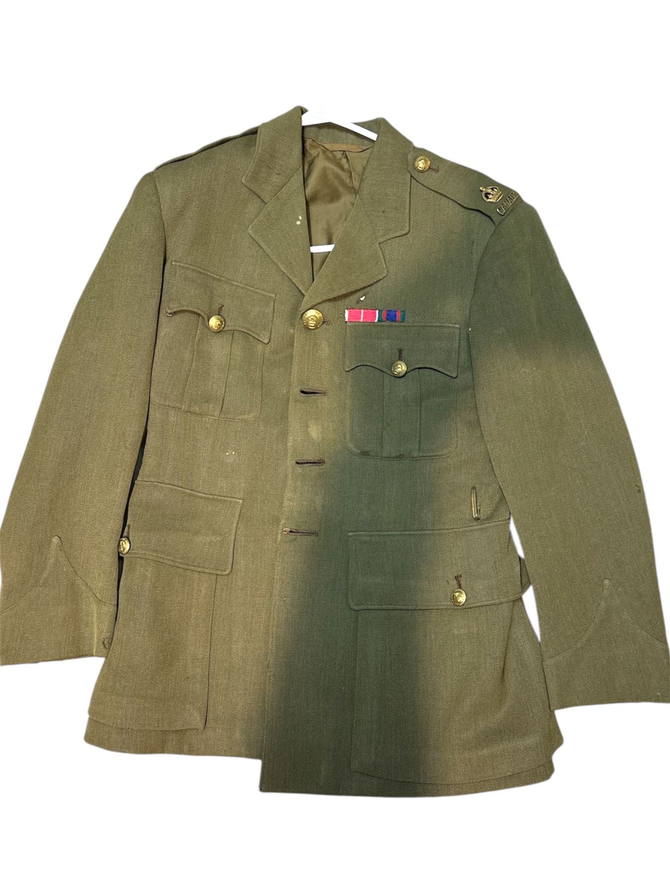 Vintage Canadian Officer's Service Dress Jacket from the WWII era. Features a length of 30.5 inches and a shoulder measurement of 18 inches. Military issue uniform with traditional design from the wartime period. Item is as pictured.