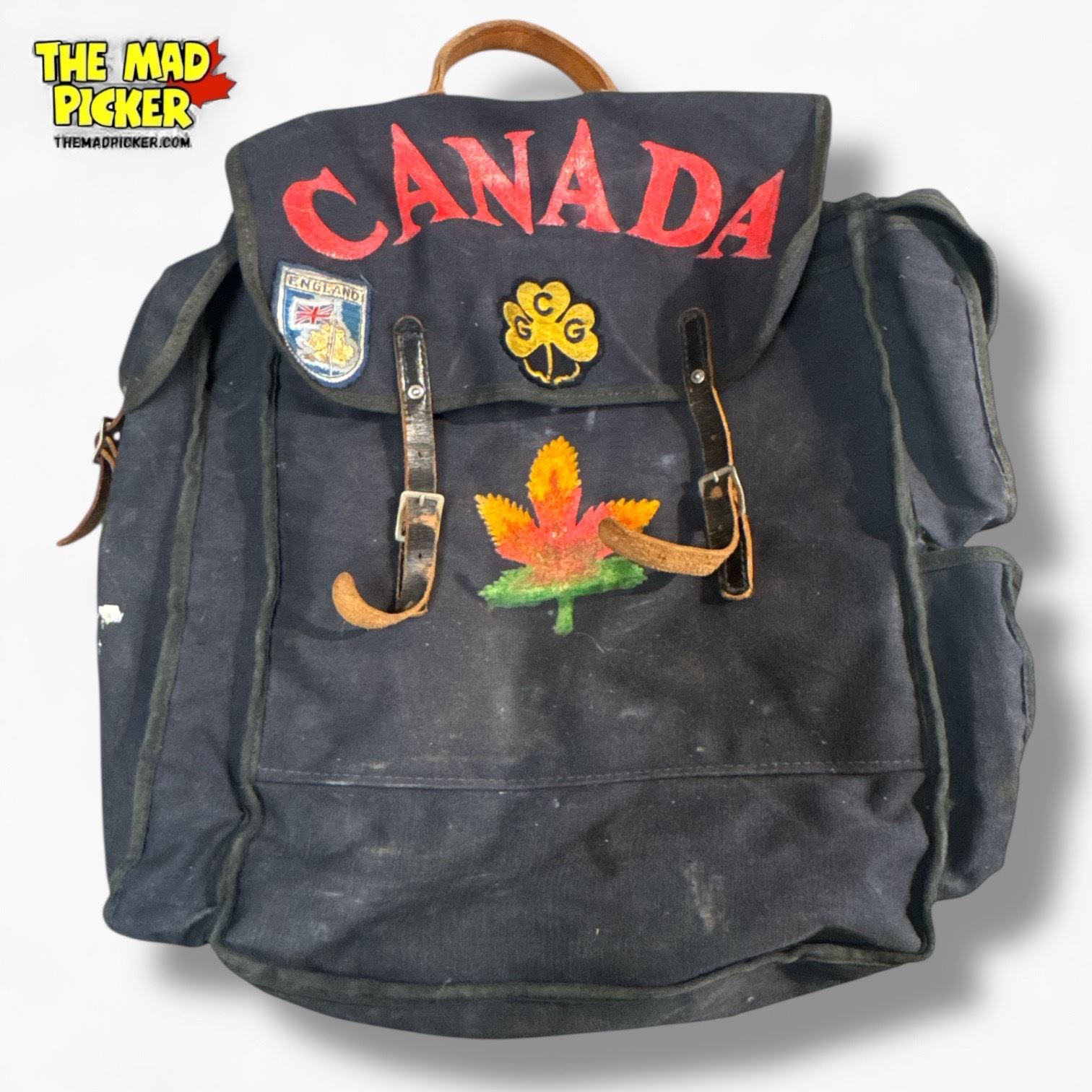 Vintage Canvas Girl Guides of Canada Backpack with Leather Accents