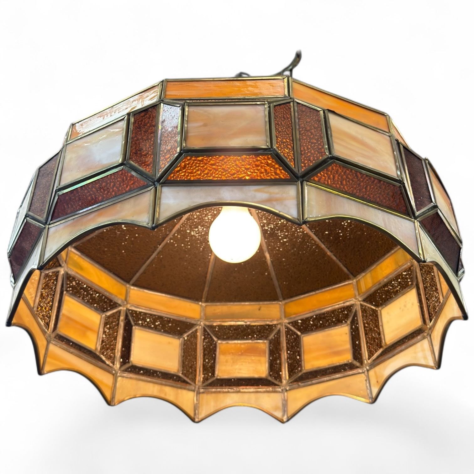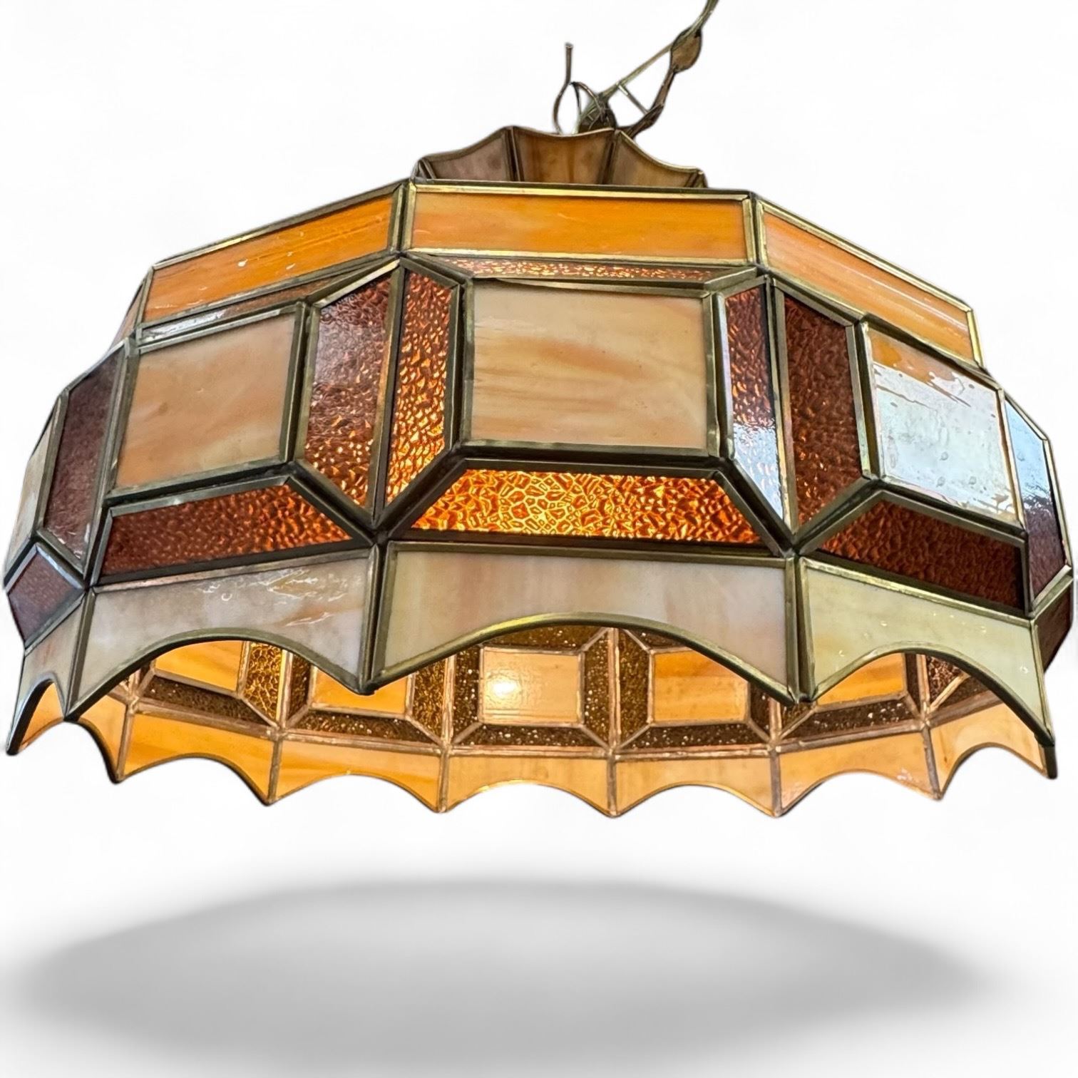 Vintage Ceiling Light with 20" Stained Glass Shade * Tested and Working