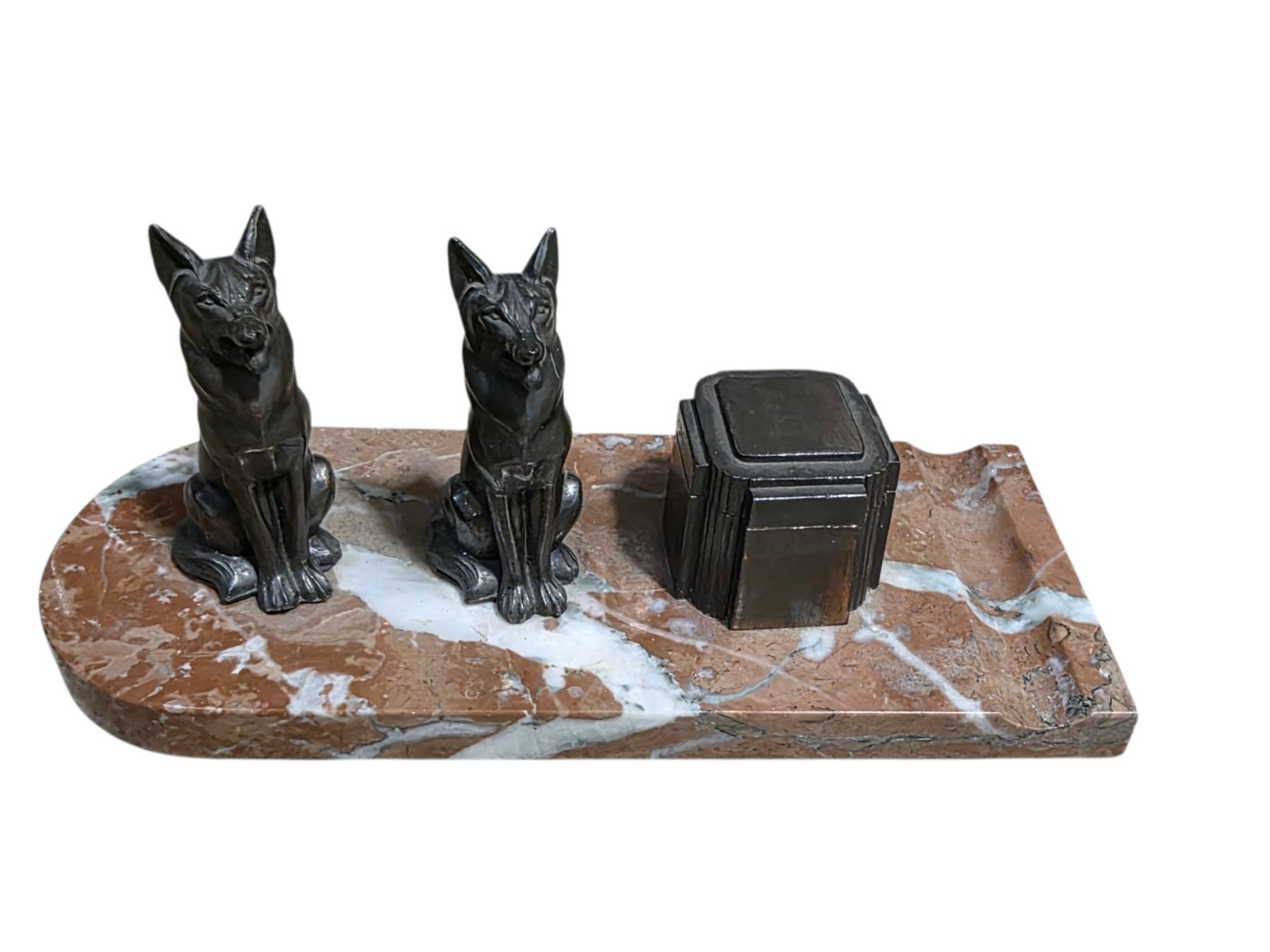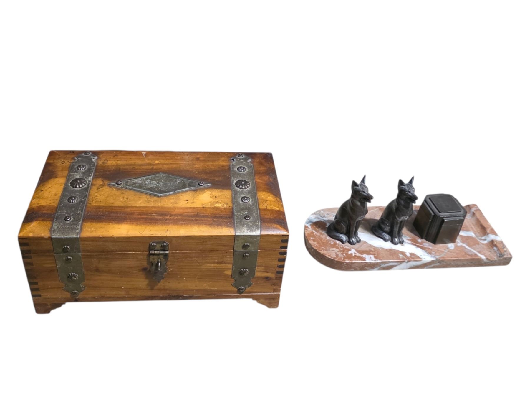 Vintage Chest Box and Metal Fox Piece on Marble