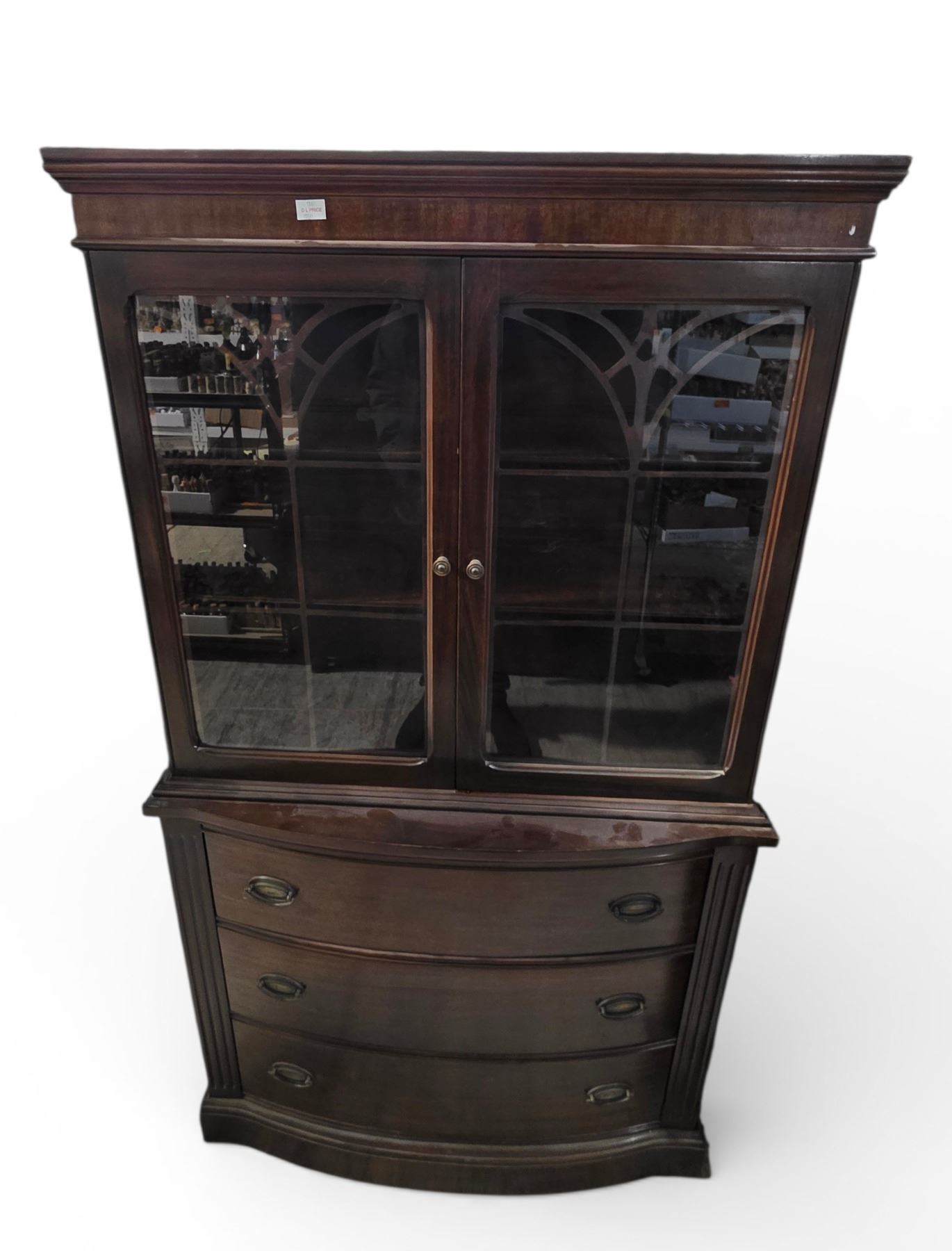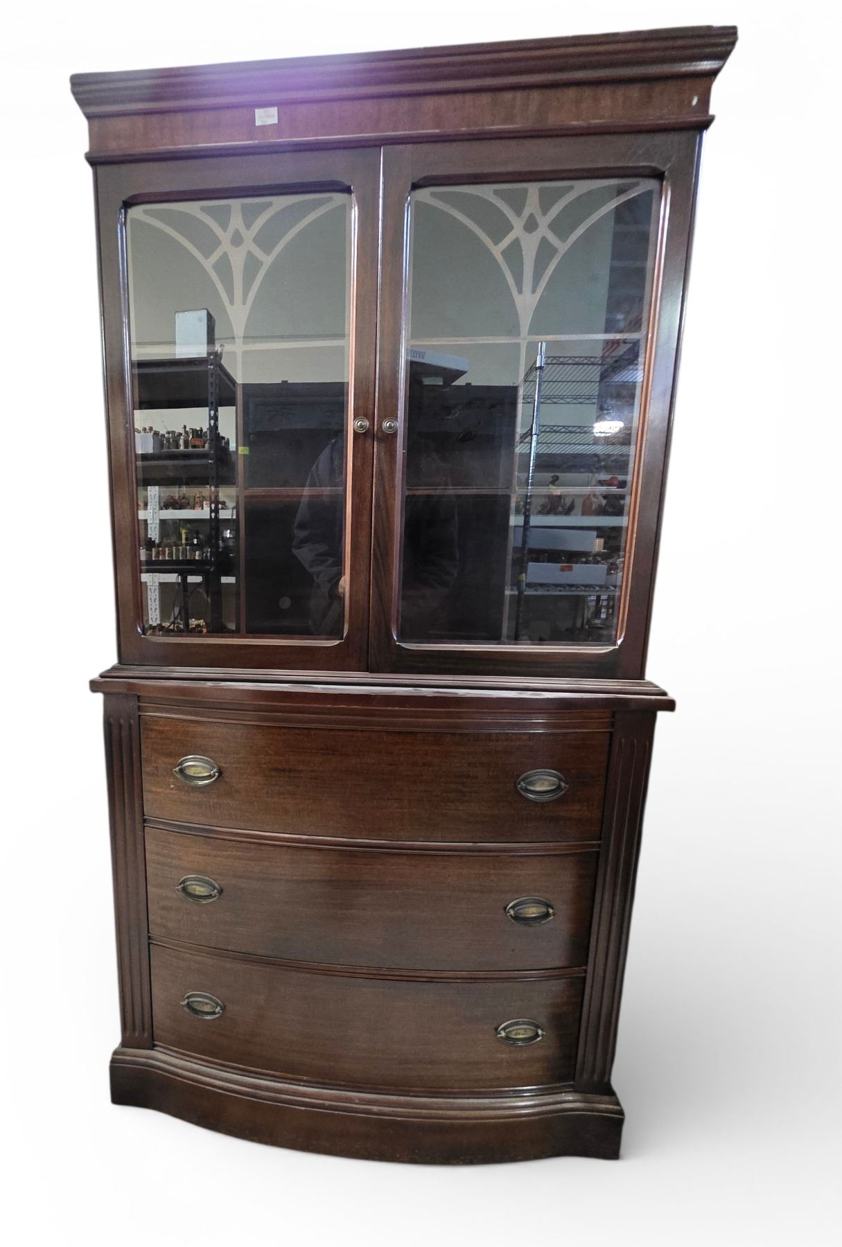 Vintage China Cabinet with 3 Drawer Base - 15" x 36" x 66" Tall