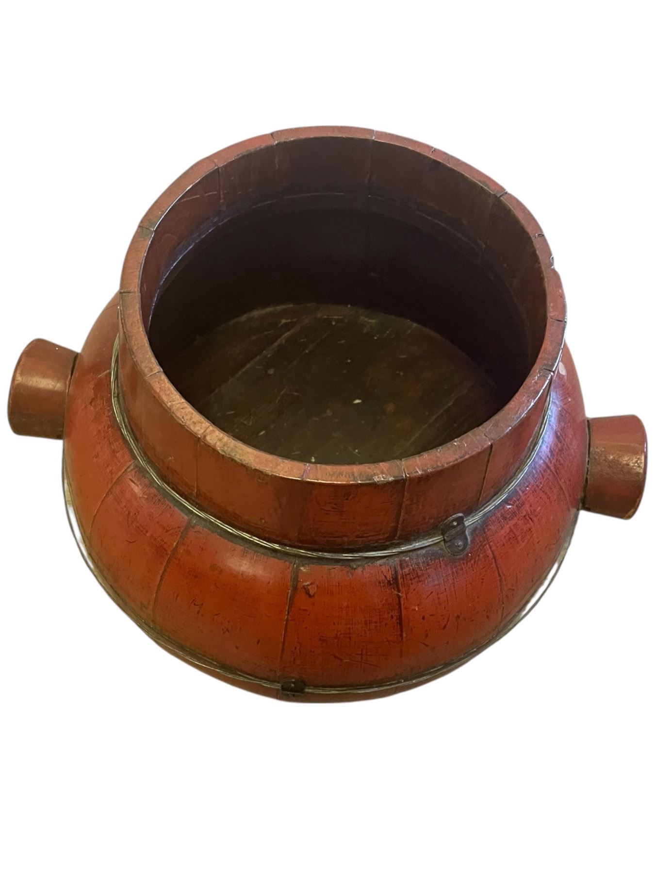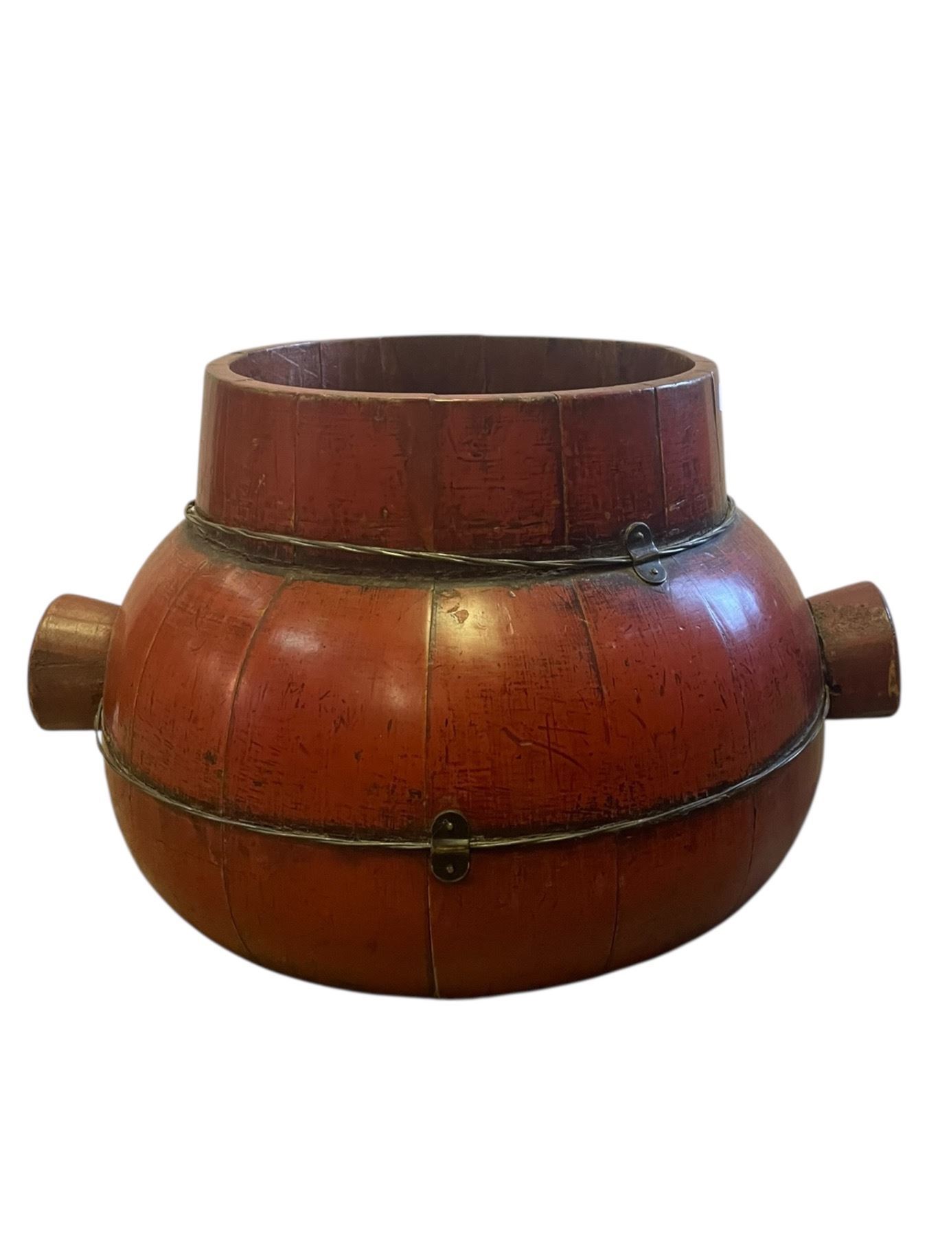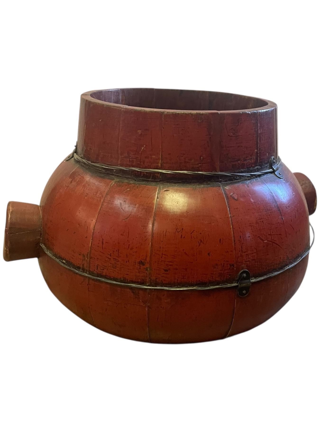 Vintage Chinese Red Lacquer Wood Basket (13" diameter x 7" deep)