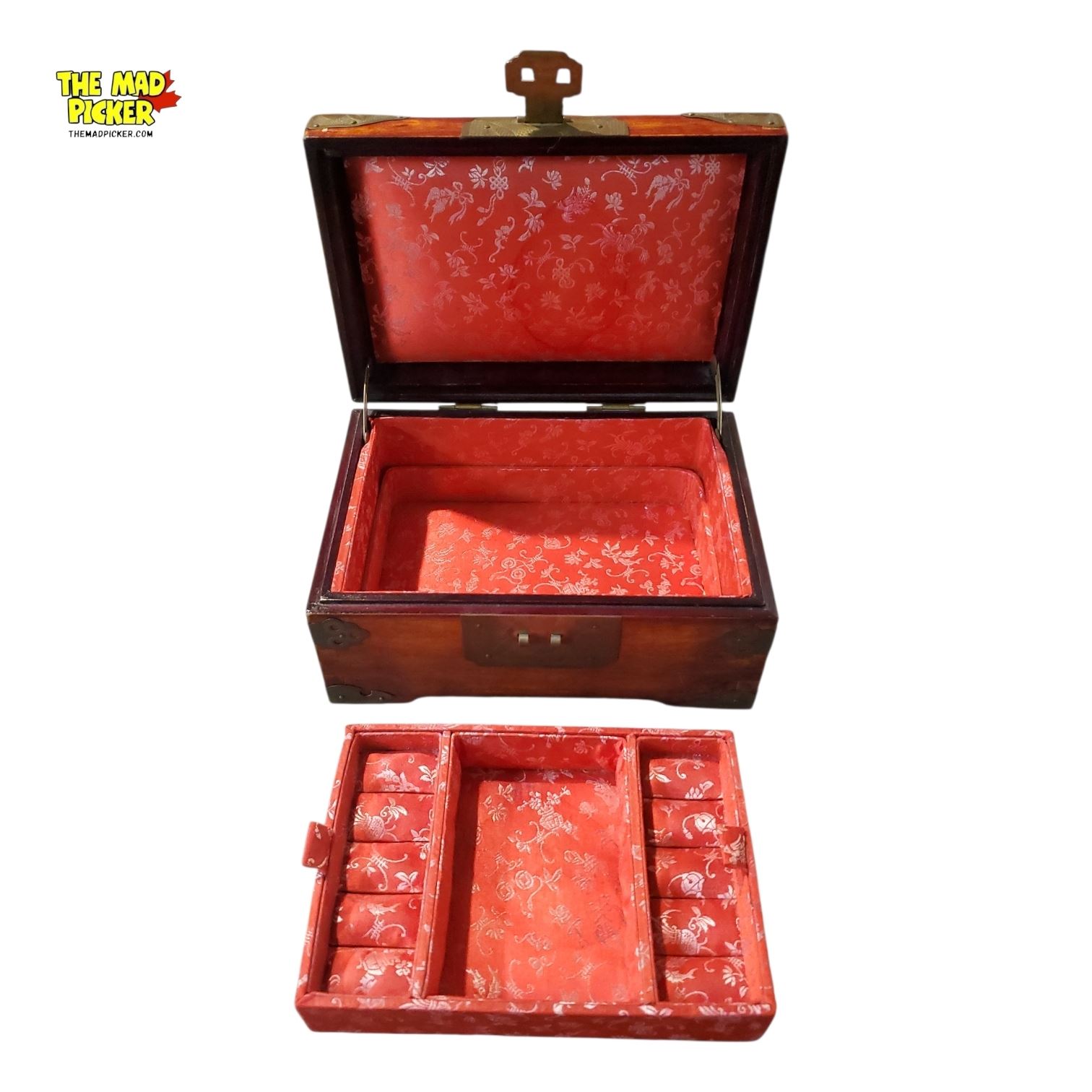 Vintage Chinese Rosewood Jewelry Box - 8in wide