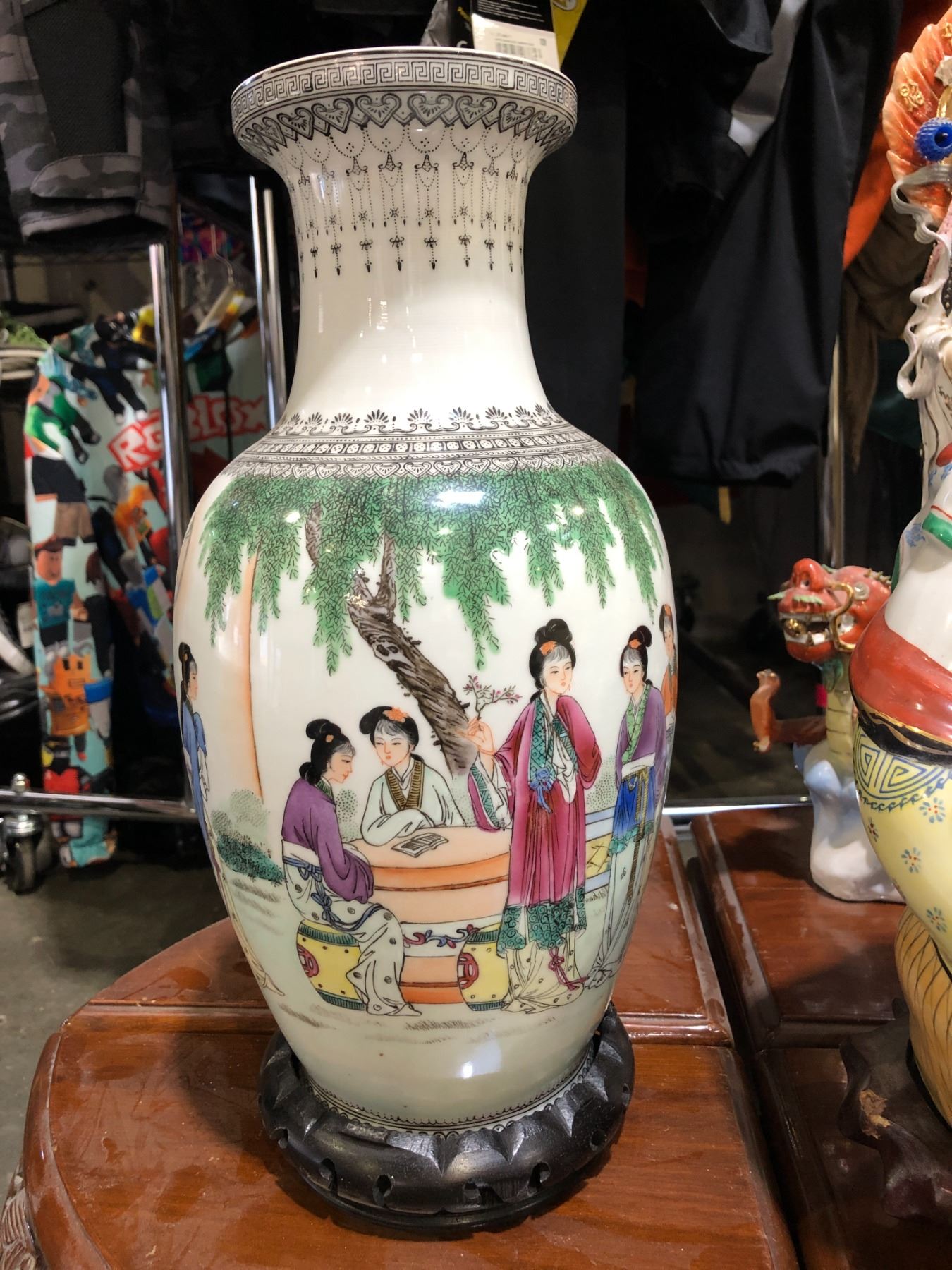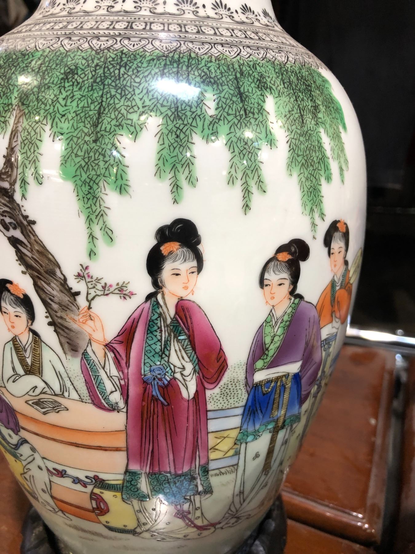 Vintage Chinese hand painted vase - approx 16" height