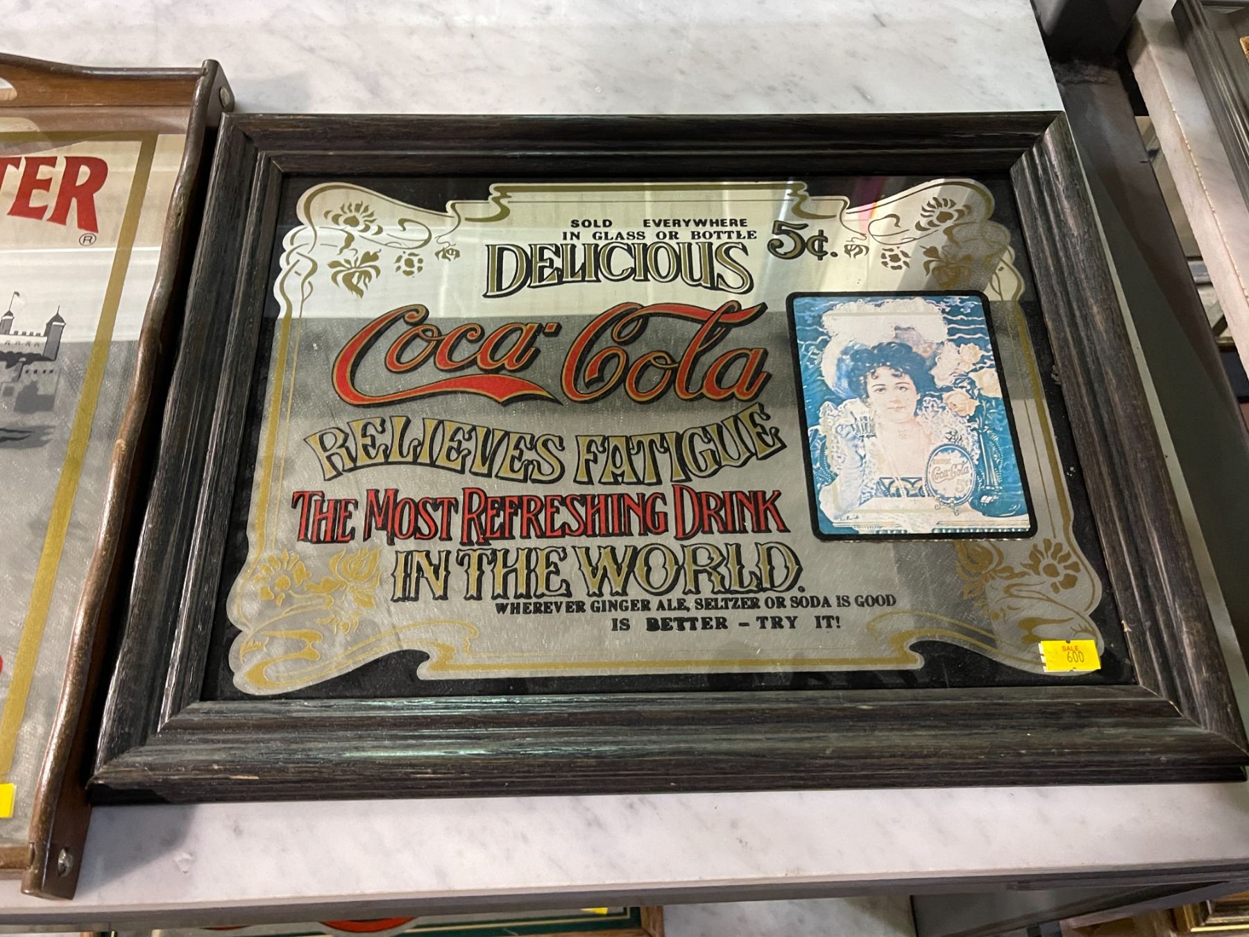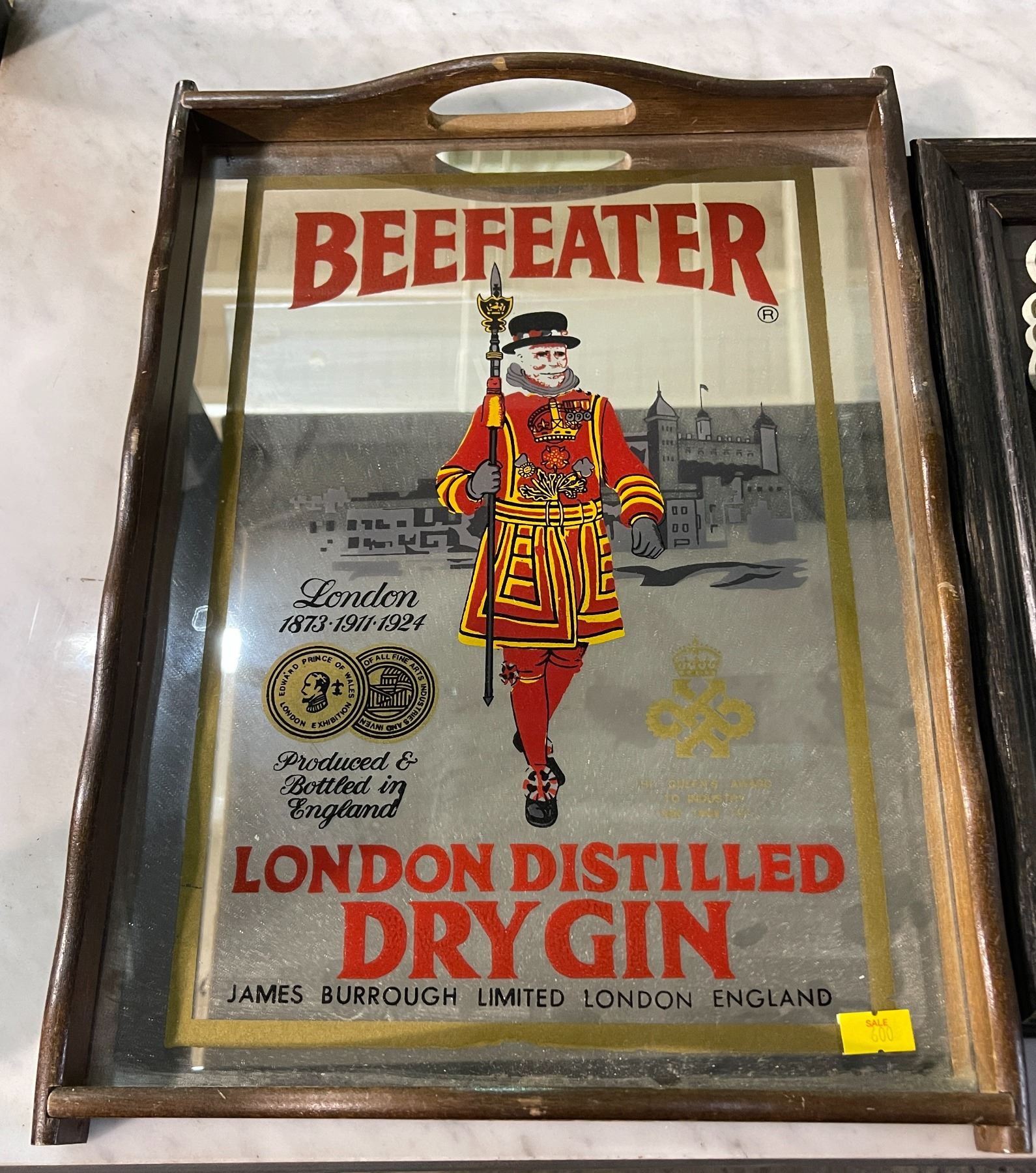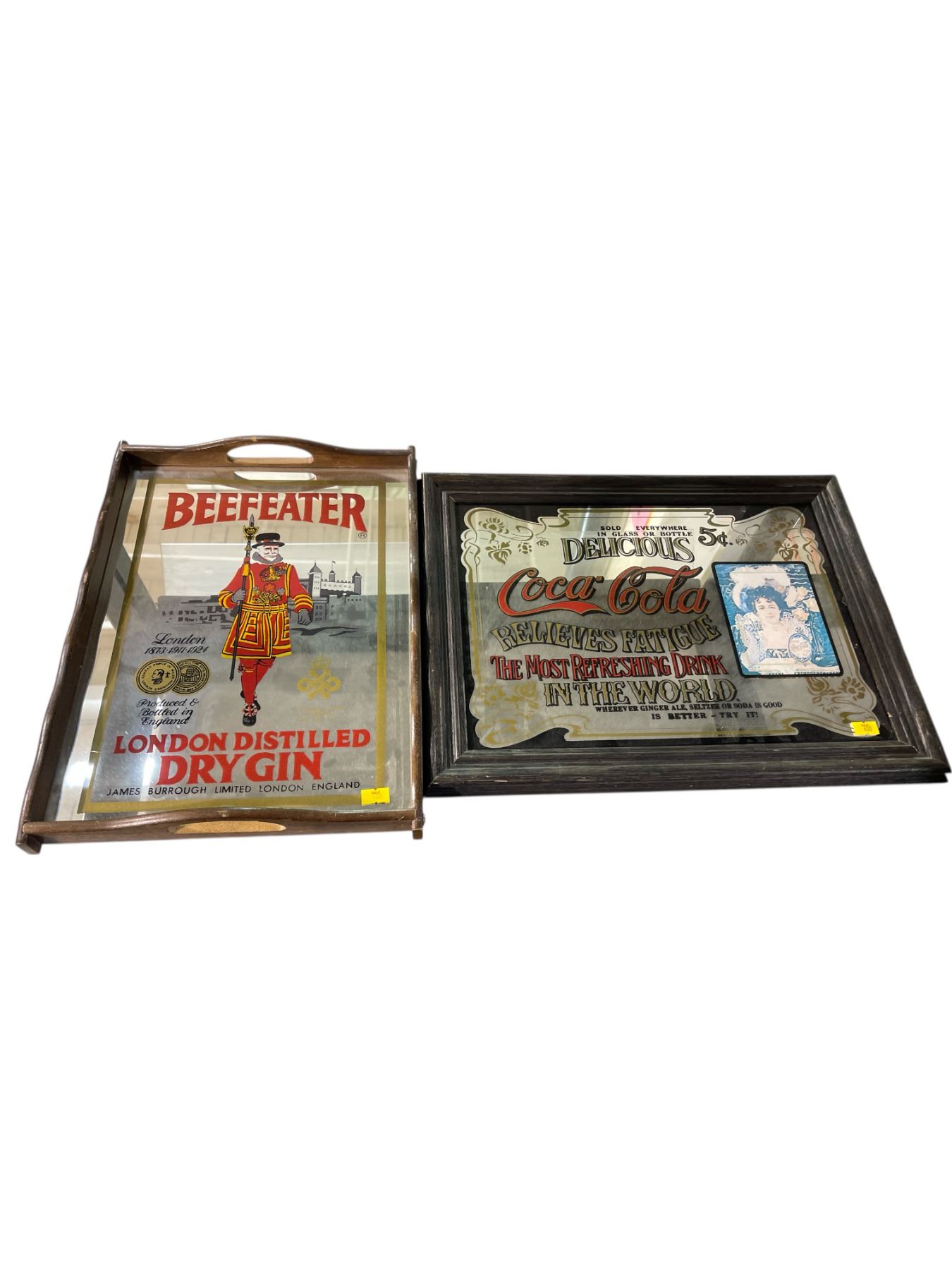 Vintage Coca Cola Bar Mirror (13" x 17") and Beefeater London Distilled Dry Gin Mirrored Serving Tray (15" x 11")