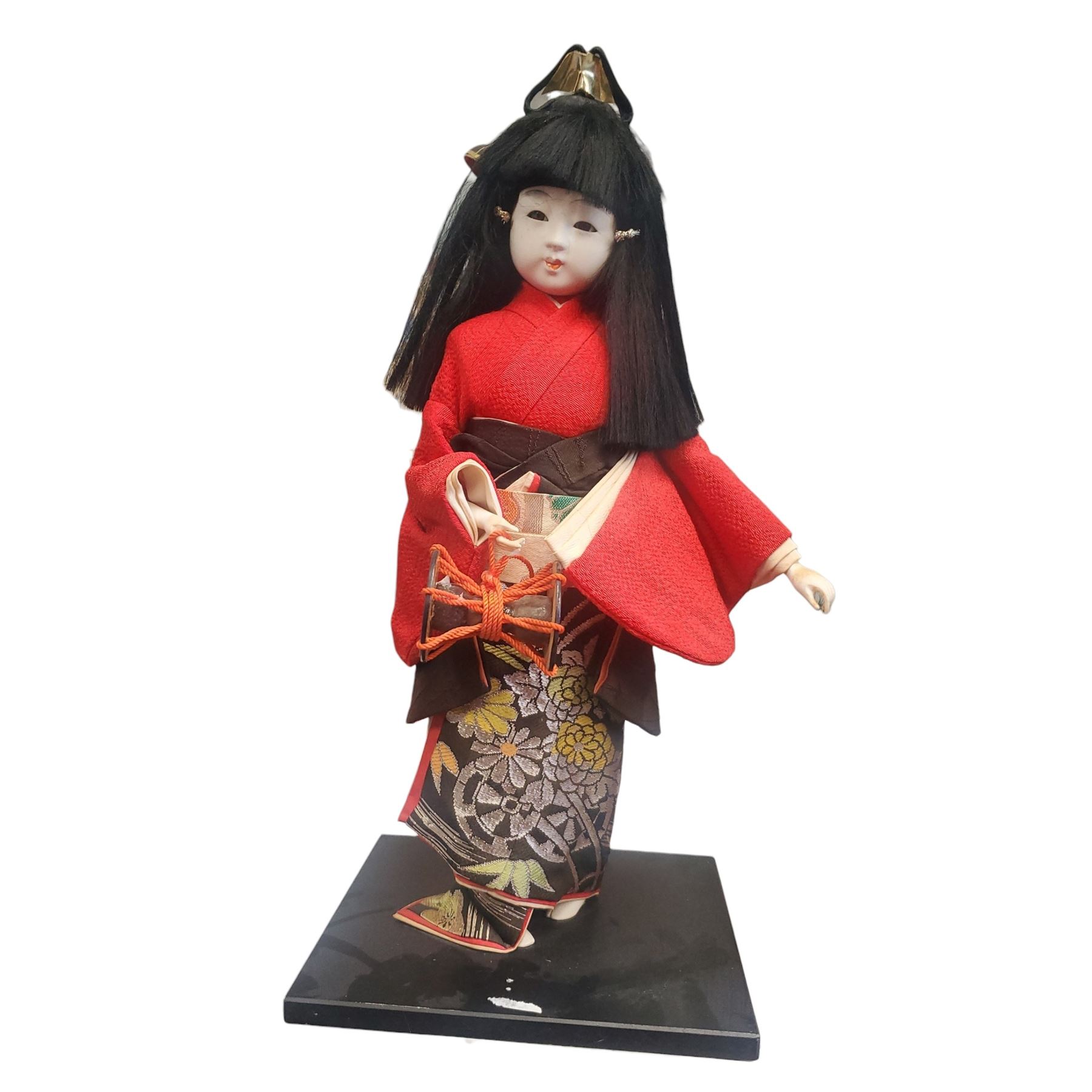Vintage Japanese Ichimatsu doll standing 17-Inch tall. Traditionally crafted to resemble a young child, Ichimatsu dolls are known for their lifelike details and traditional clothing. Item is as pictured.