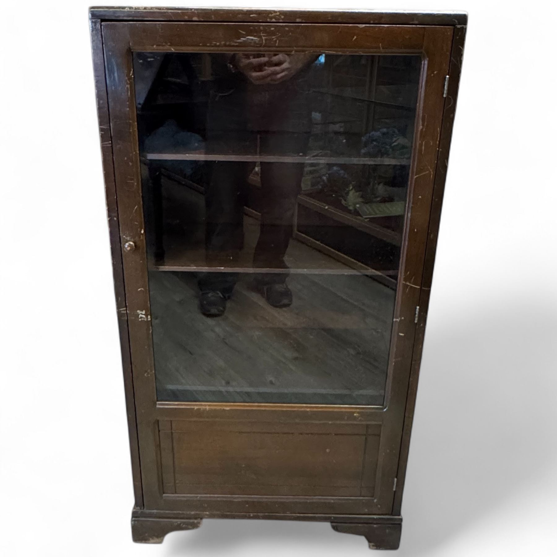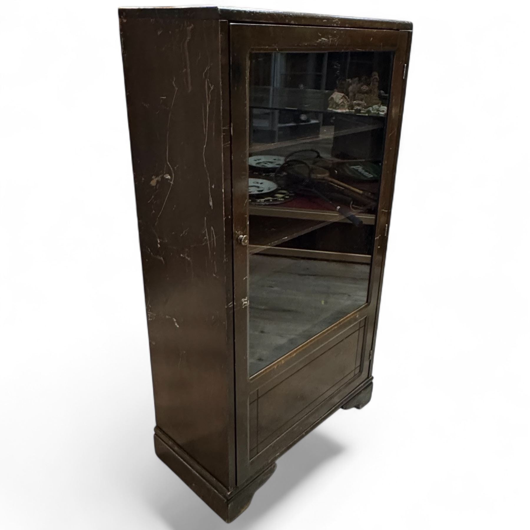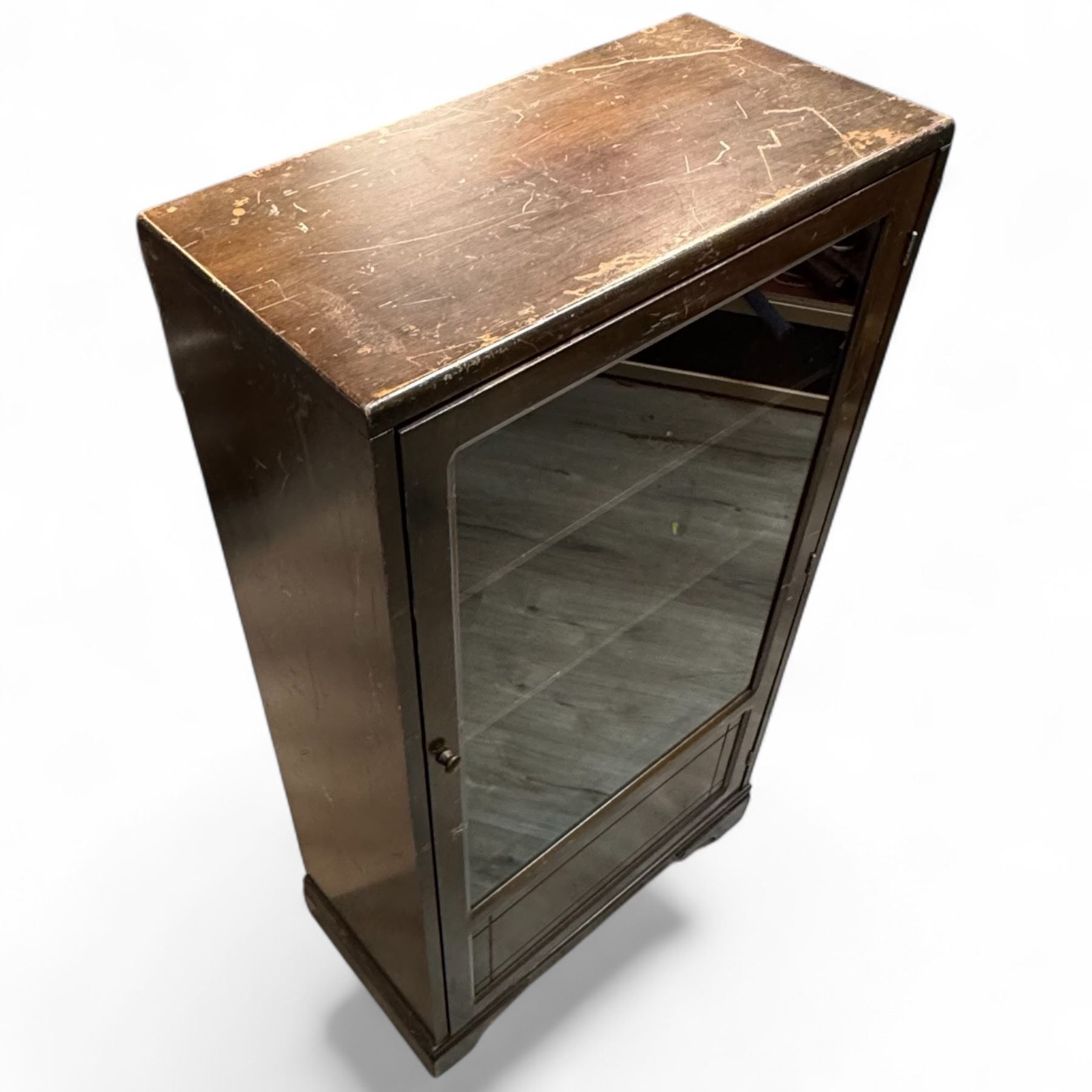 Vintage Compact Wood Display Cabinet with Glass Door (12" x 24" x 46" tall)