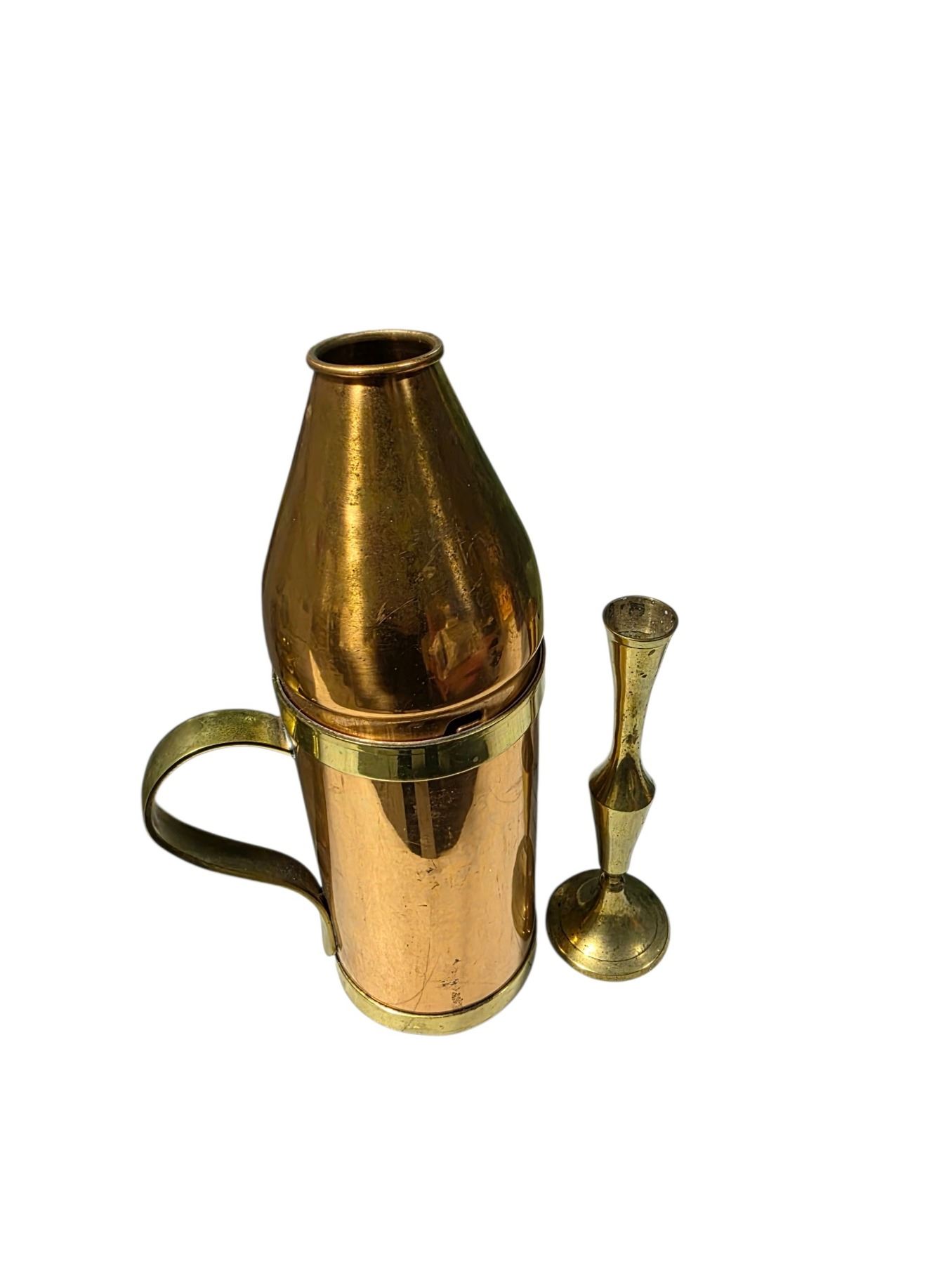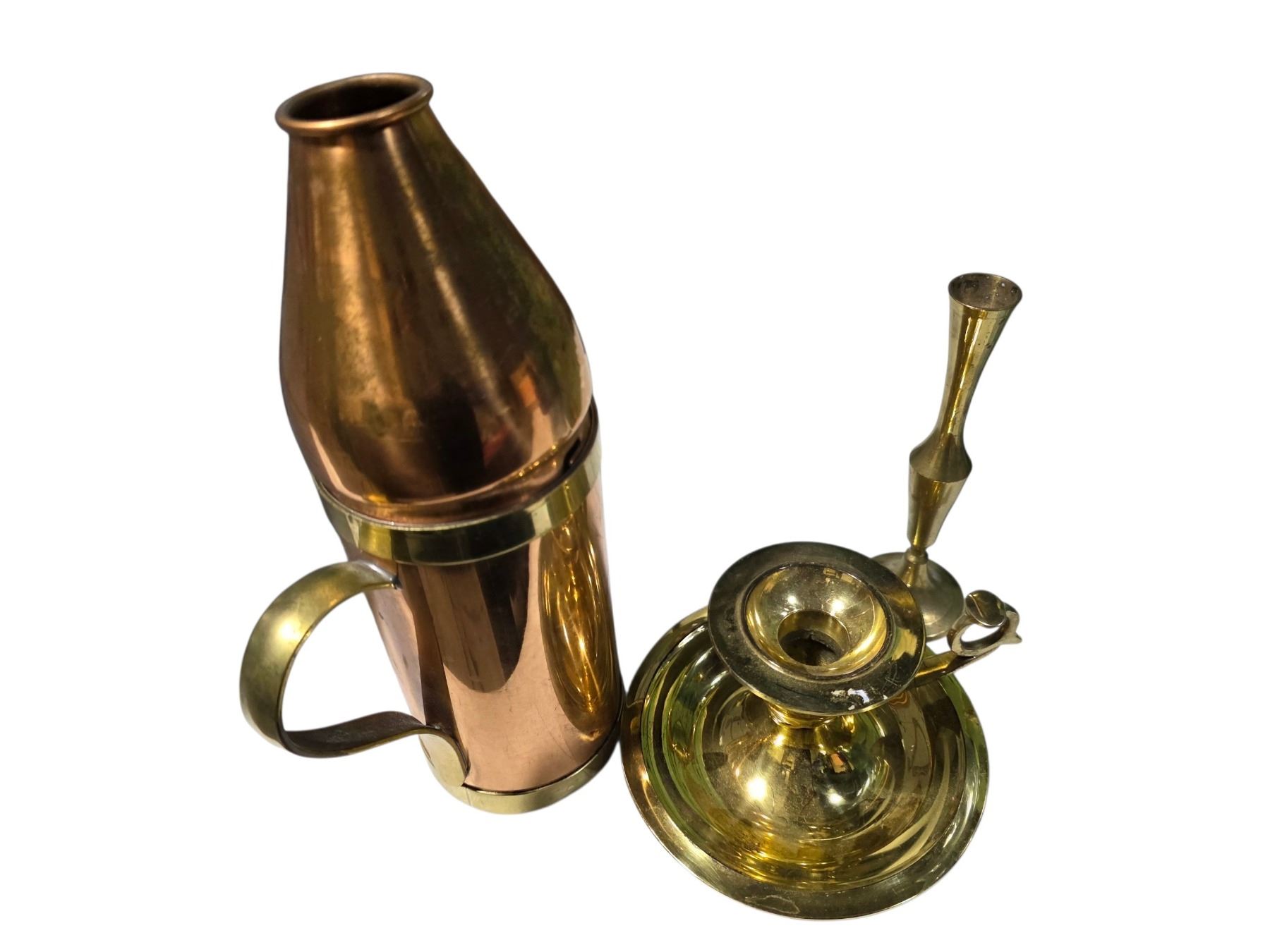 Vintage Copper Brass Wine Bottle Holder & Solid Brass Chamberstick Candle Holder