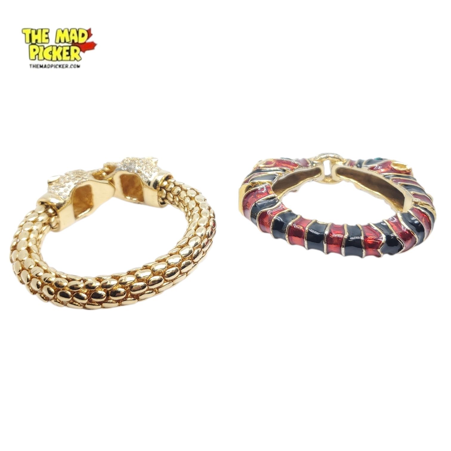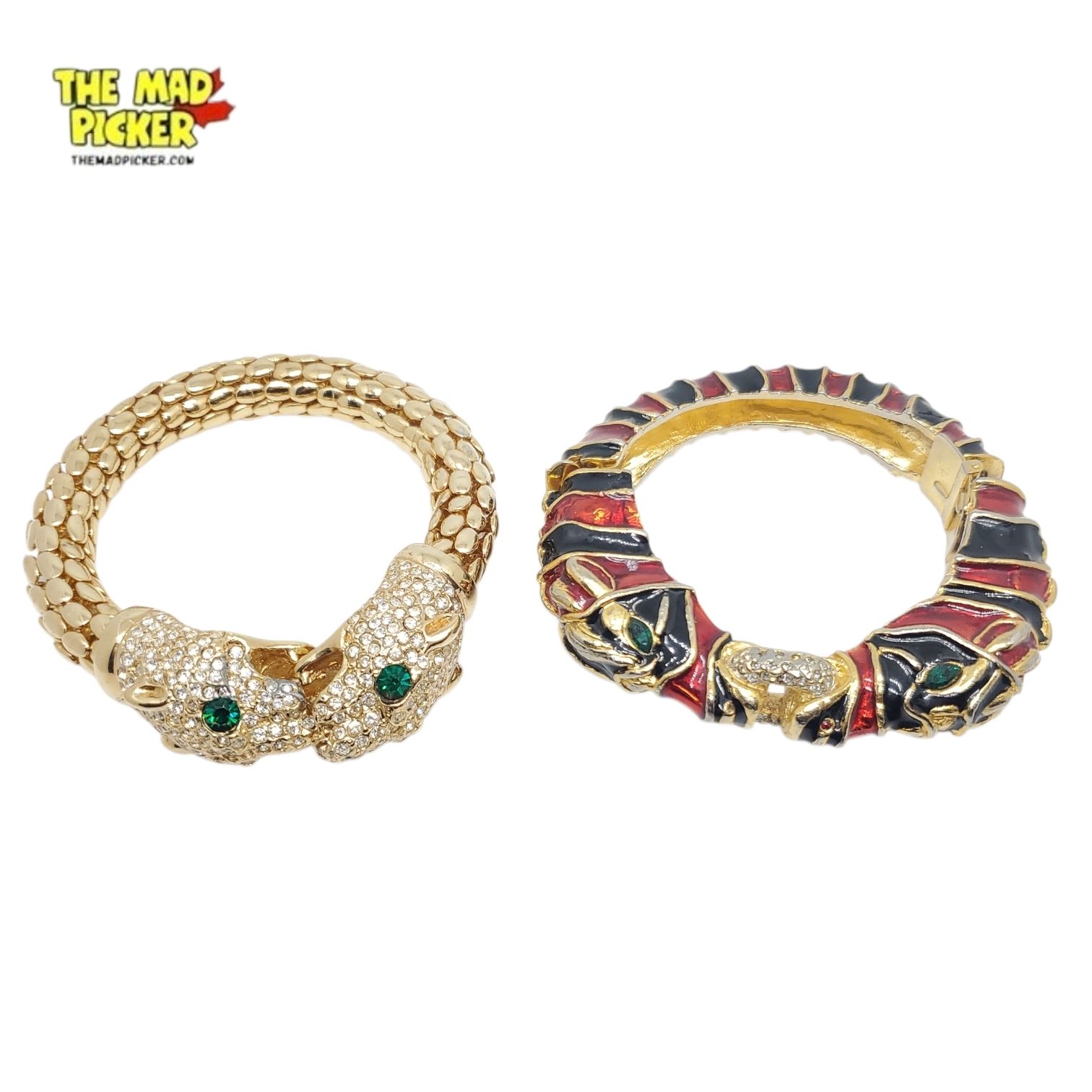 Vintage Crystal & Enamel Double Headed Jaguar & Double Horse Head Hinged Cuff Bracelet
