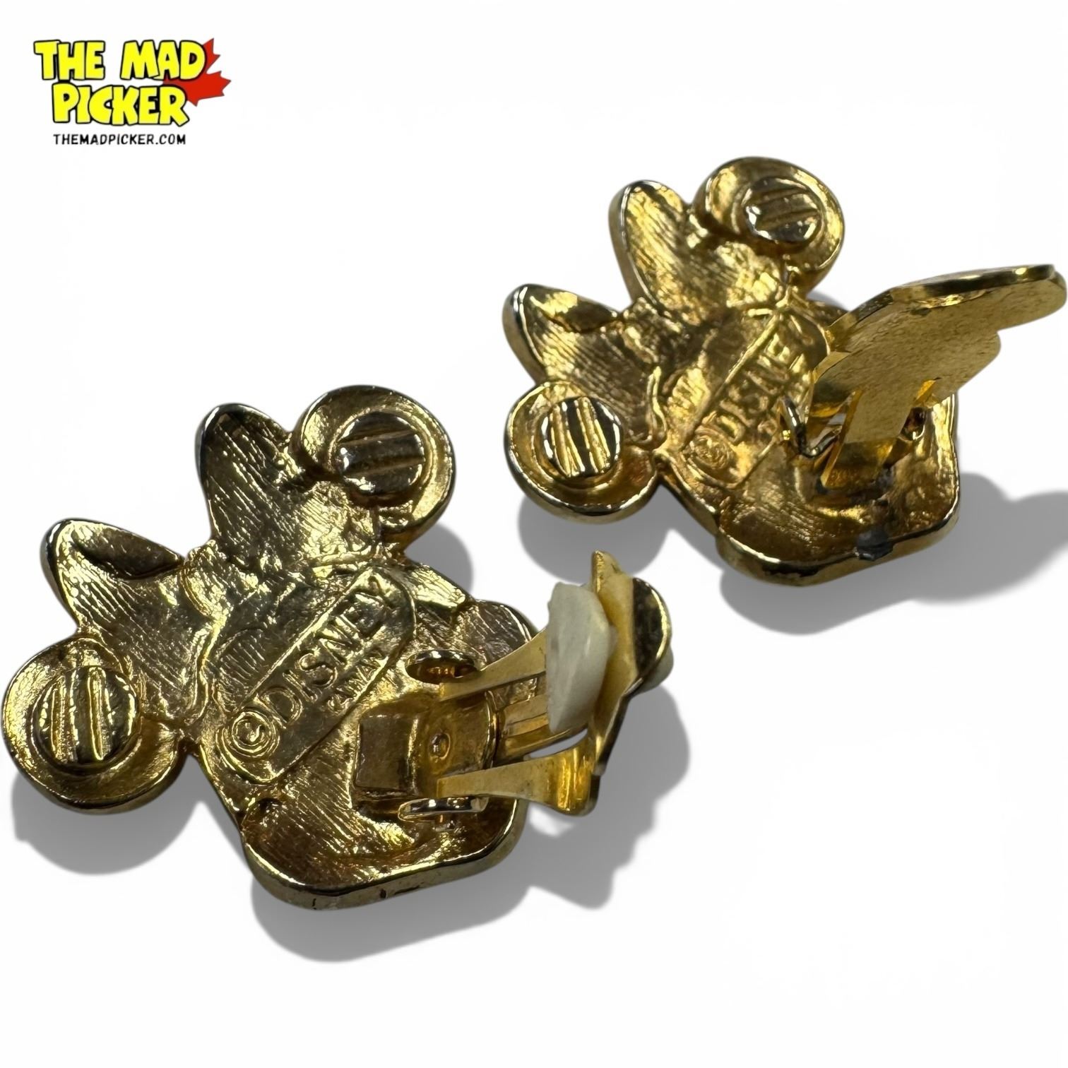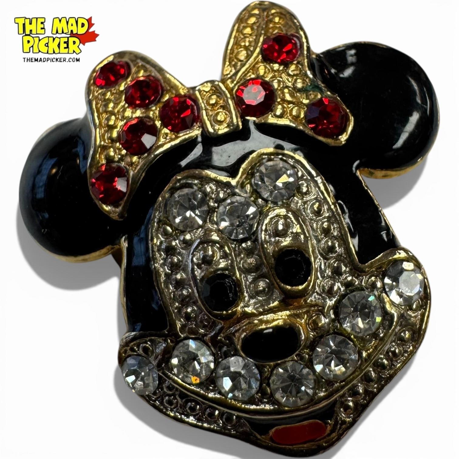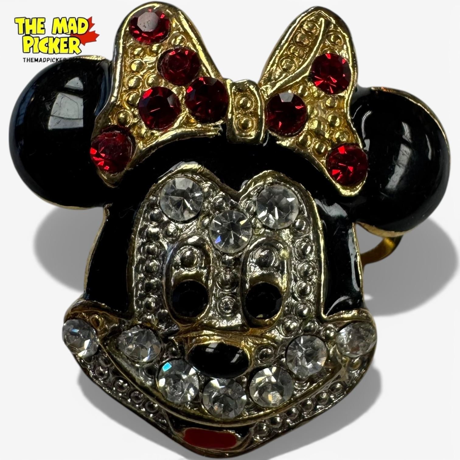 Vintage Disney Minnie Mouse Rhinestone & Enamel Clip-On Earrings - 1" x 1.25"