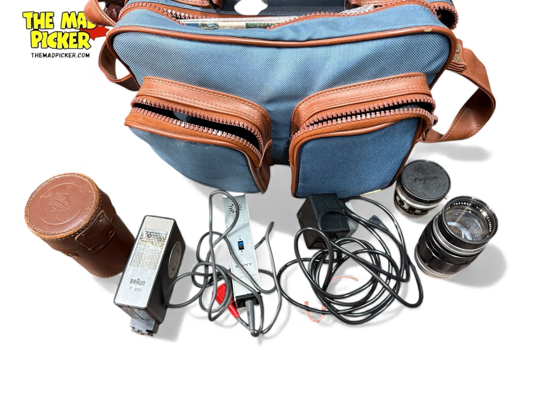 Vintage Electronics/ Camera Equipment: Sony Microphone, Lenses Eumig Projector & Camera