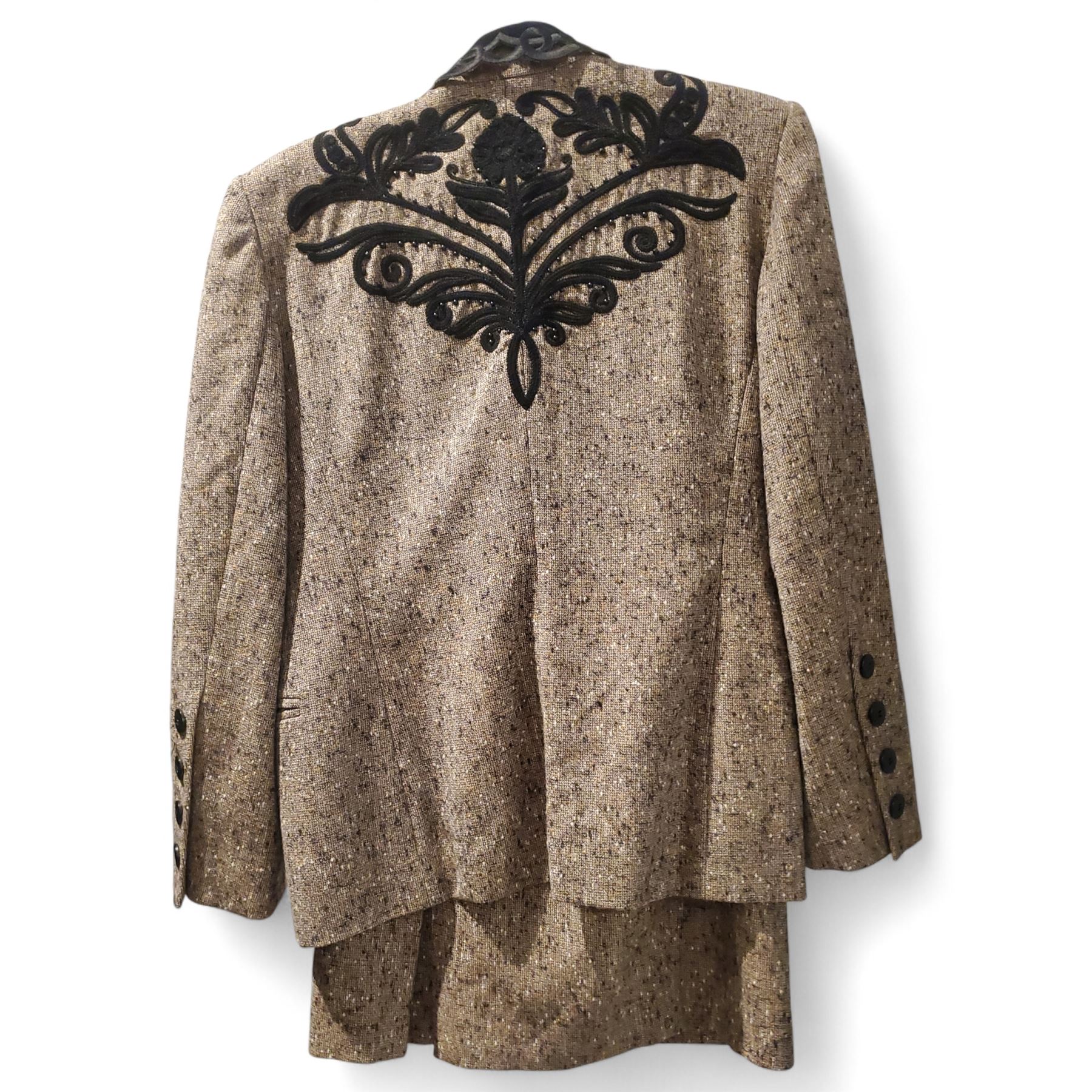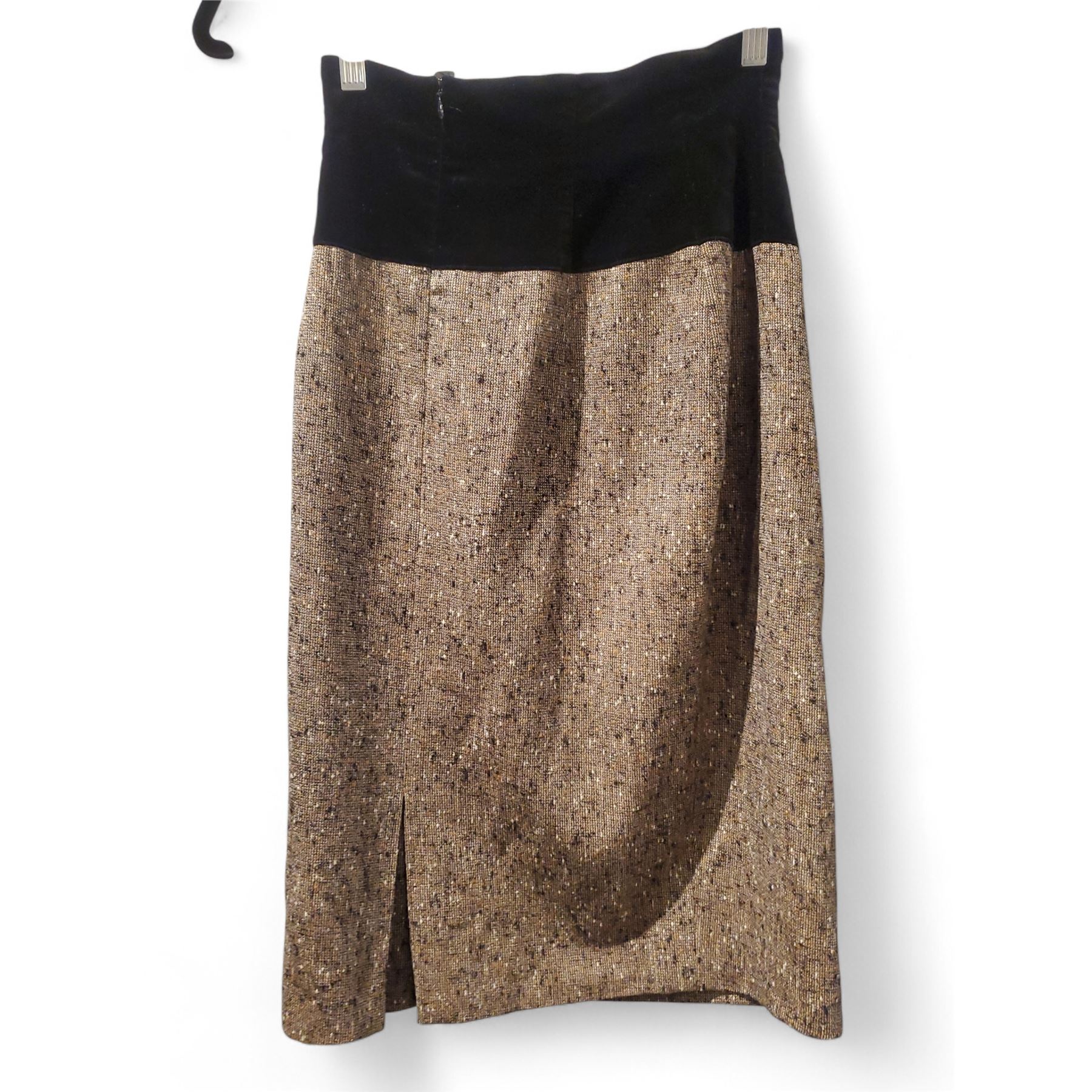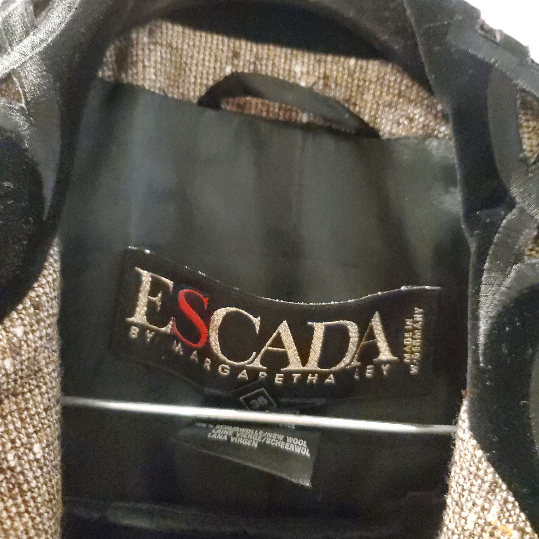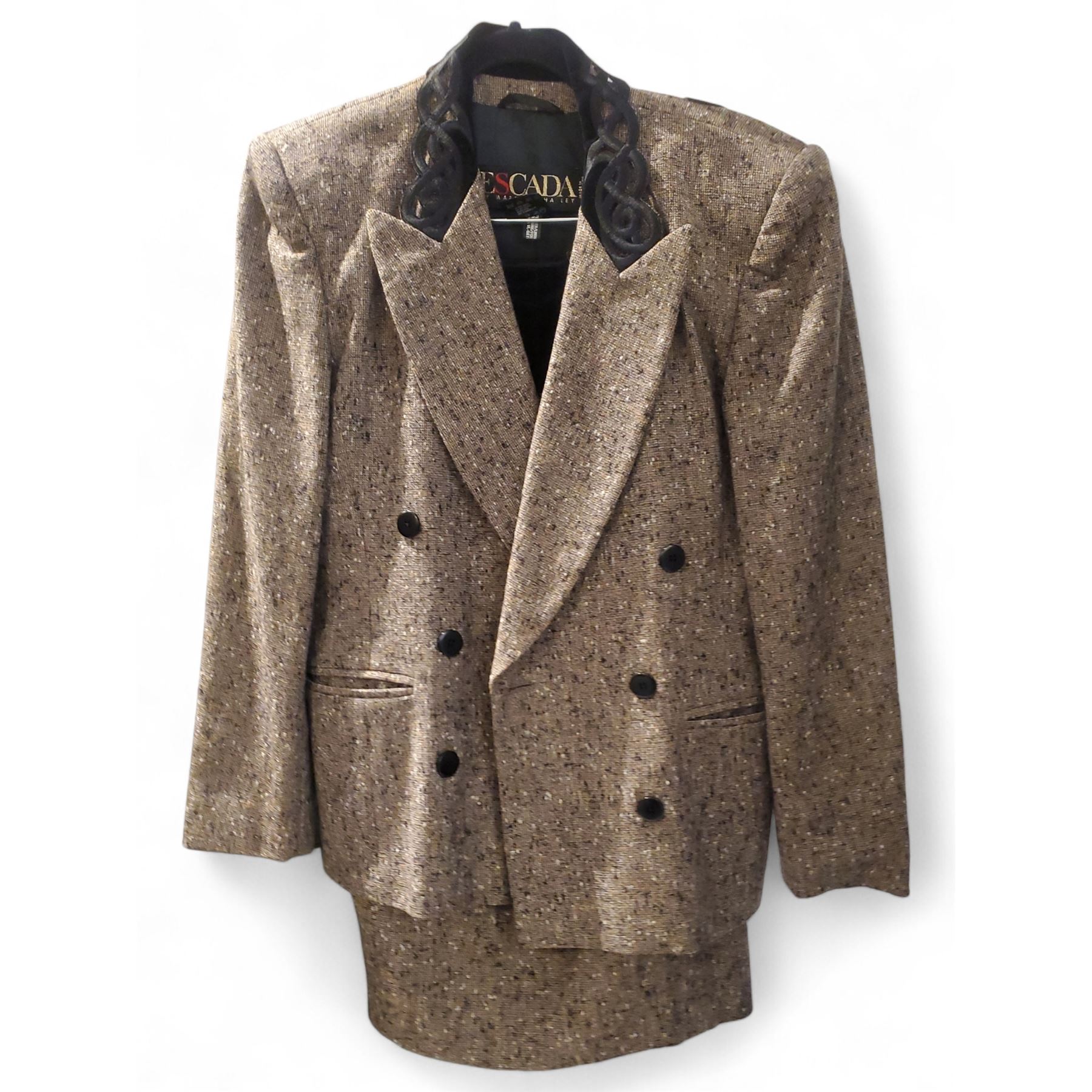 Vintage Escada by Margaretha Ley New Wool Tweed Brown & Black Suit, w/ Blazer & Pencil Skirt - Size S (EU 36)