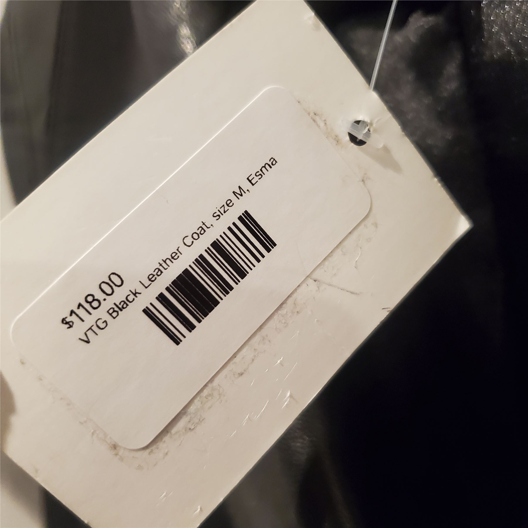 Vintage Esma Black Leather Coat, Size M - Made in Italy, R.V. $118