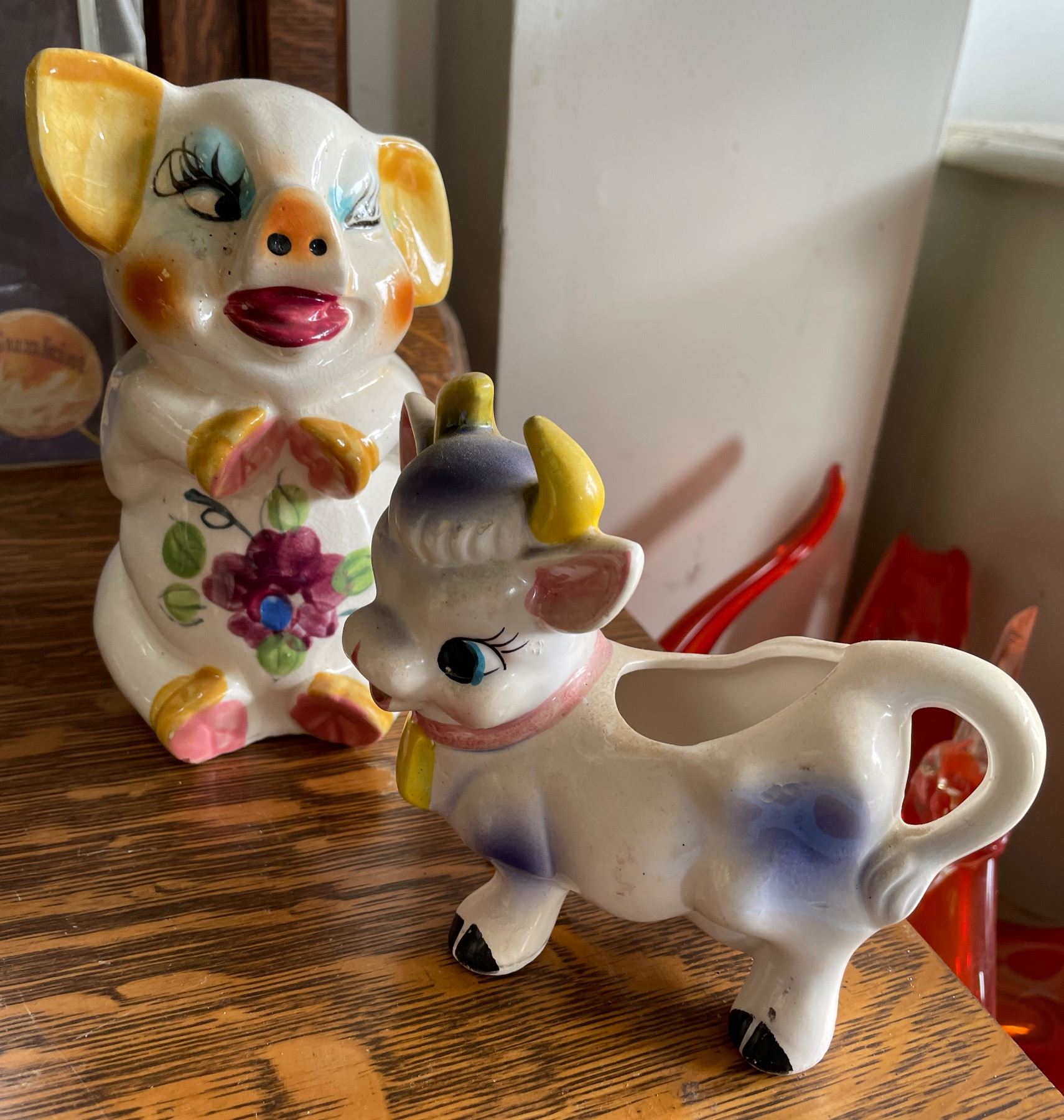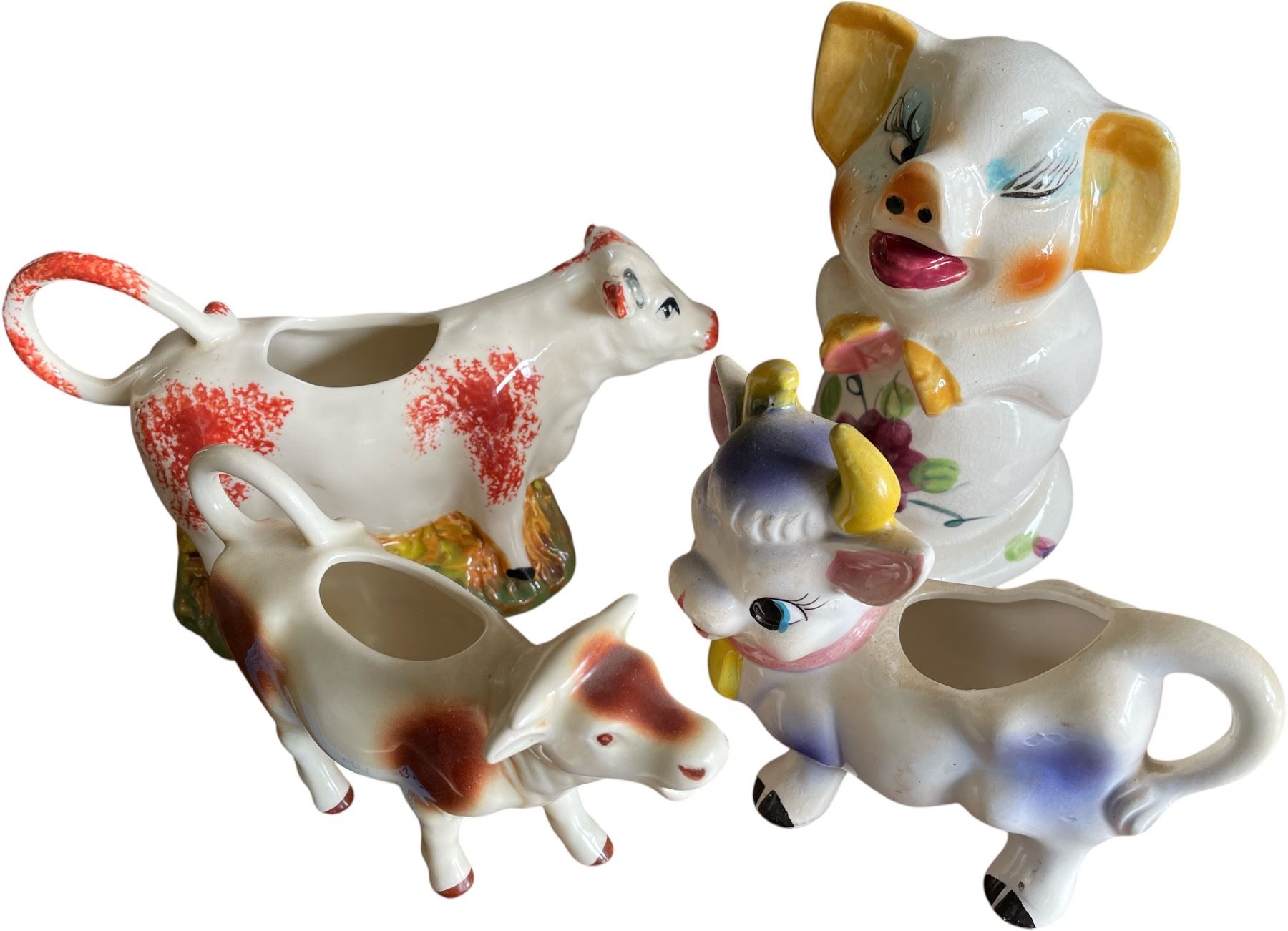 Vintage Figural Creamer and Toothpick Holder Lot Including Hand-Painted Cow and Pig Designs