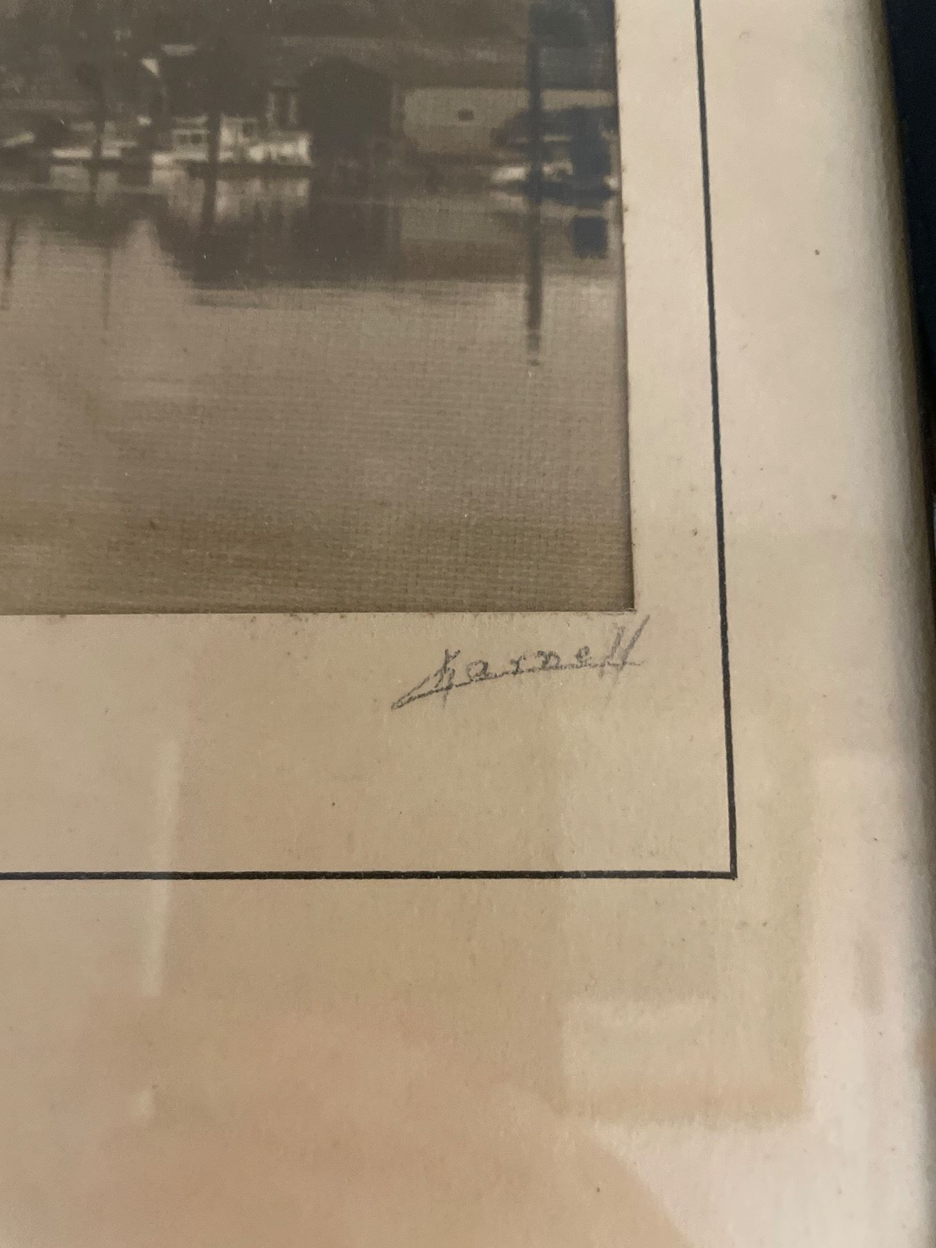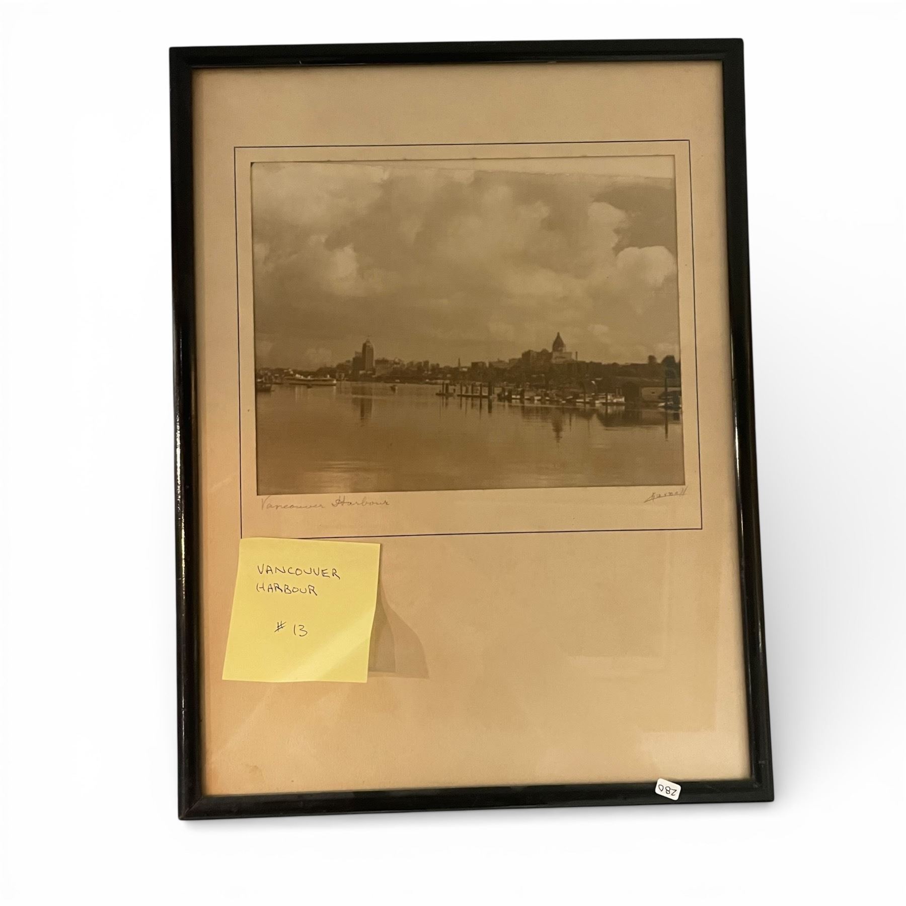 Vintage framed picture depicting Vancouver Harbour, signed by the artist. Measures 12.5x16.5-Inch including the frame. Illustration of the harbor scene features detailed artistic rendering. Item is as pictured.