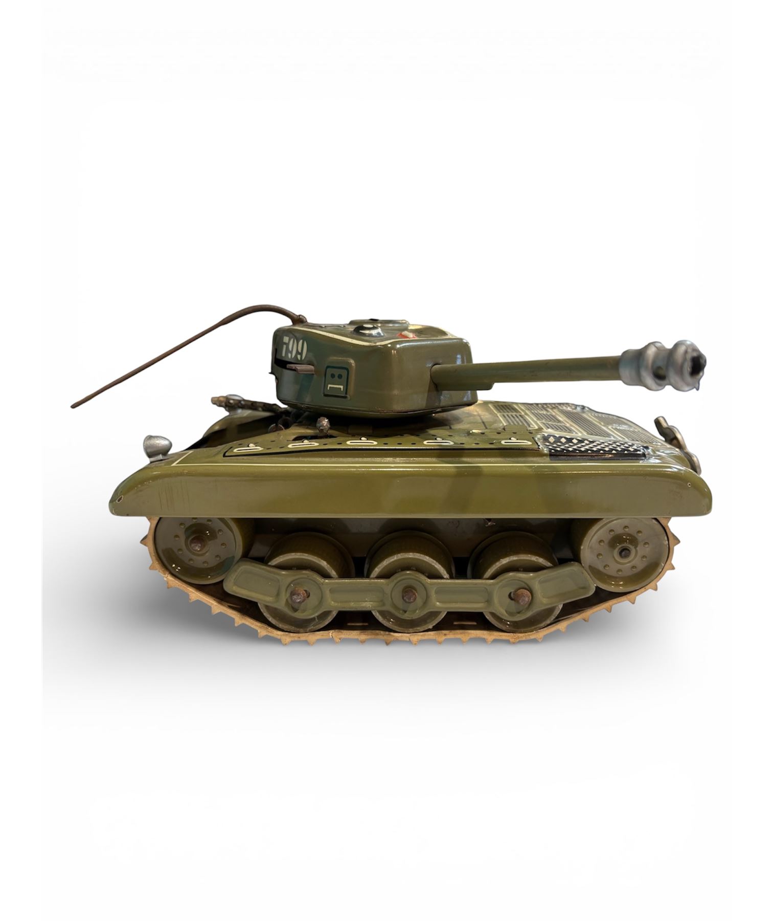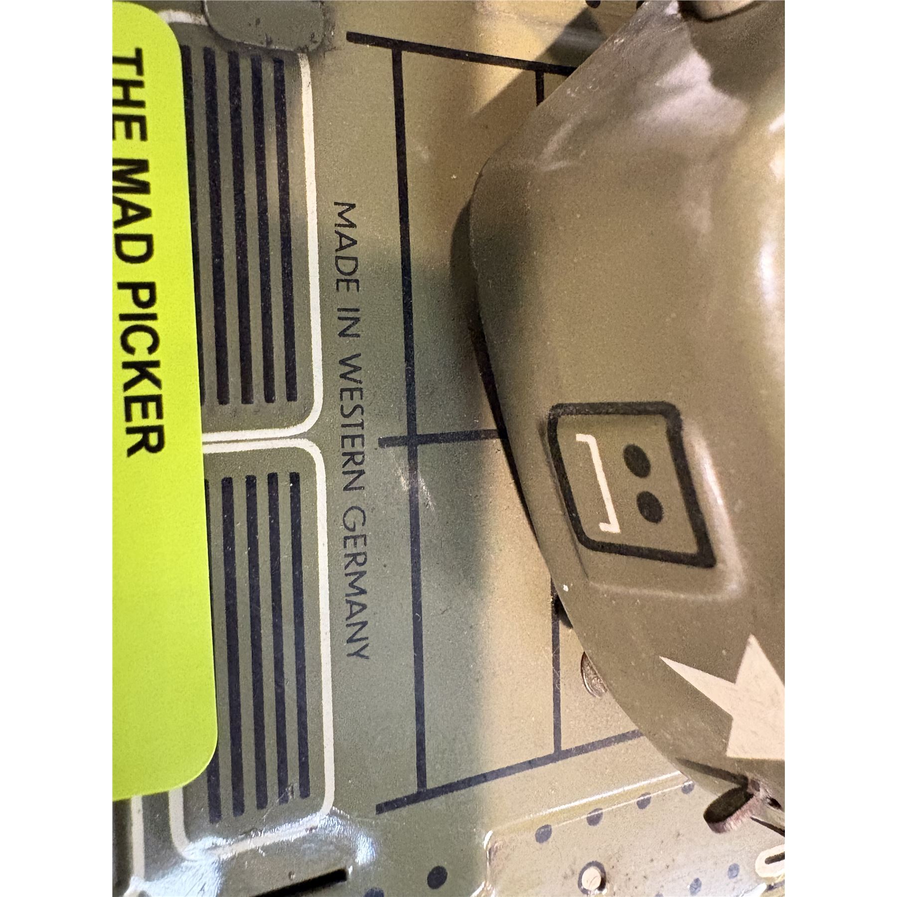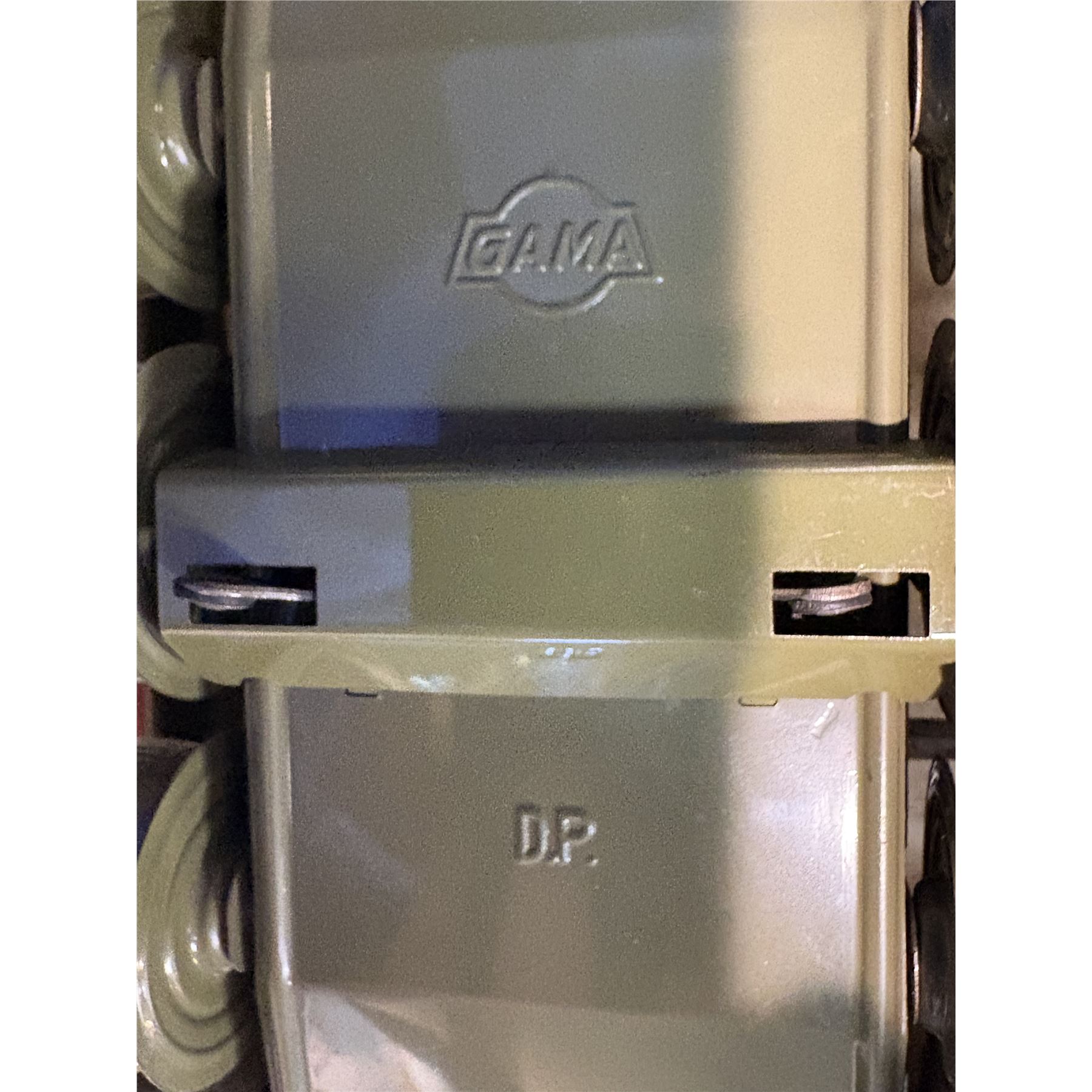 Vintage Gama German tank made in Western Germany. Early production tinplate model featuring detailed construction and mechanical components. Manufactured by Gama, known for German-made toy vehicles circa mid-20th century. Item is as pictured.