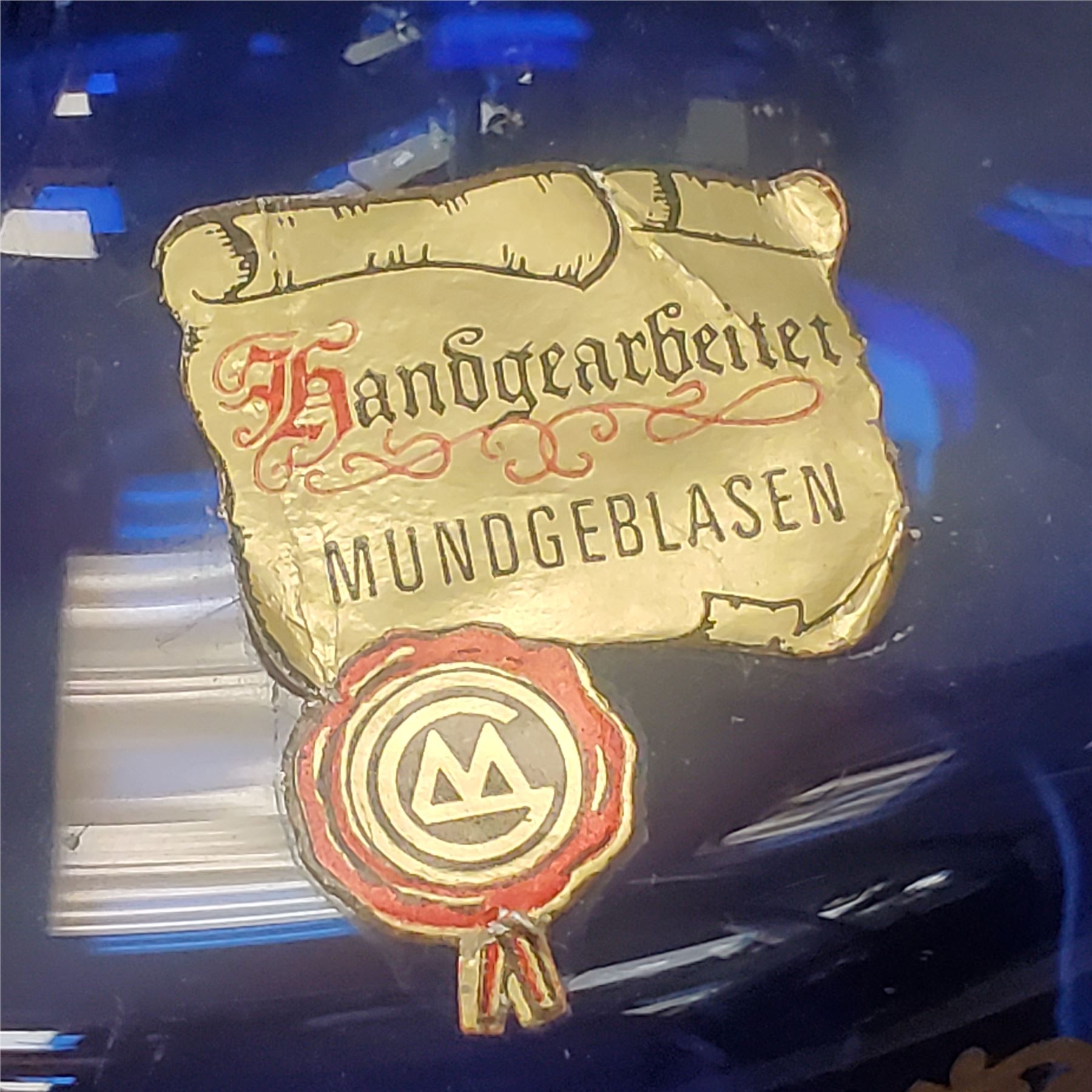 German cobalt blue glass vase handcrafted and mouth blown by Marsberger Glasswerke Ritzenhoff. This vintage piece features artisanal craftsmanship typical of the Marsberg region. Known for its striking cobalt blue hue and elegant form. Item is as pictured.