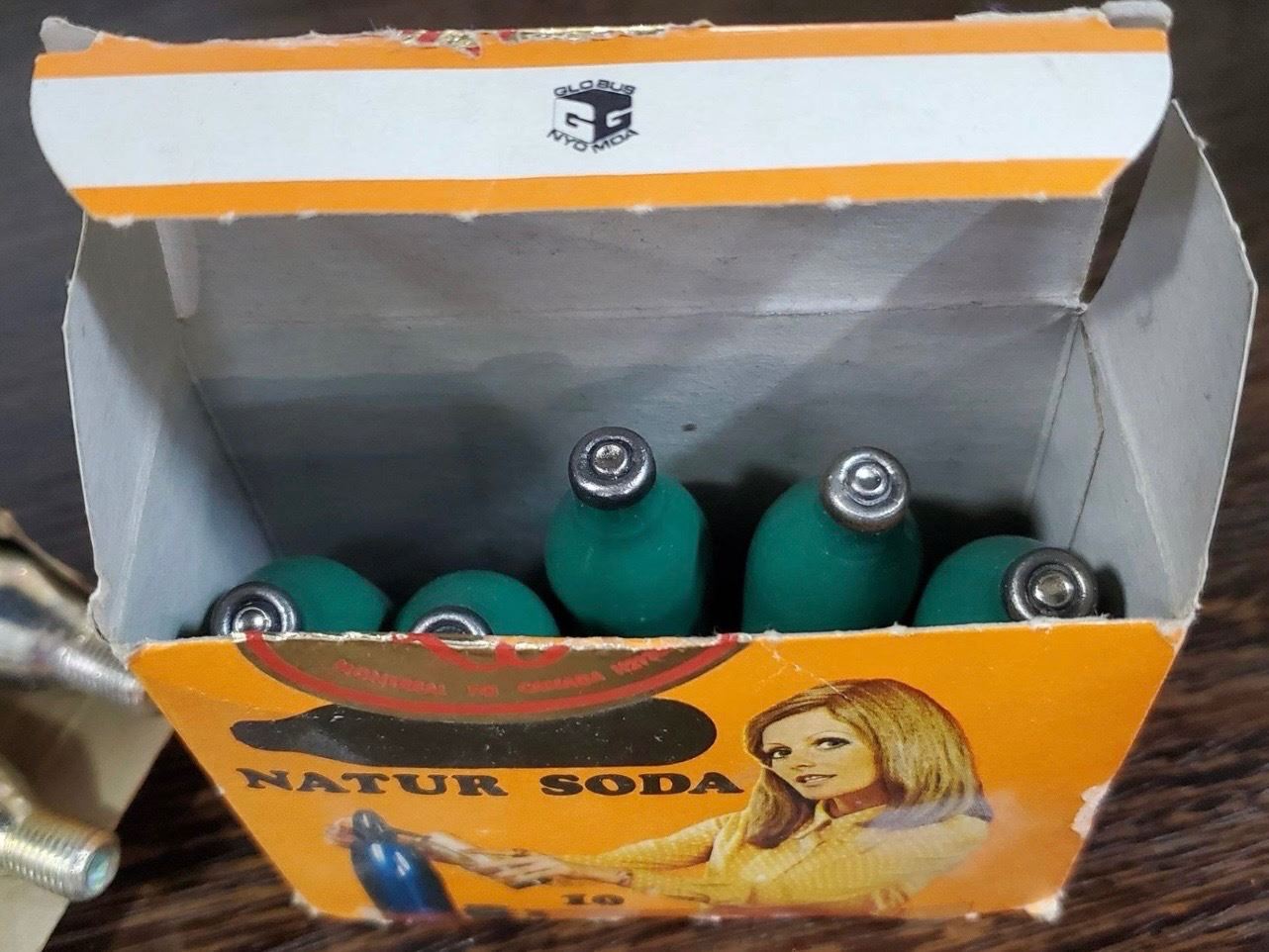Vintage Glass/Metal Seltzer Bottle (Approx. H13.5") with C02 Cartridges