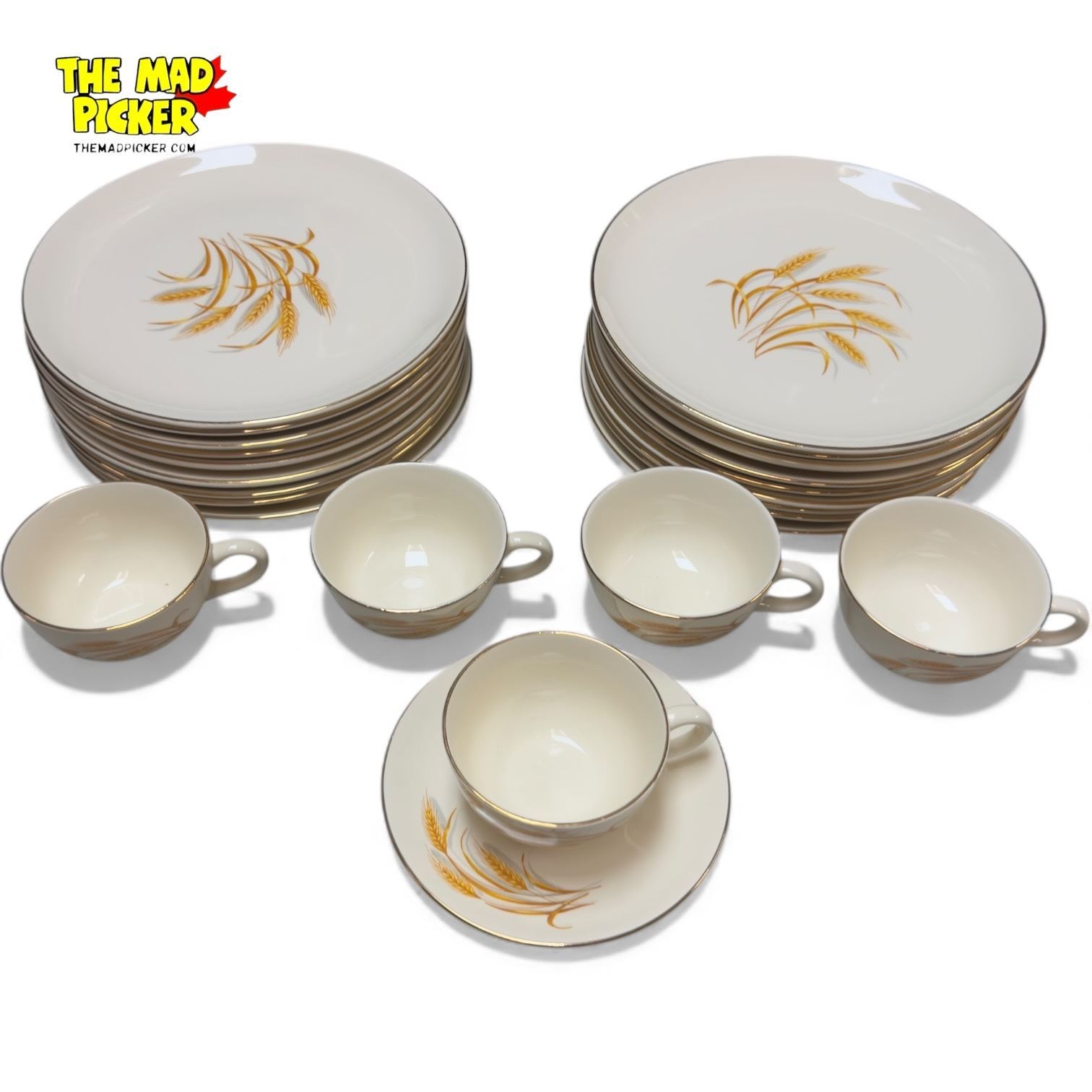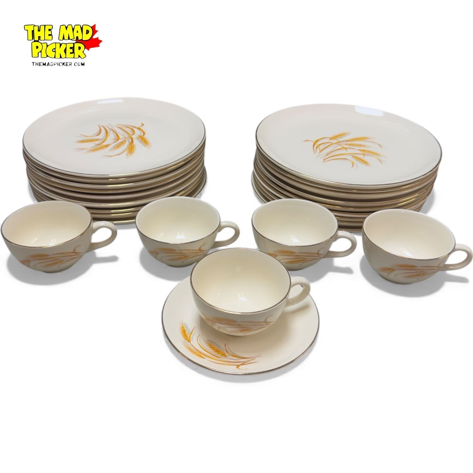 Vintage Golden Wheat China Ware : 18 Plates (22k Gold Trim), 5 Cups, 1 Saucer