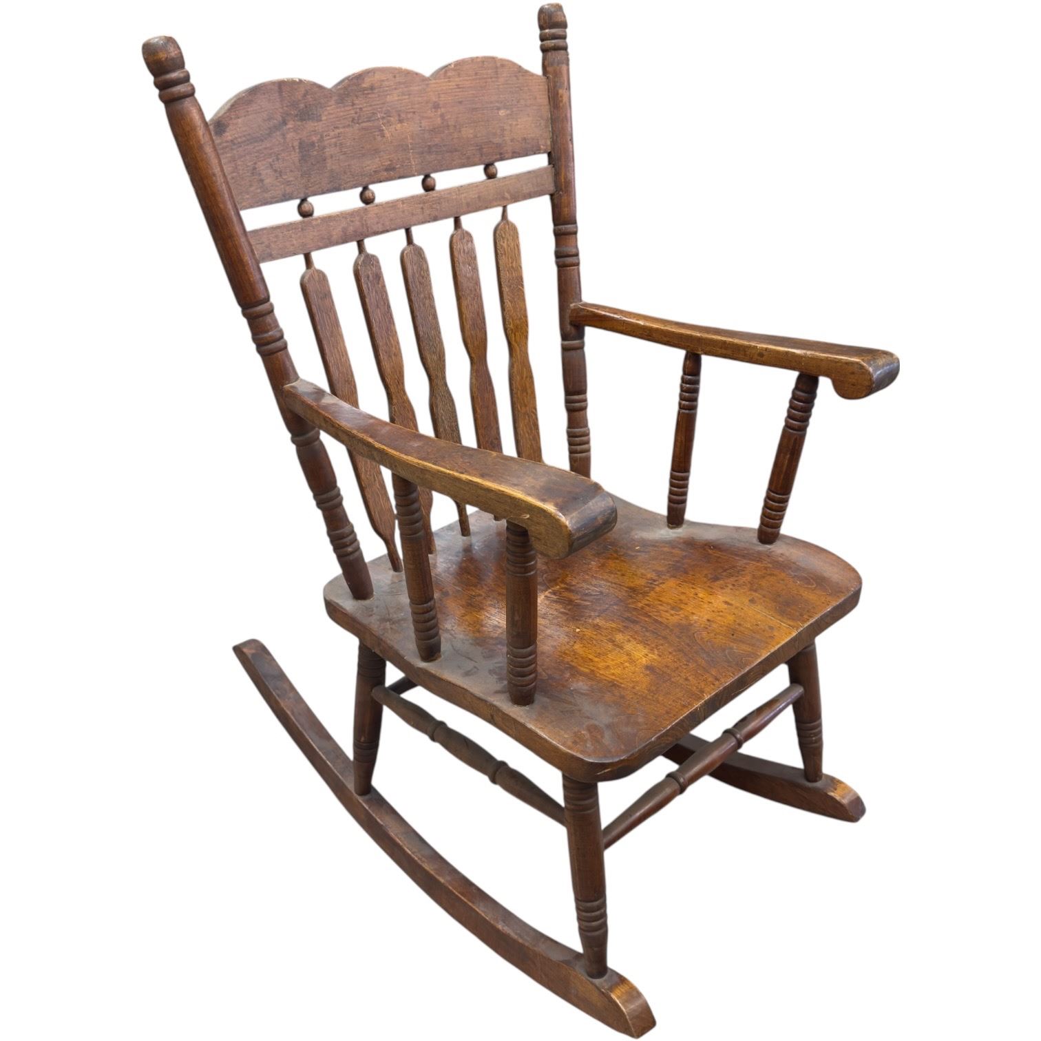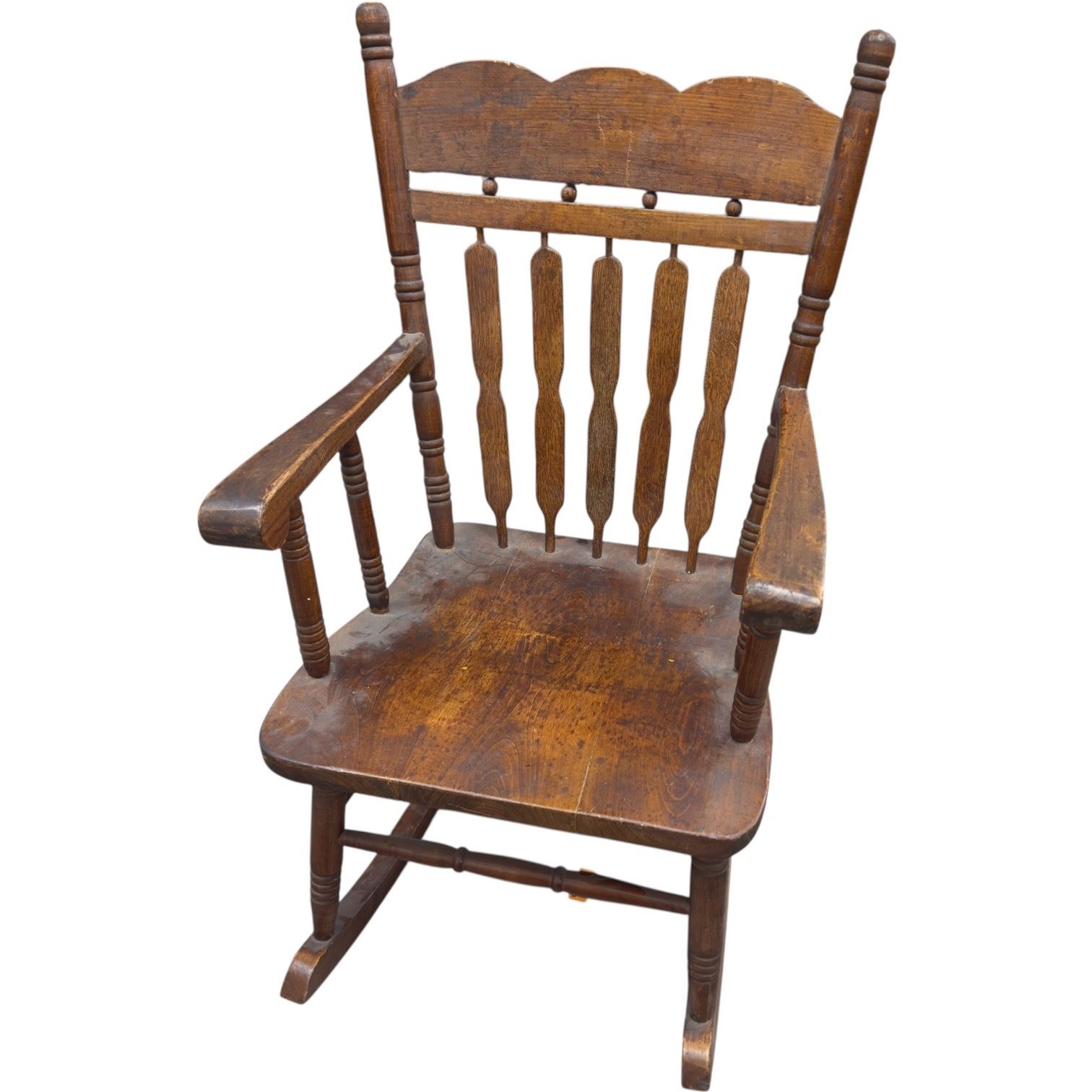 Vintage grandfather rocking chair measuring 39-Inch tall. Features a sturdy wooden frame with an upholstered seat. Classic design suitable for various interior settings. Item is as pictured.