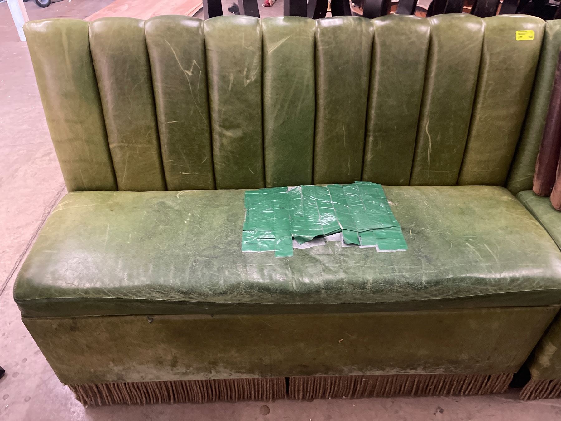 Vintage Green Leatherette Straight Banquette Bench - Upholstery needs repair
