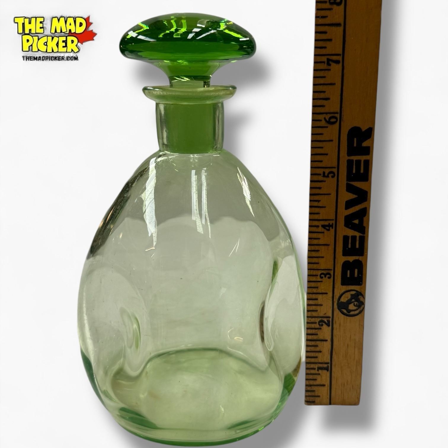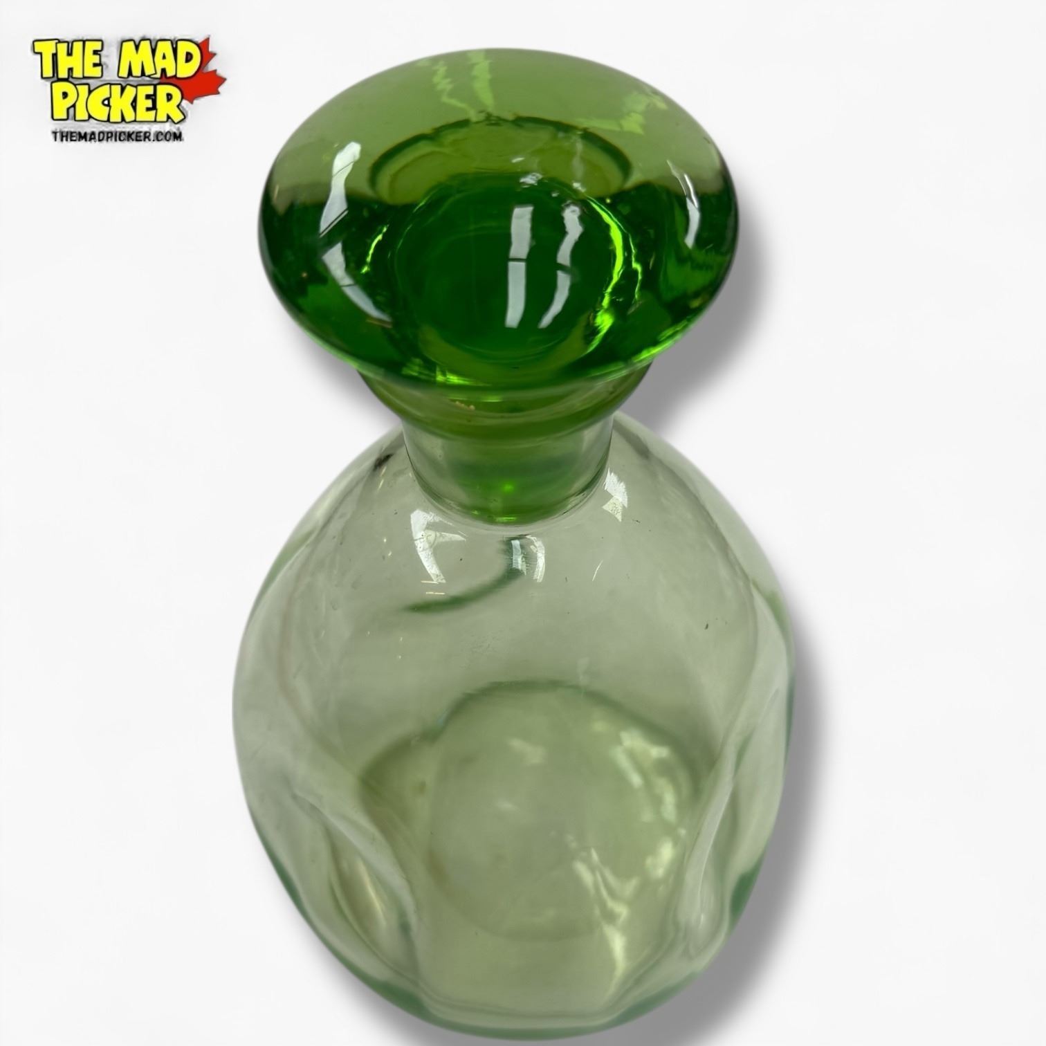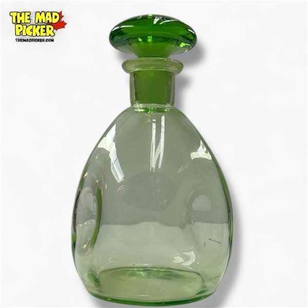 Vintage Green Uranium Glass "Pinched" Decanter - 8" tall