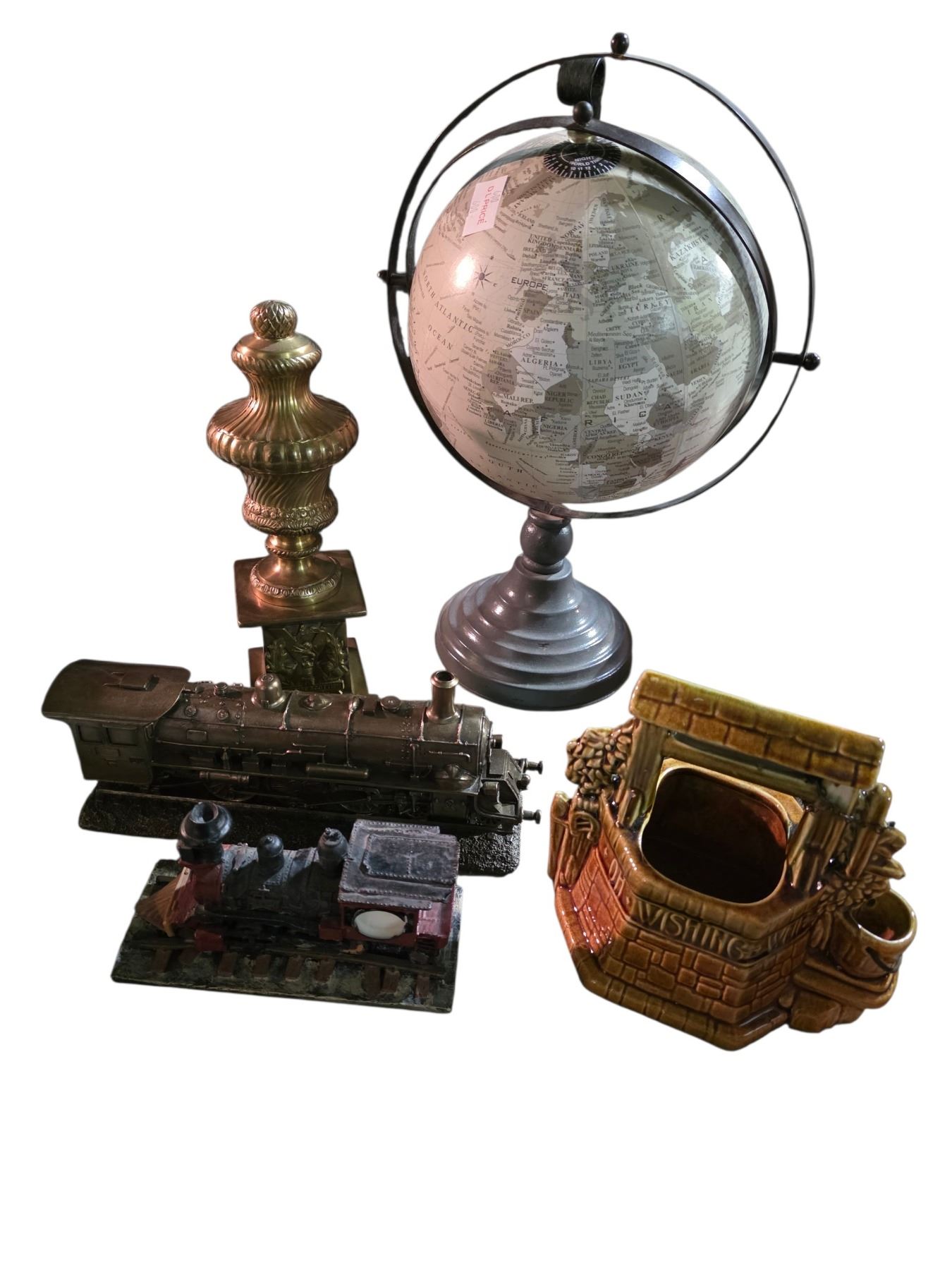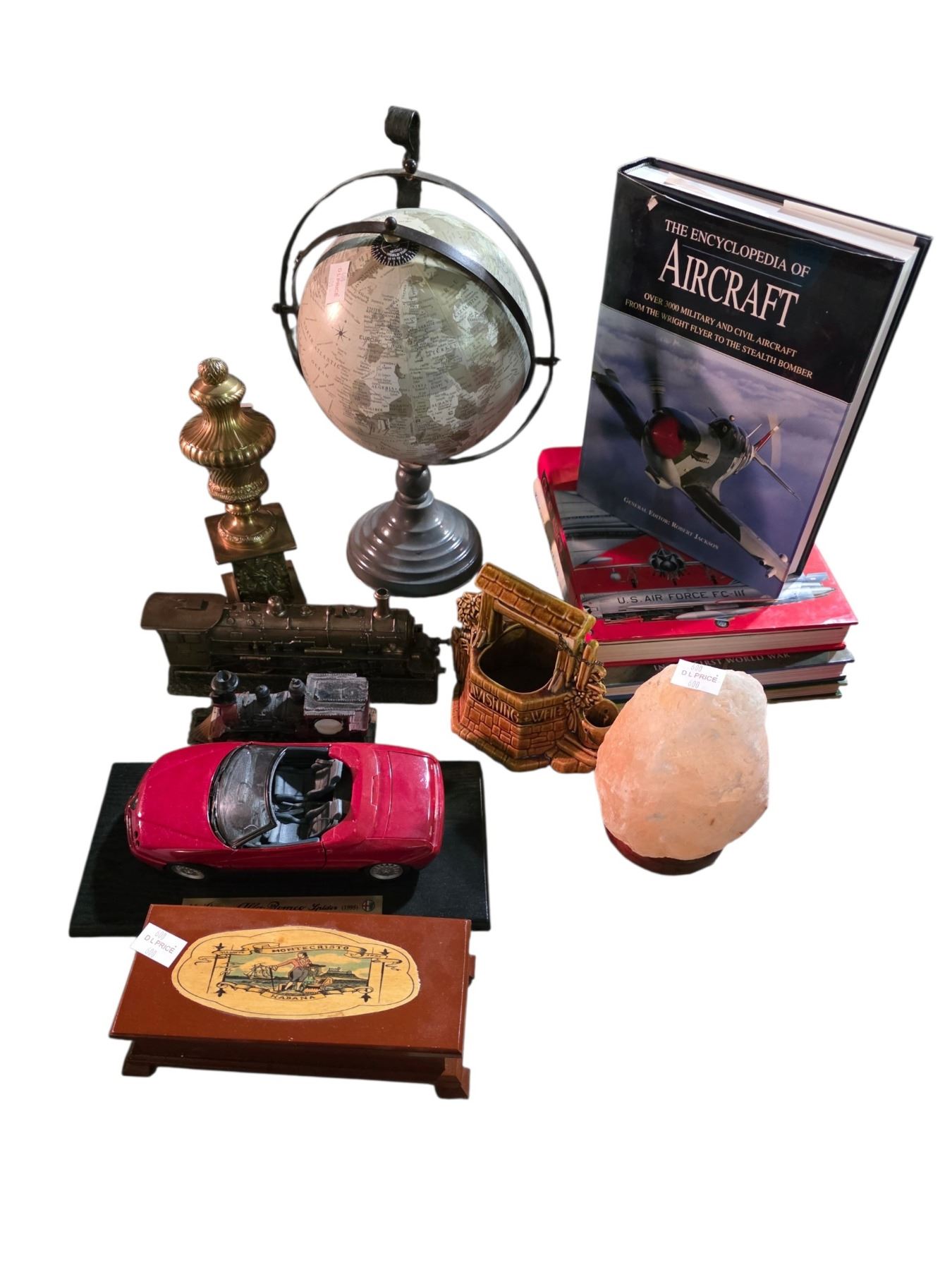 Vintage Group of Decorative Items - includes Aircraft Hardcover Books/Salt Lamp/ Vintage Brass Federal Style Andiron & More